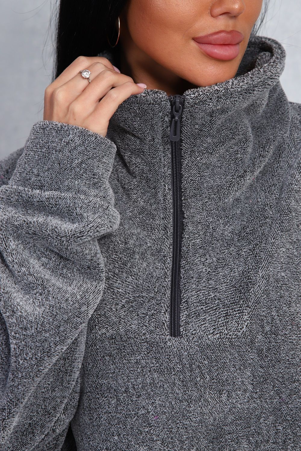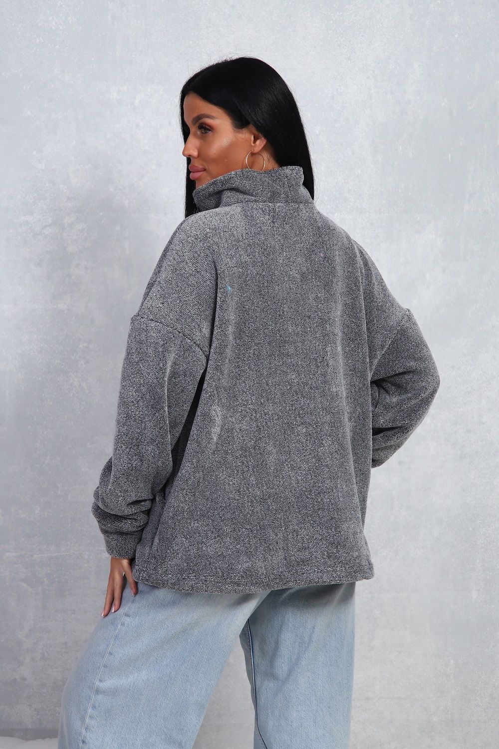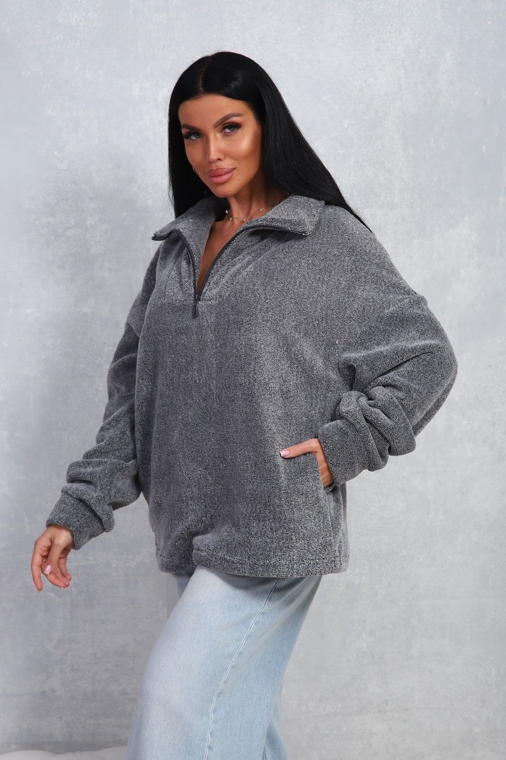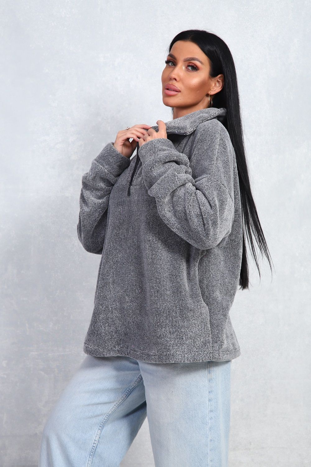 Толстовка женская свободного кроя, из уютного теплого велсофта, с комфортным воротом на молнии, с двумя боковыми карманами. Не мнётся, легко стирается.