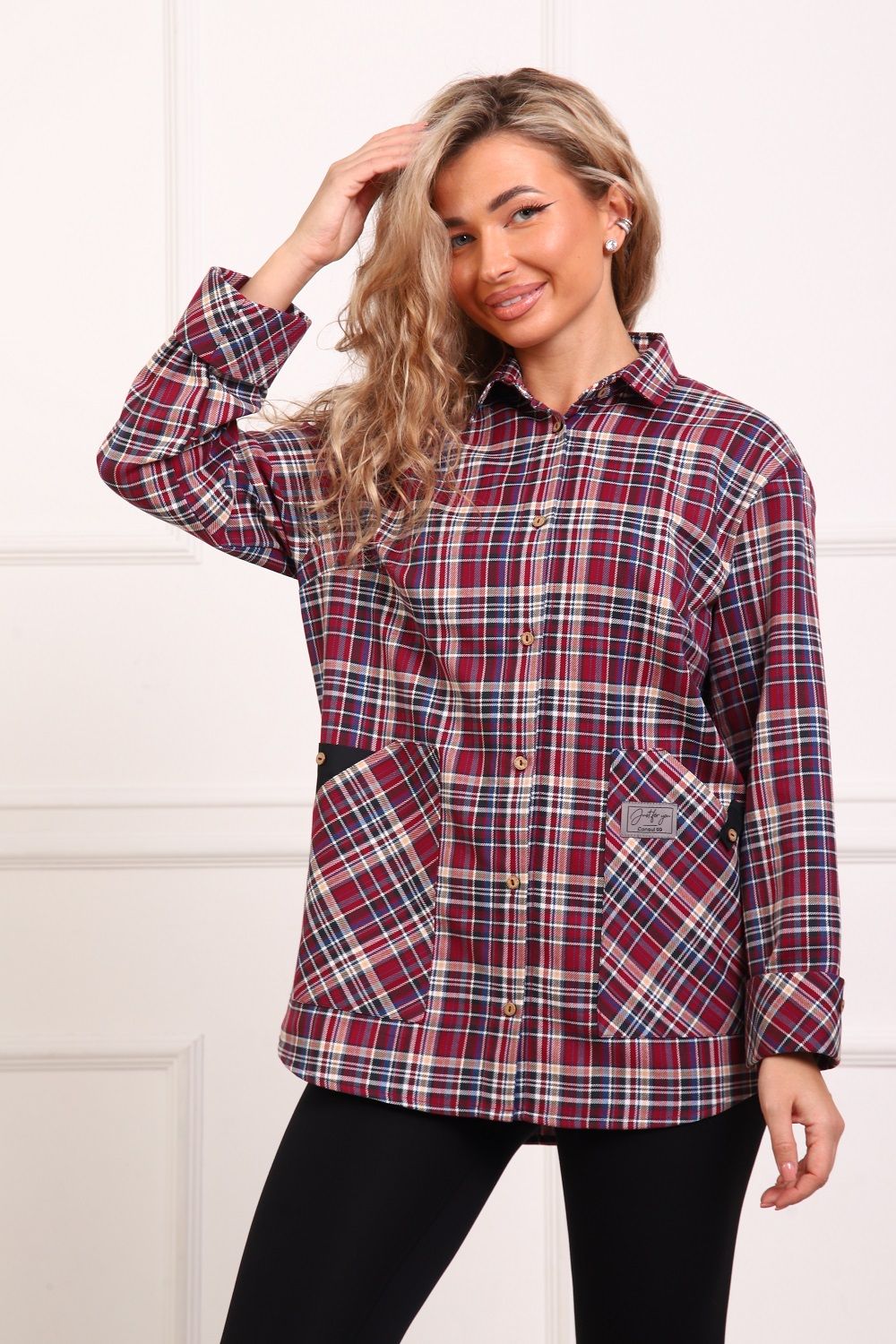 Женская теплая рубашка с очень удобными карманами-кенгуру и специальным акцентным чёрным карманом для смартфона (пластиковых карт, ручек, очков и т.п.), один из карманов-кенгуру можно застегивать петелькой на пуговицу. Рукава с манжетом, который подгибается - благодаря этому длина рукава регулируется в пределах 5 см (можно сделать чуть короче, чуть длинне). Крой рубашки очень комфортный, изделие не сковывает движений. Прямой силуэт стройнит. Ткань - фуле (относительно плотный материал, с небольшим начёсом с изнанки), 100% хлопок. Фуле легко утюжится, относительно не сильно мнётся, ткань устойчива к износу. Замечательный выбор для отдыха и работы. Наверняка, станет Вашей любимой рубашкой. Обратите, пожалуйста, внимание на рубашку аналогичного кроя, но из ткани шотландки - артикул 1072.