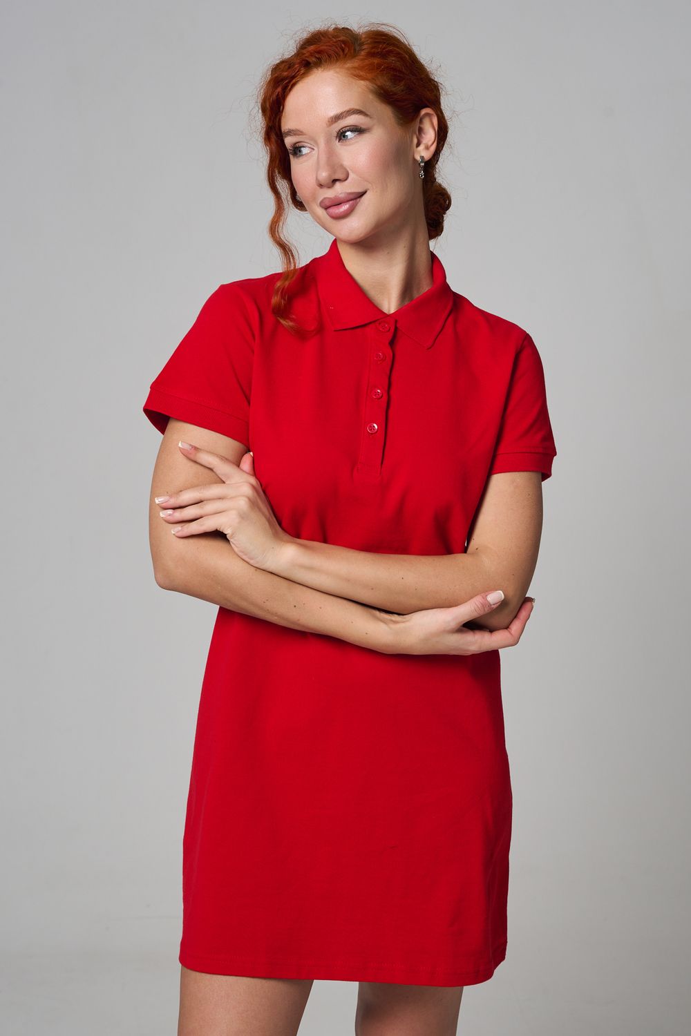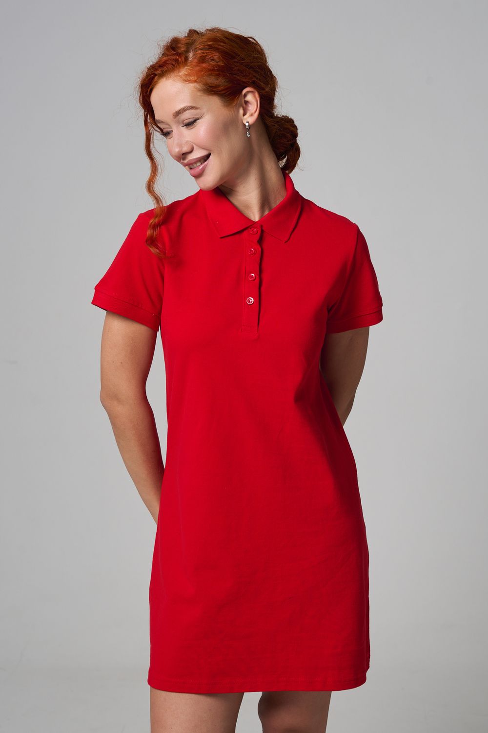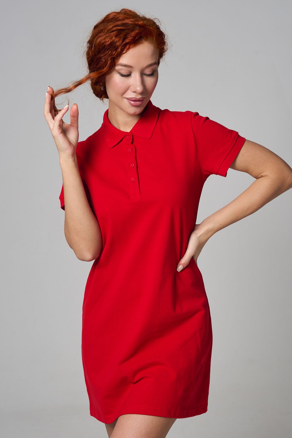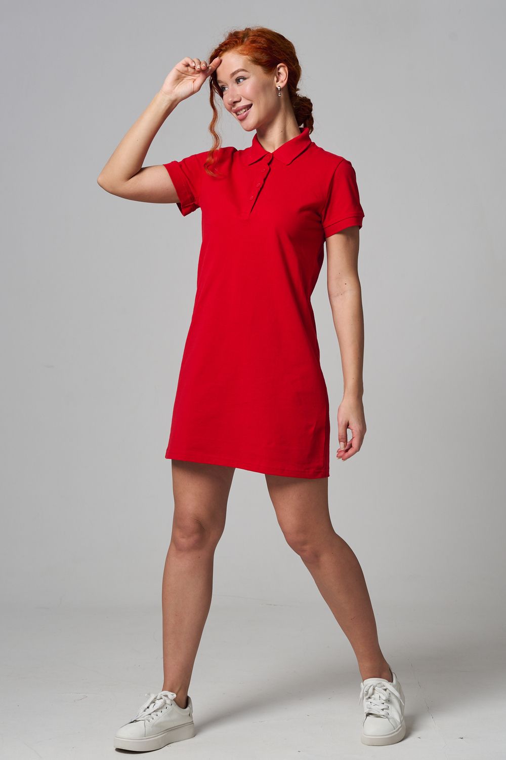 Отличный вариант для жаркого лета - модное платье-поло. Платье имеет отложной ворот и короткий рукав. Кроме того, вверху имеются акцентные пуговицы в цвет платья. Комфортная длина чуть выше колена и прямой крой делает это платье универсальным. Стильное и модное платье подойдет женщинам и девушкам разных возрастов. Хлопок обладает свойствами воздухопроницаемости, что так необходимо в жаркую весеннюю или летнюю погоду. Это изделие прекрасно сочетается как со спортивной обувью, так с классическими туфлями и балетками. На более прохладную погоду можно создавать многослойные образы, сочетая платья с другой одеждой. Это отличный вариант на повседневную основу на работу в офис, прогулки или учебу. Благодаря достаточному свободному не обтягивающему прилеганию в области талии оно является максимально удобным и комфортным. Плотность 190гр/куб.м.