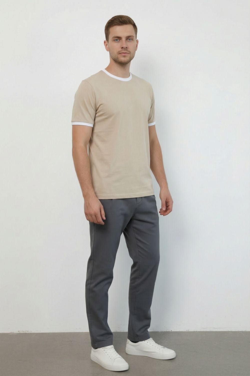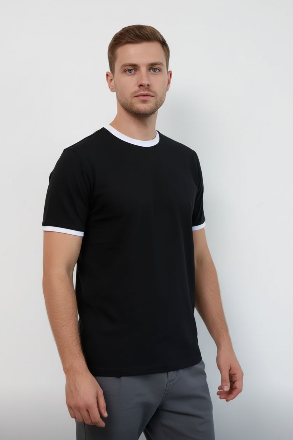 Универсальные мужские футболки прямого кроя с короткими рукавами и классическим круглым воротником. Отличительной чертой моделей являются контрастные белые окантовки на вороте и манжетах, благодаря чему футболки выглядят современно и стильно. Изделия выполнены из мягкой и комфортной ткани, приятной к телу, что обеспечивает удобство при повседневной носке. Такие футболки подходят как для активного отдыха, так и для городского стиля.