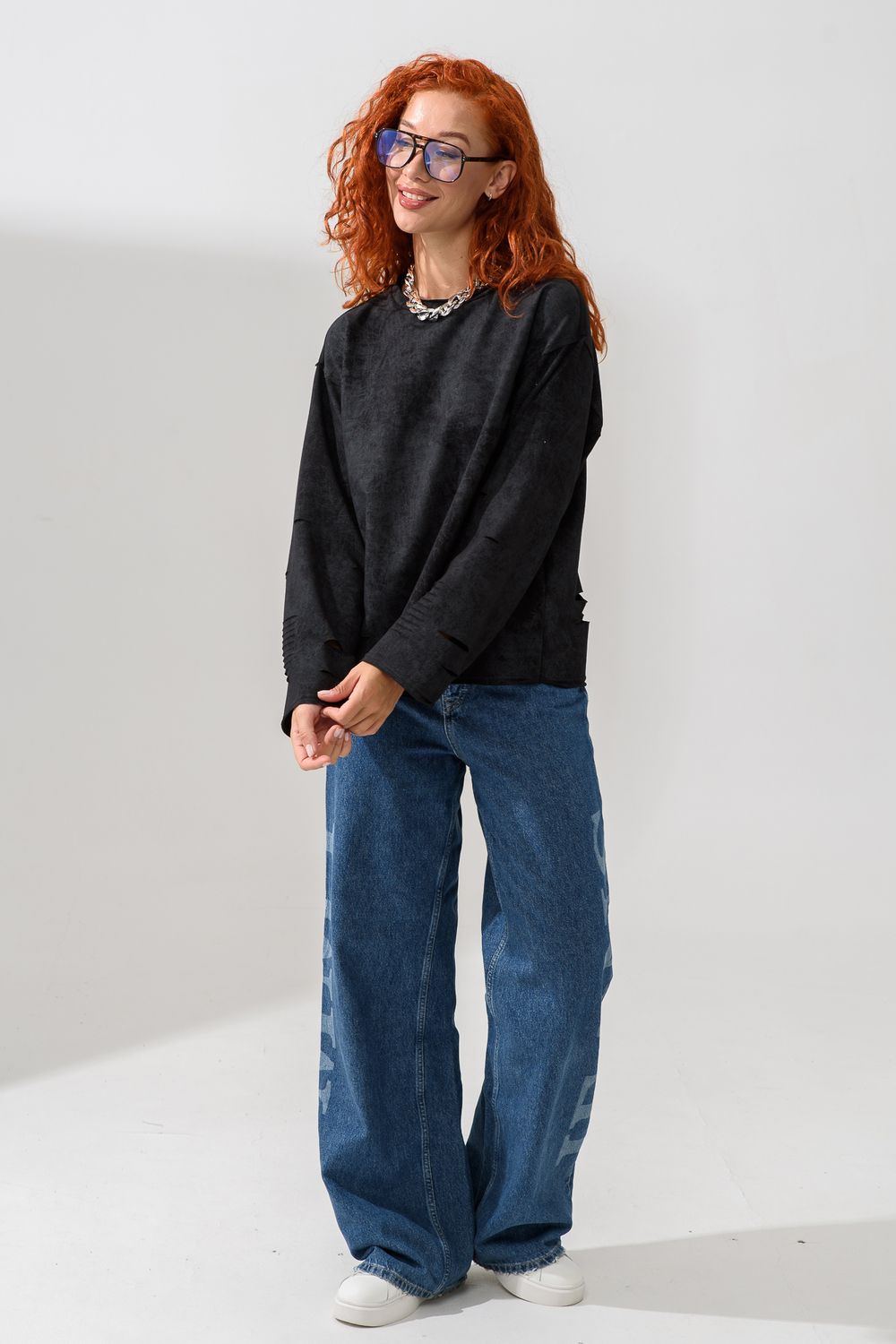 Свитшот станет отличным дополнением к вашему гардеробу благодаря своему унисекс дизайну. Теперь каждый может насладиться комфортом и стилем этой вещи без ограничений. Длинная толстовка имеет необработанный край, что добавляет ей небрежности и непринужденности. Безупречная посадка и оверсайз форма делают данную толстовку подходящей для размеровс 42 по 52. Также это позволяет использовать ее как в повседневном образе, так и в спортивном стиле.