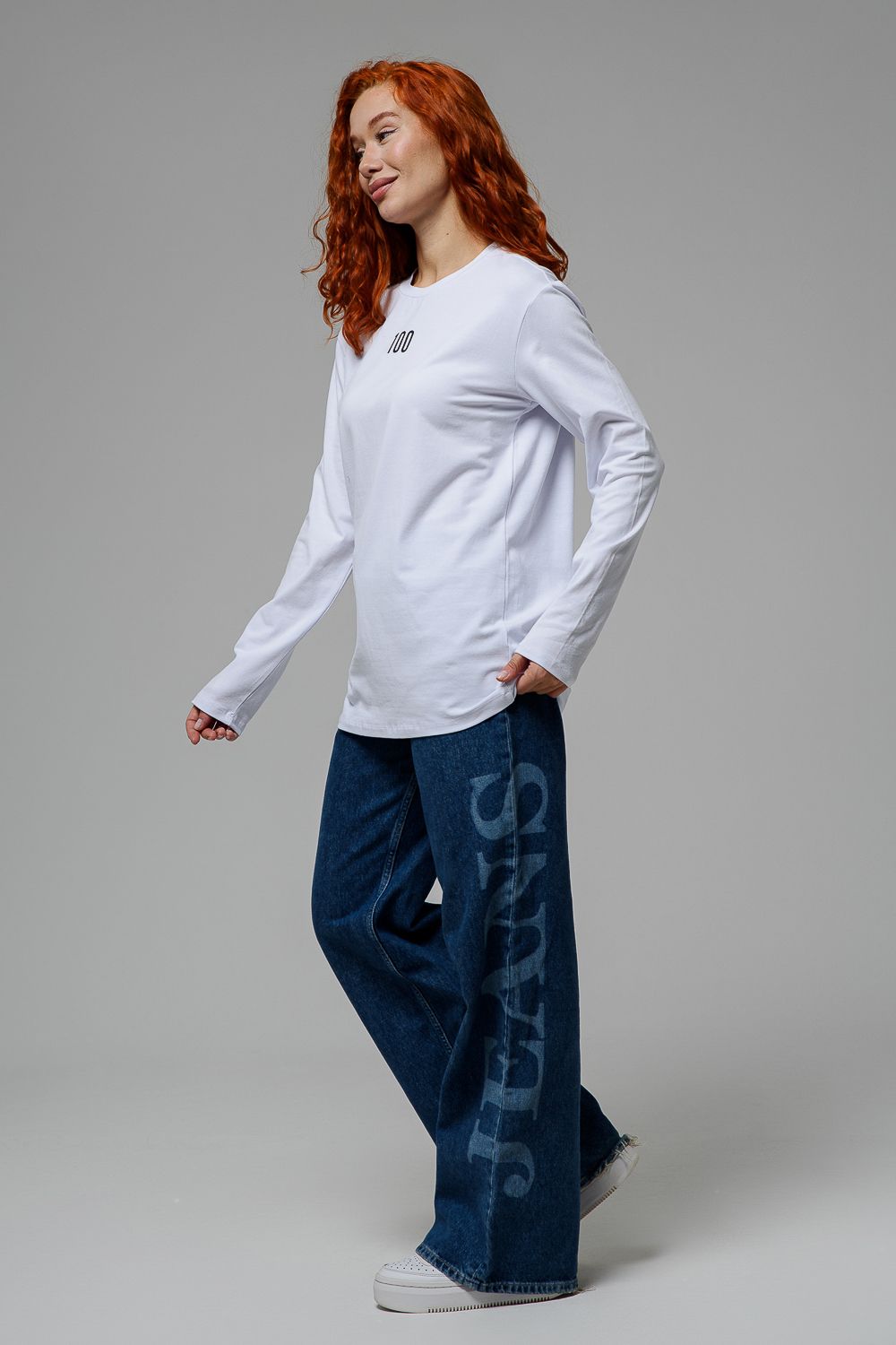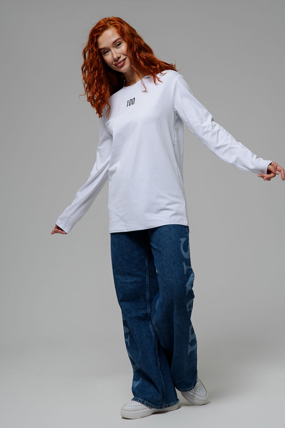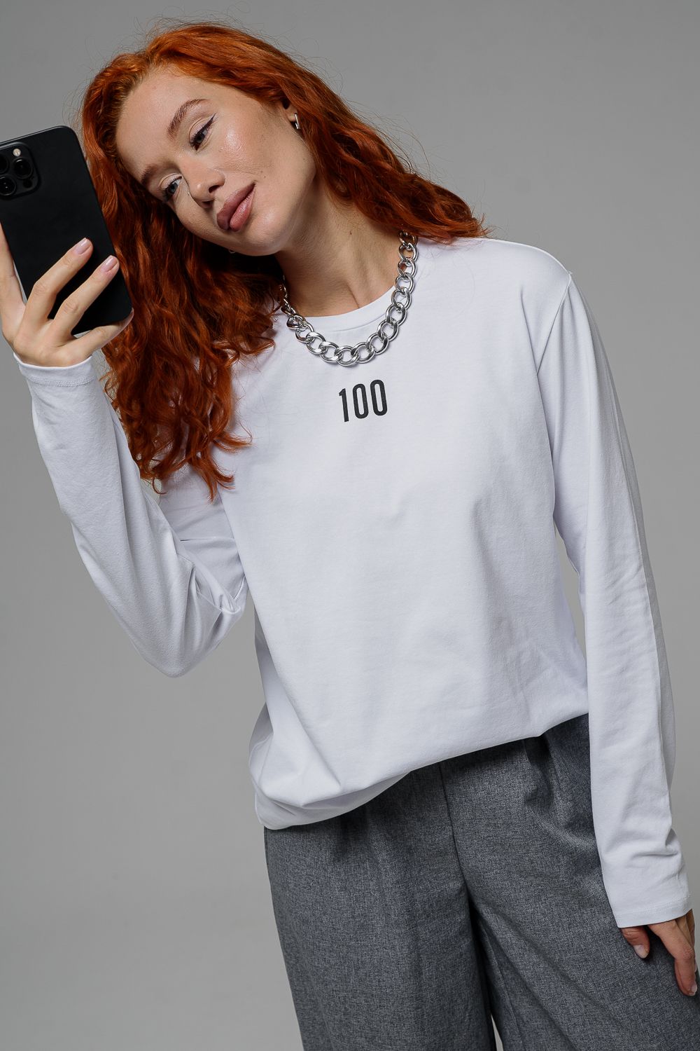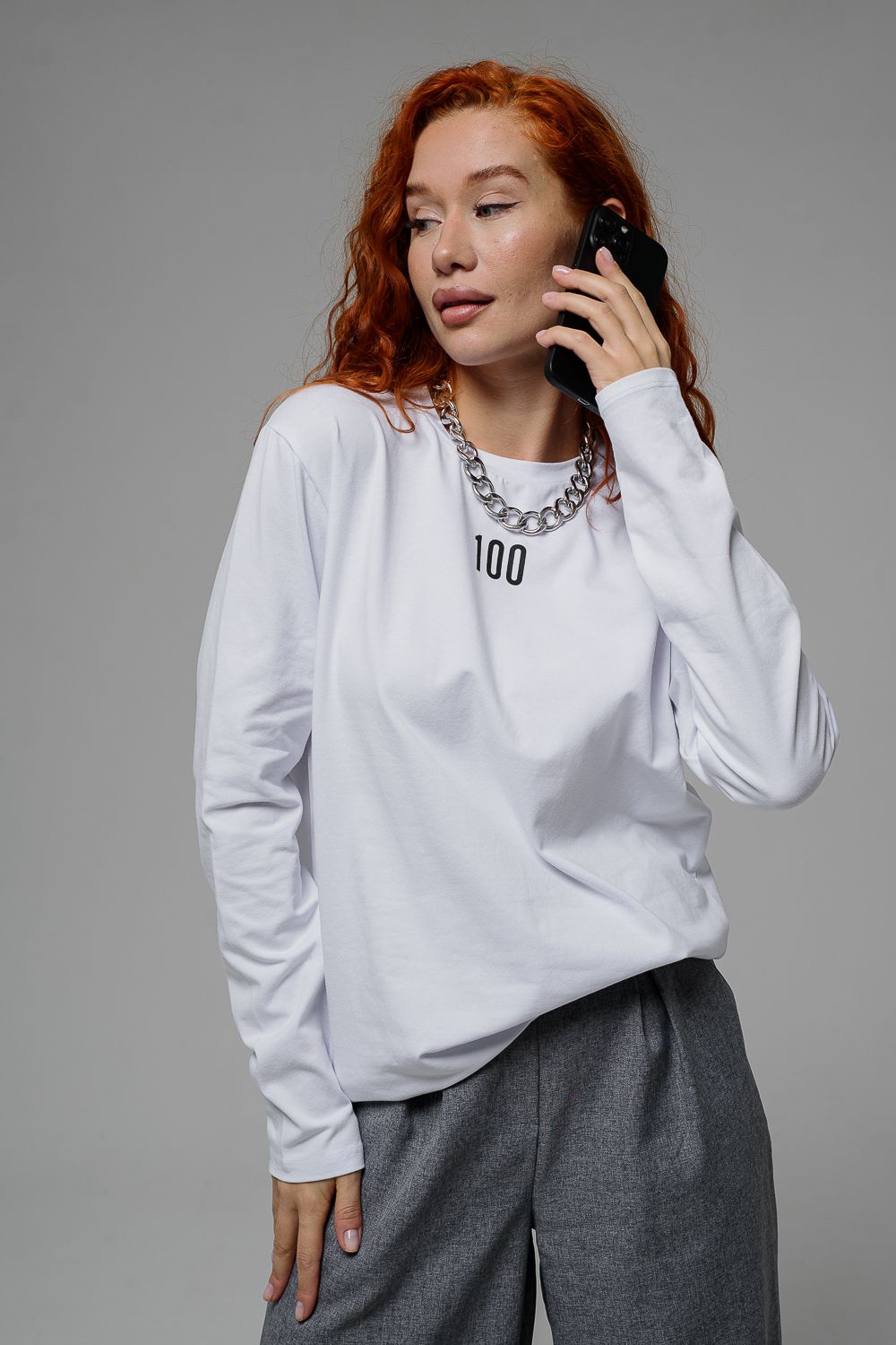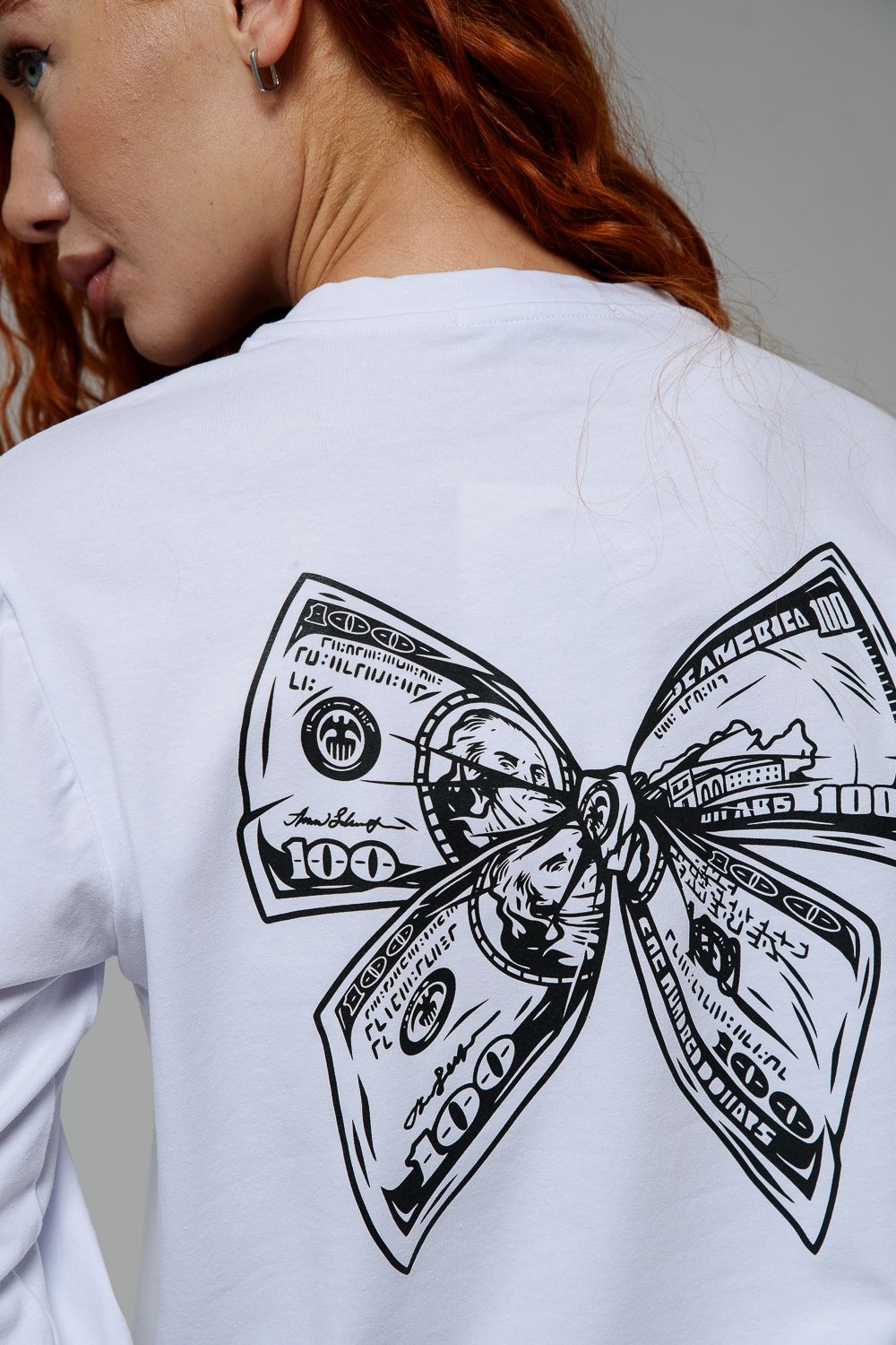 8513-1 Футболка с длинным рукавом женская - белый+Доллар