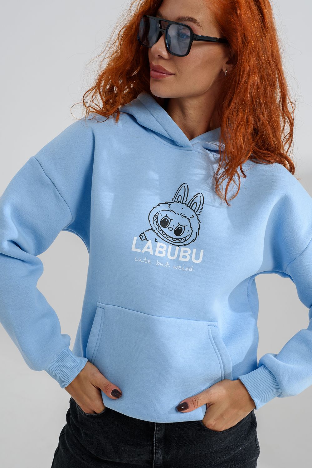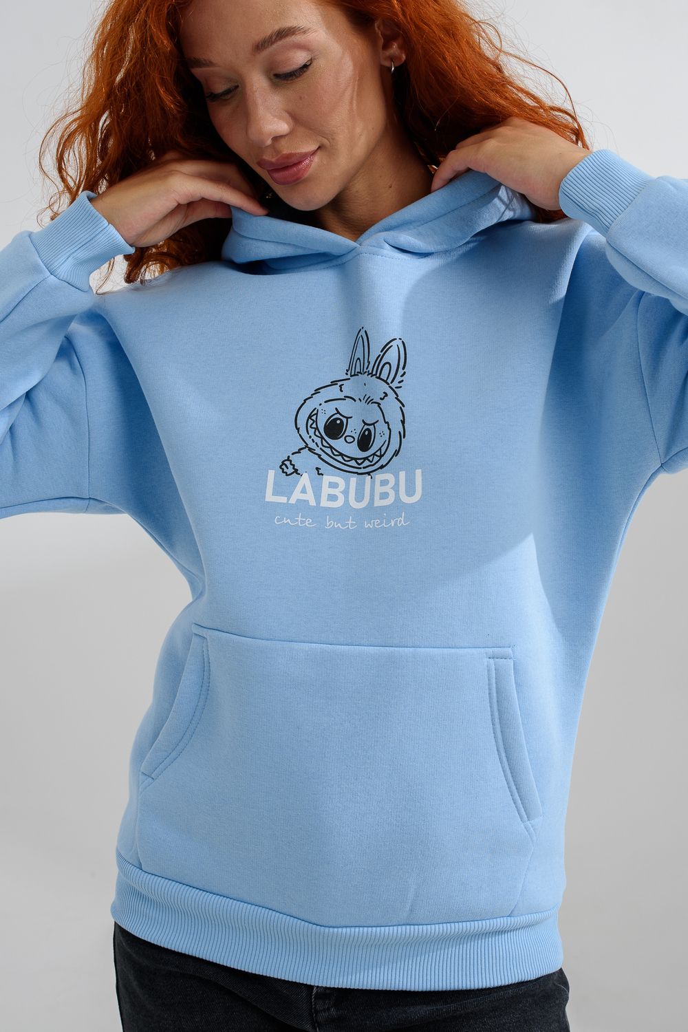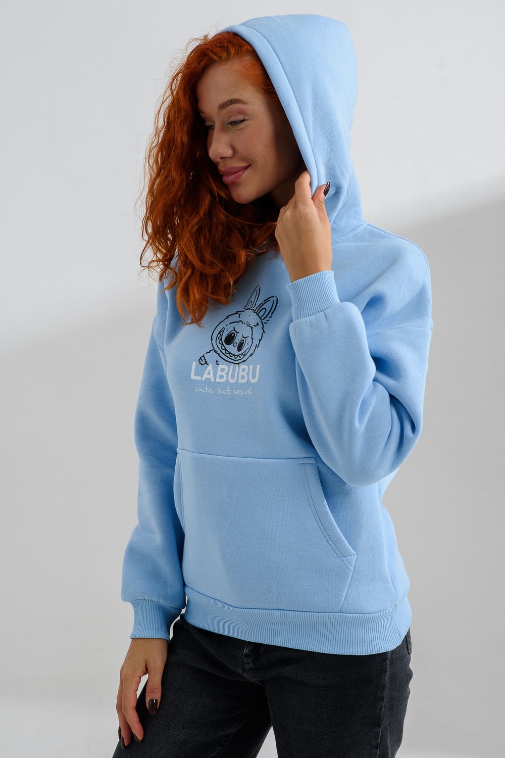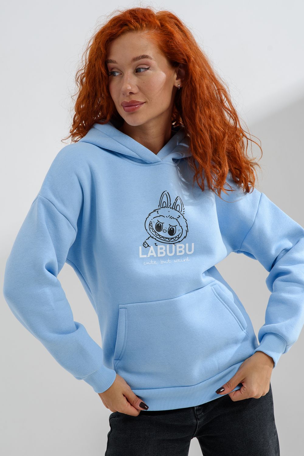 8565 толстовка женская оверсайз - голубой+лабубу