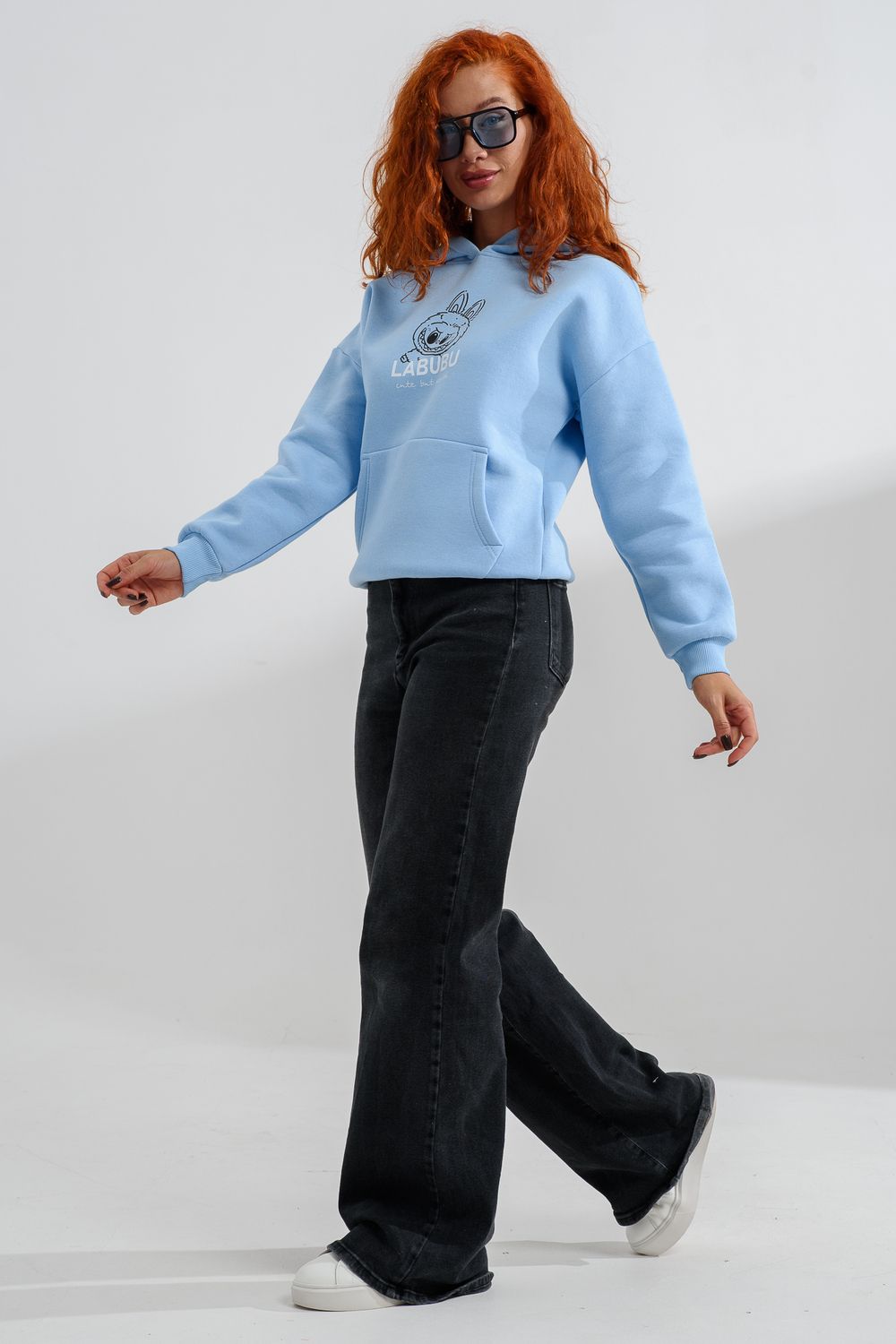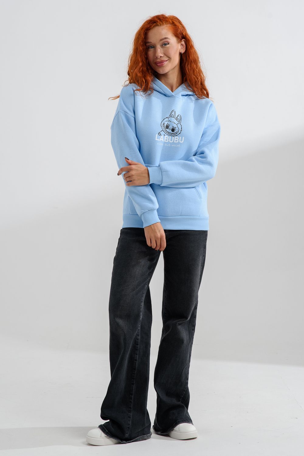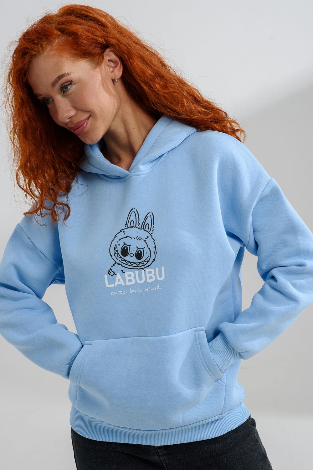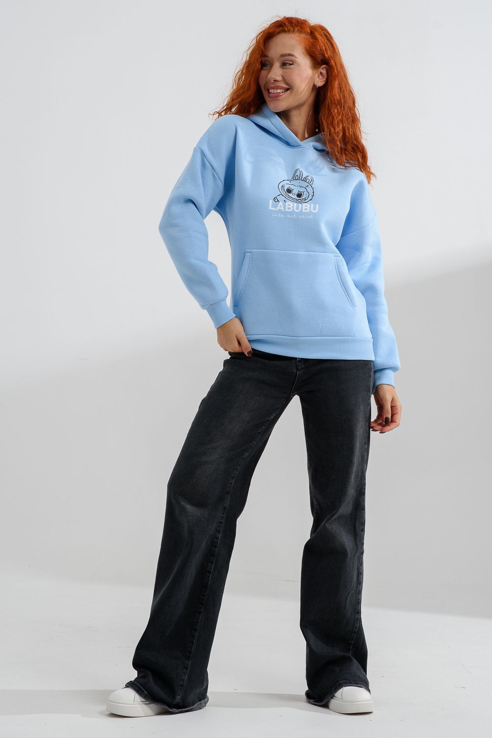 8565 толстовка женская оверсайз - голубой+лабубу