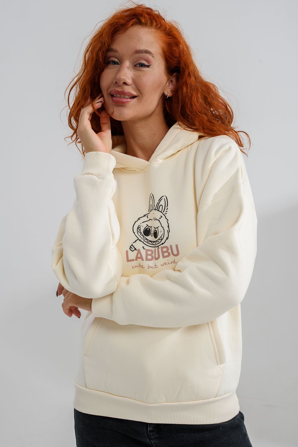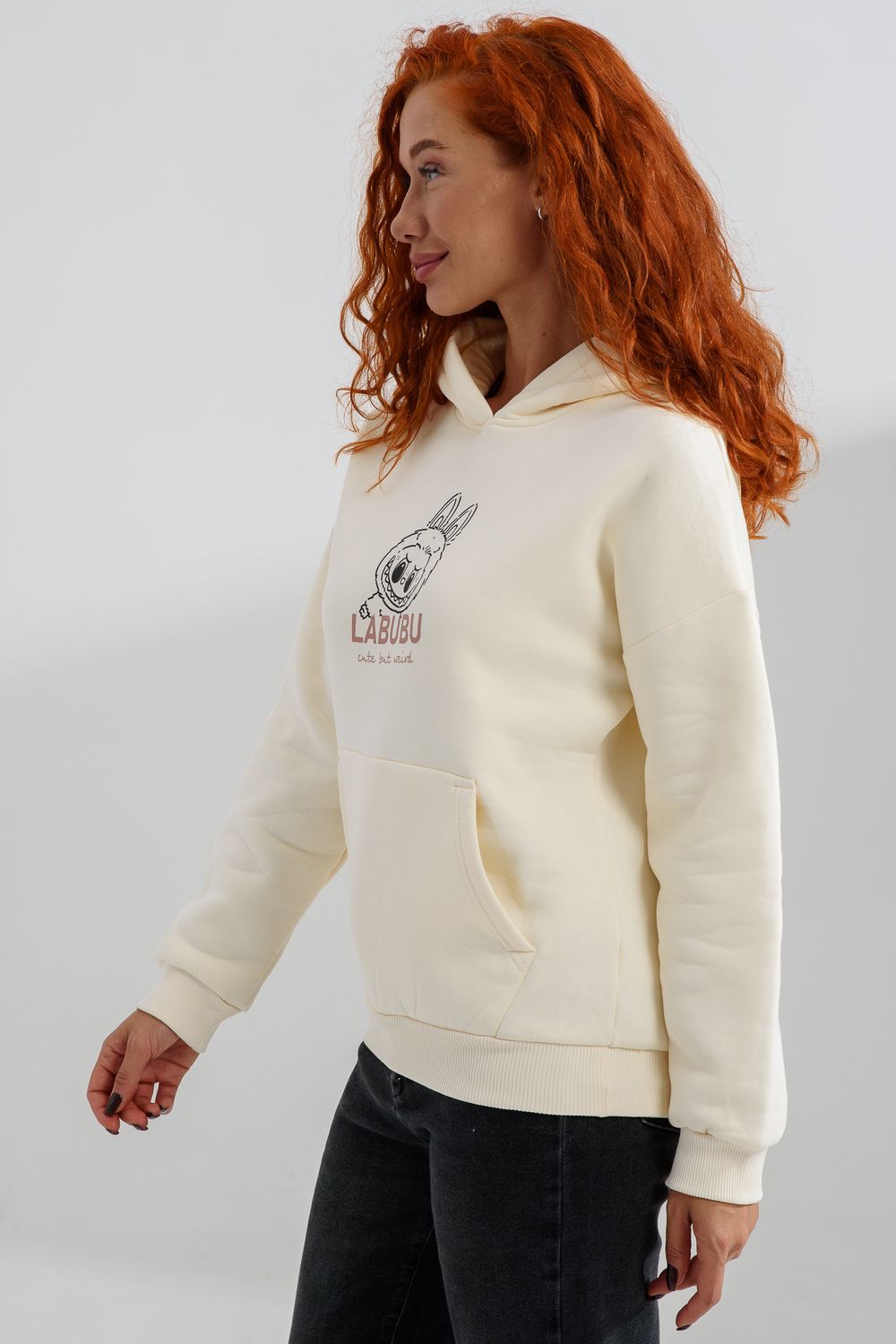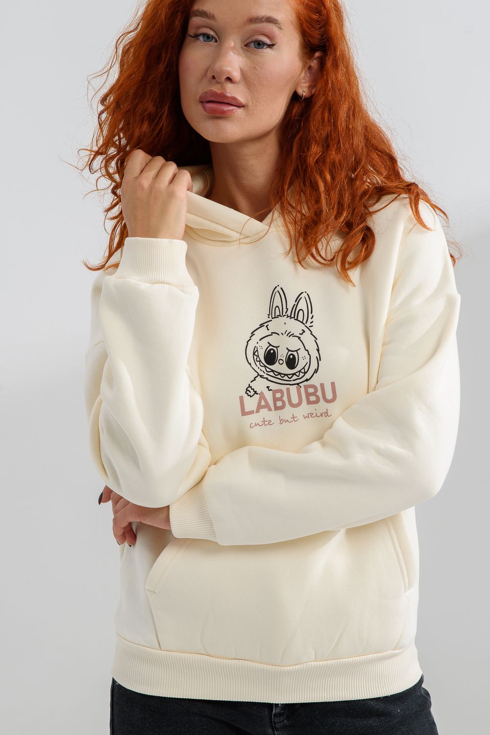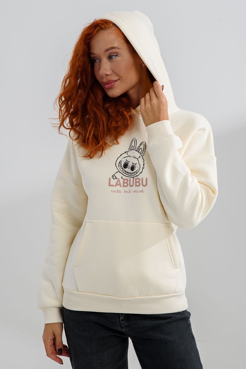 8565 толстовка женская оверсайз - молочный+лабубу