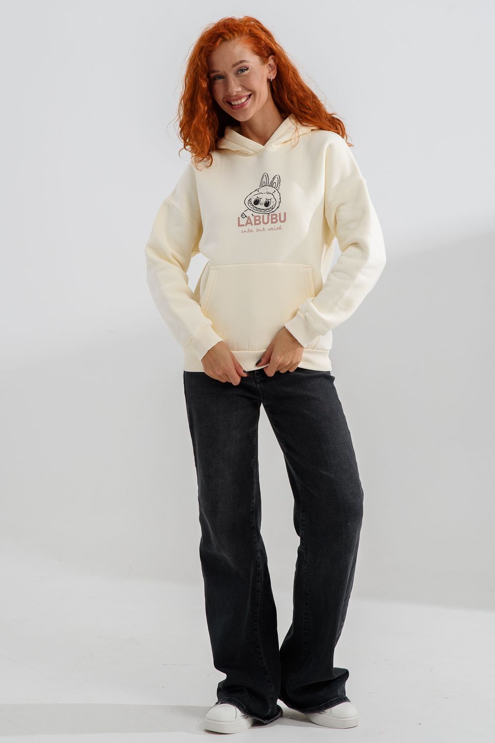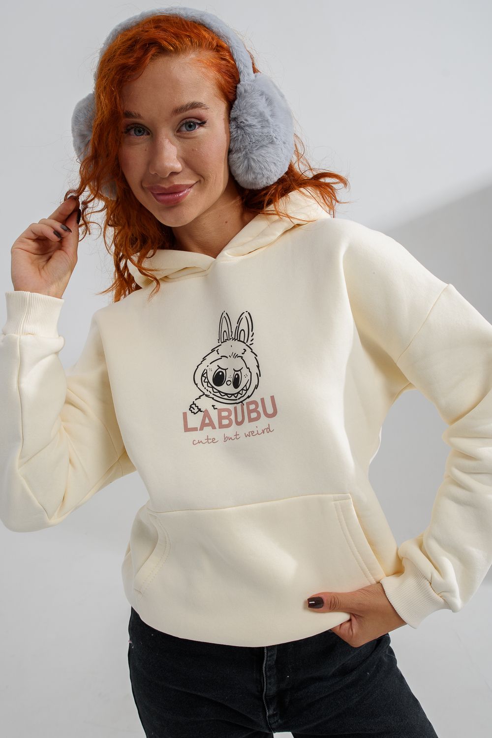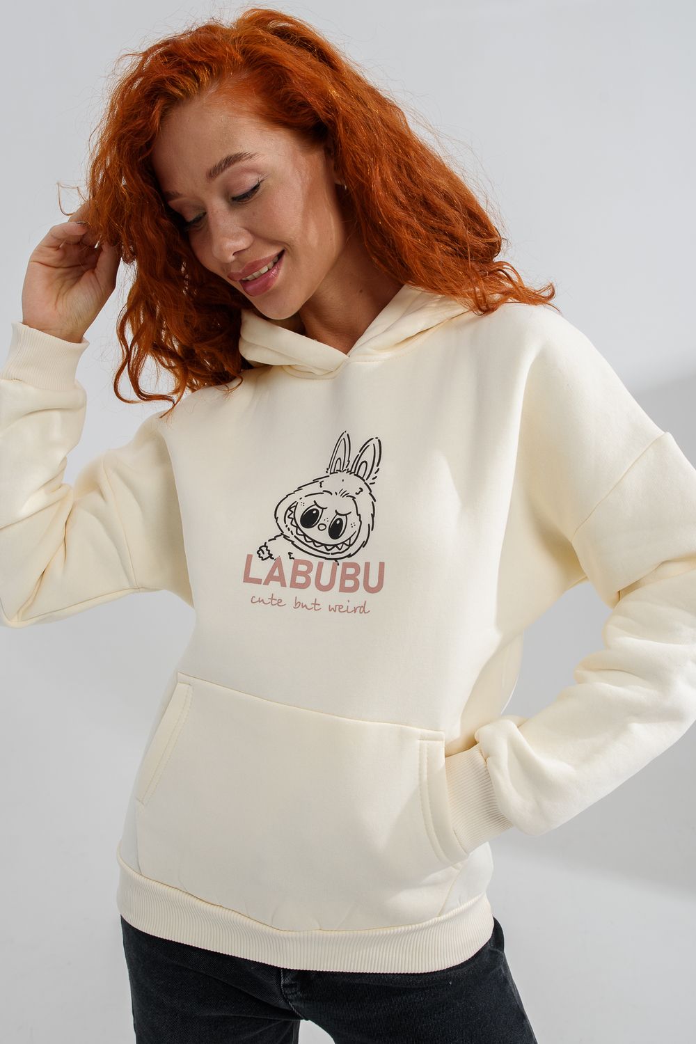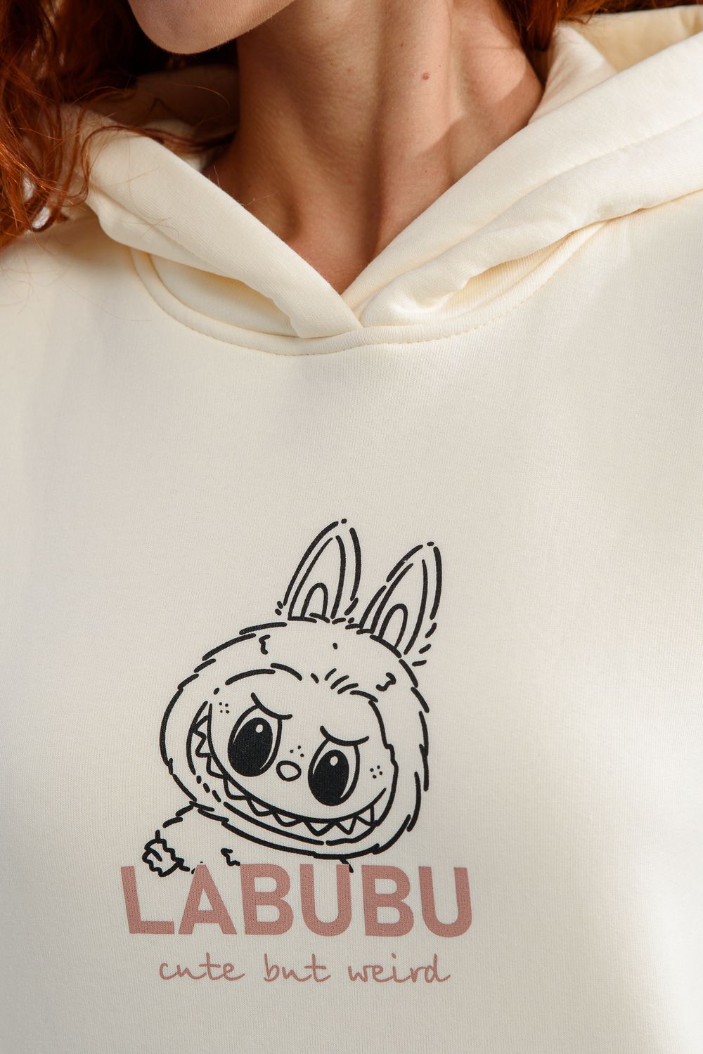8565 толстовка женская оверсайз - молочный+лабубу