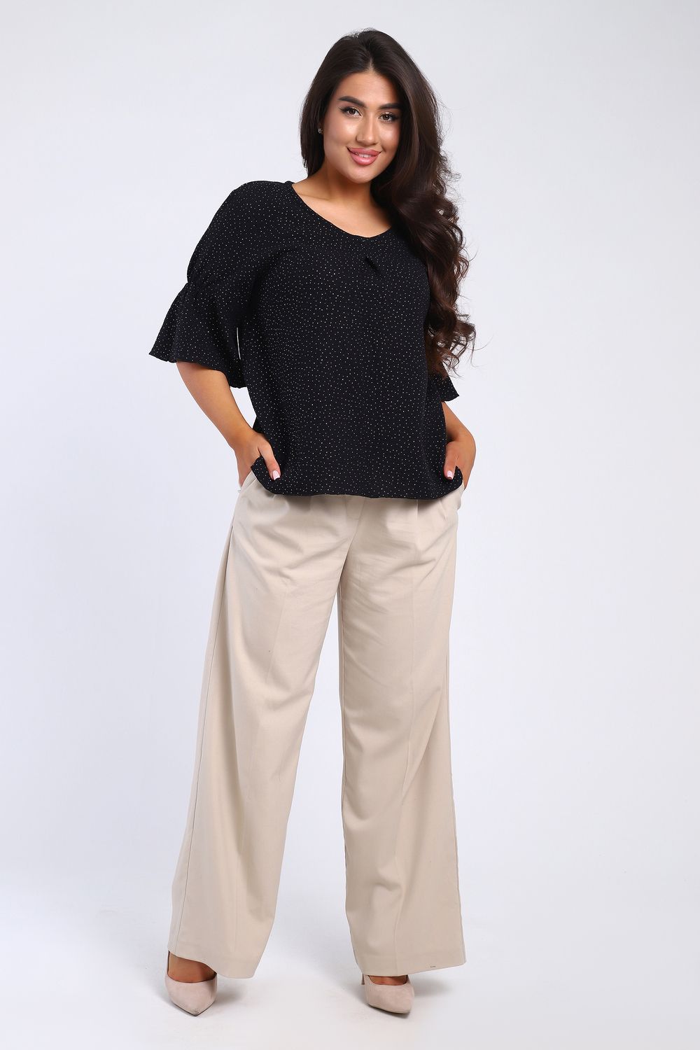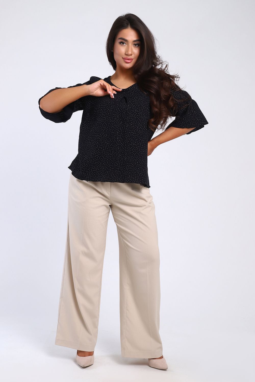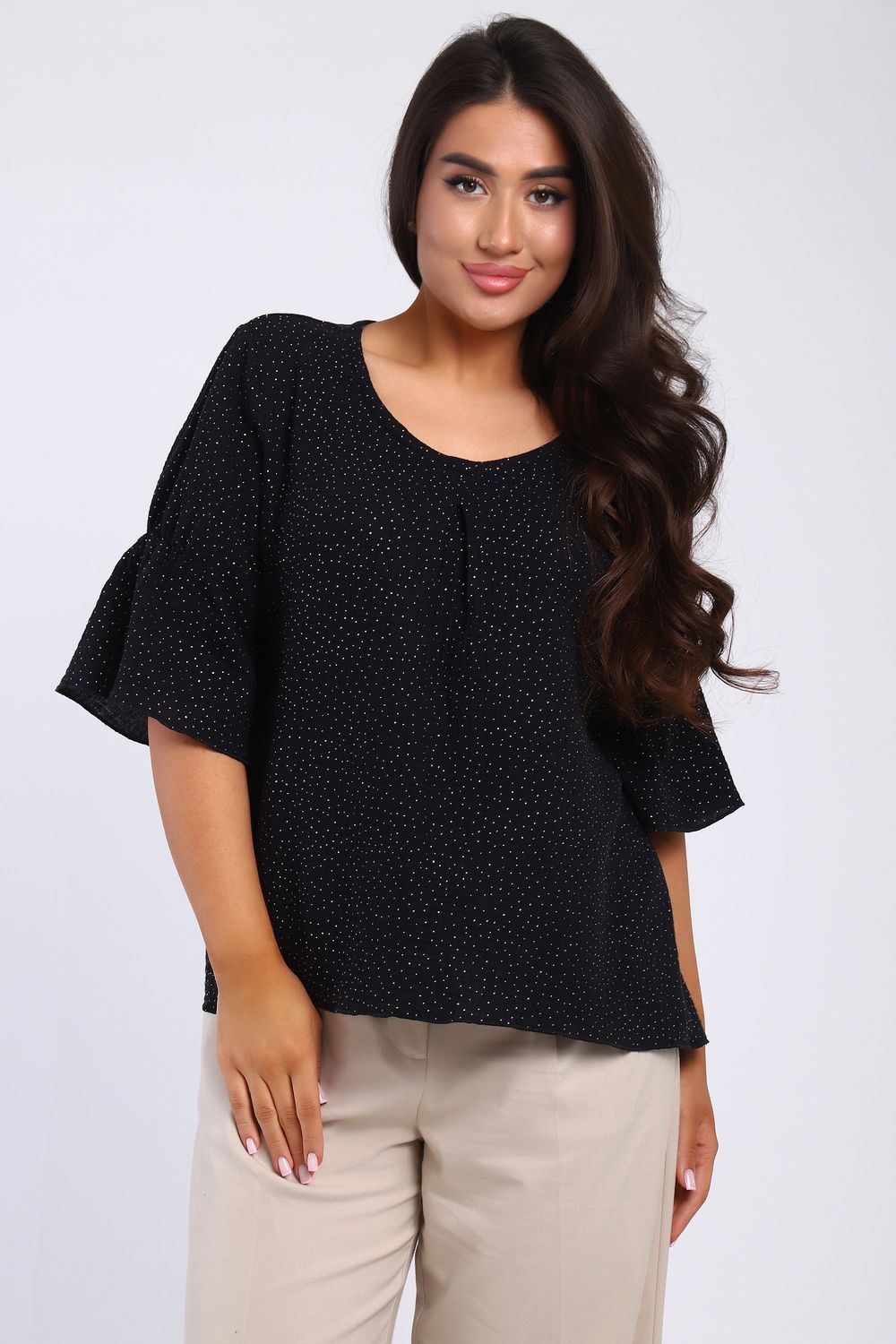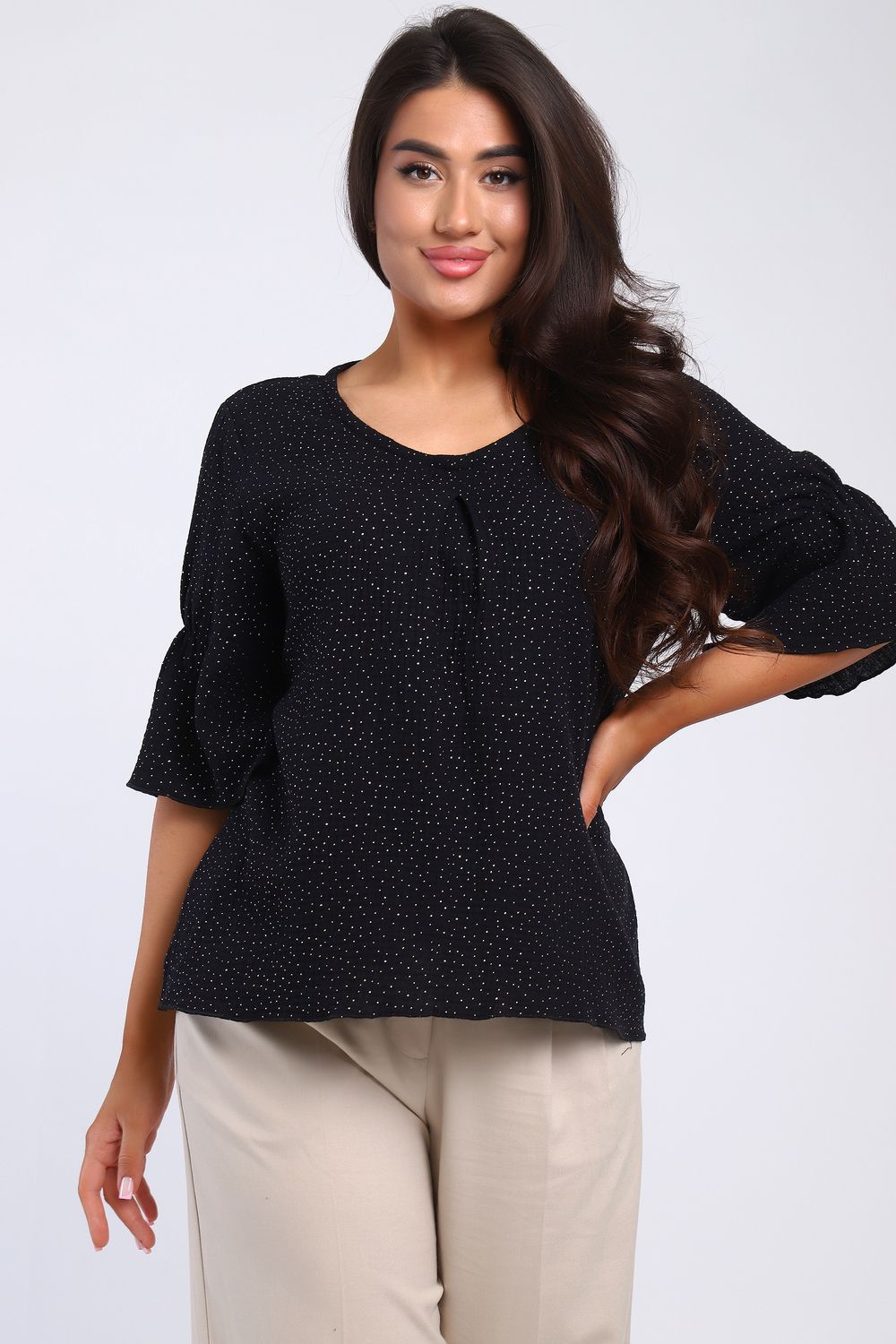 Настоящая находка для любителей натуральных тканей - очаровательная легкая блузка из муслина. Свободный крой блузки дополняют расклешенные рукава, присборенные на резинку по центру. Горловина округлая, окантованная косой бейкой, в центре застрочена встречная складка. Длина изделия до середины бедра. Низ блузки и низ рукавов обработаны на краевом оверлоке. Невесомая и воздушная блузка подойдет и для прогулок в жаркую погоду, и для работы в офисе. Черная ткань имеет золотистые вкрапления, что делает блузку очень эффектной. Стирать данную вещь рекомендуем вручную, утюжить только с изнаночной стороны.