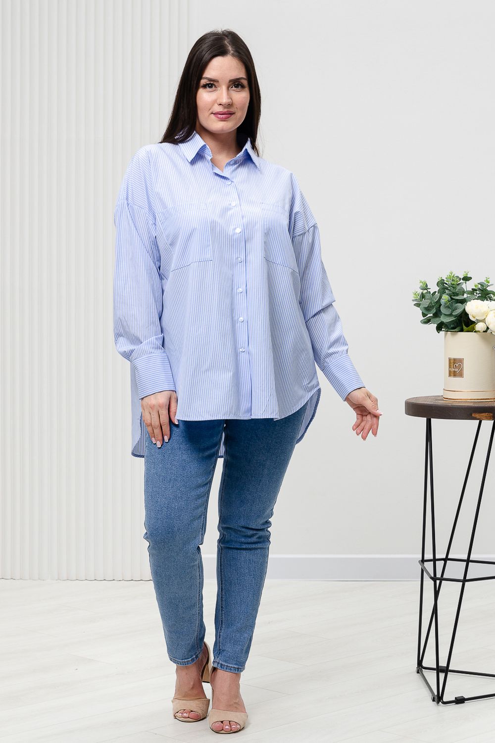 Базовая женская рубашка из хлопка не нуждается в представлении. Это основа любого делового гардероба. Комфортный свободный крой, втачной рукав с манжетами на пуговице и вертикальная полоска, вытягивающая силуэт – все эти детали говорят сами за себя! Рубашка отлично сочетается как с классическими брюками из нашей коллекции, так и с джинсами, создавая образ в стиле casual.