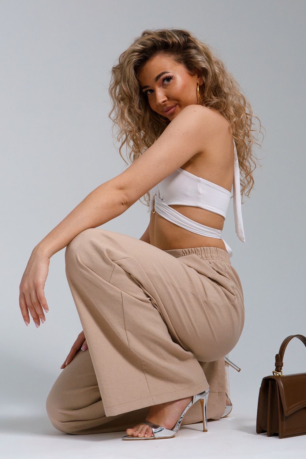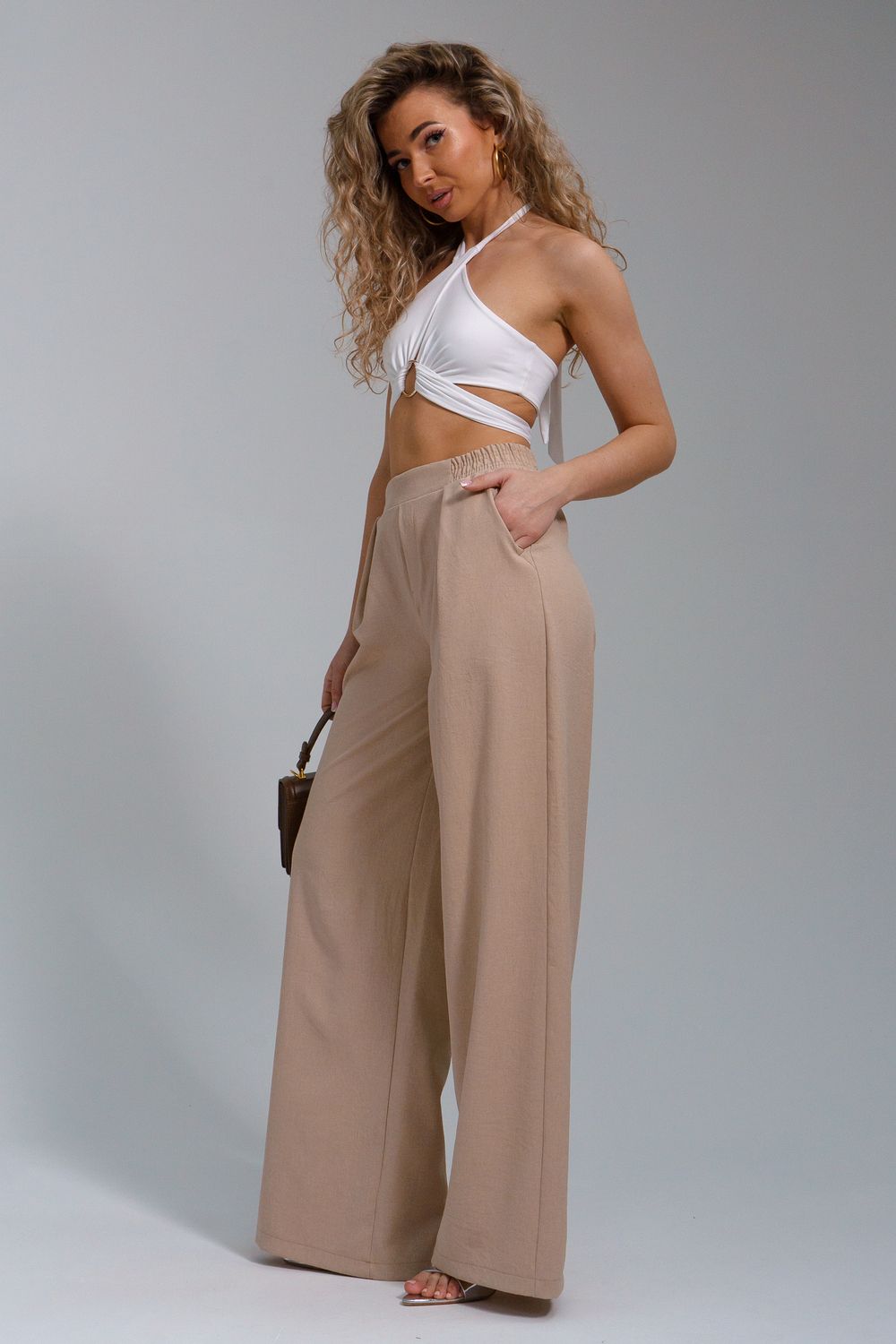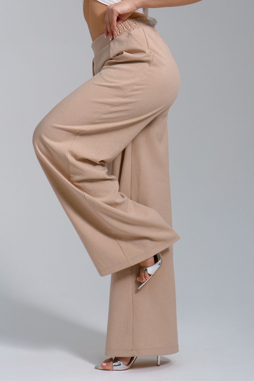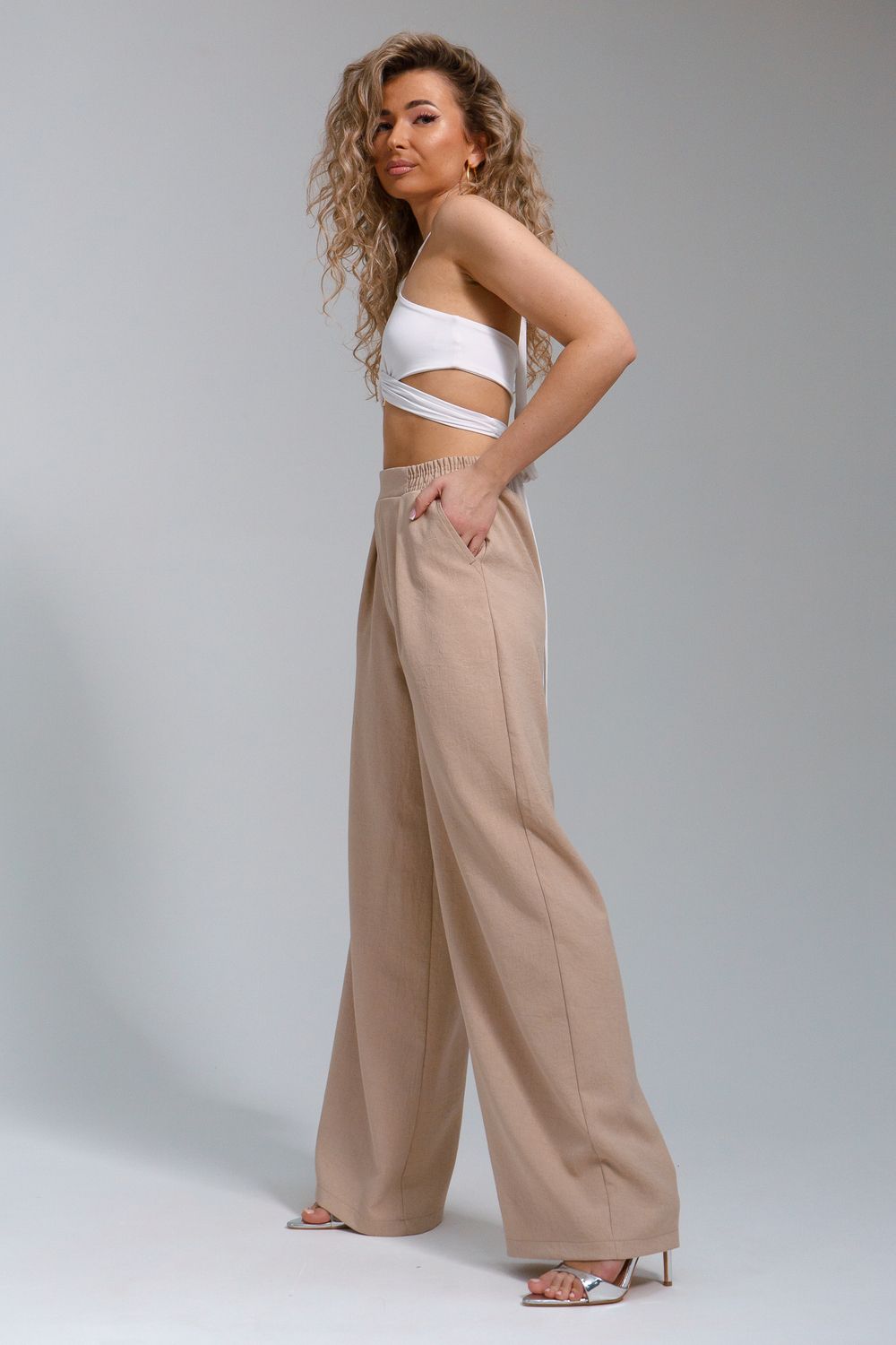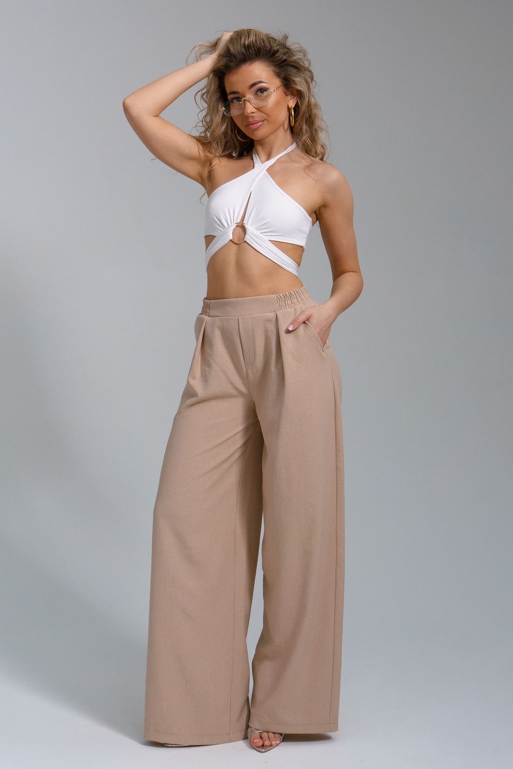 Брюки-палаццо – мастхэв базового женского гардероба. Модель выполнена из качественной льняной ткани. Материал прочный, приятный на ощупь, хорошо струится и дышит. Изделие представлено в классических модных цветах. Широкий крой со складками и высокой талией создает красивый силуэт и обеспечивает удобную посадку, на любой тип фигуры. Пояс выполнен на специализированной поясной машине, что добавляет изделию качество на долгое время и эстетичность. На брюках имеются боковые карманы с усиленными закрепками на закрепочной машине. На модели представлен 46 размер - фигура соответствует параметрам размера. УХОД ЗА ИЗДЕЛИЕМ: бережная стирка при максимальной температуре 30ºС, не отбеливать, машинная сушка запрещена, глажение при 110ºС, профессиональная сухая чистка, стирать вывернутым наизнанку, глажение с использованием специальной сетки, стирать с изделиями похожих цветов . Брюки такого плана идеально впишутся в городской стиль, элегантность и комфорт, женственные силуэты и мягкие линии, расслабленные, нарочито небрежные образы, стильные и комфортные. Широкие брюки со складками – модная одежда для женщин на любой случай жизни. Подойдут для стильных повседневных луков, офисных аутфитов, нарядных вечерних образов и прогулок.