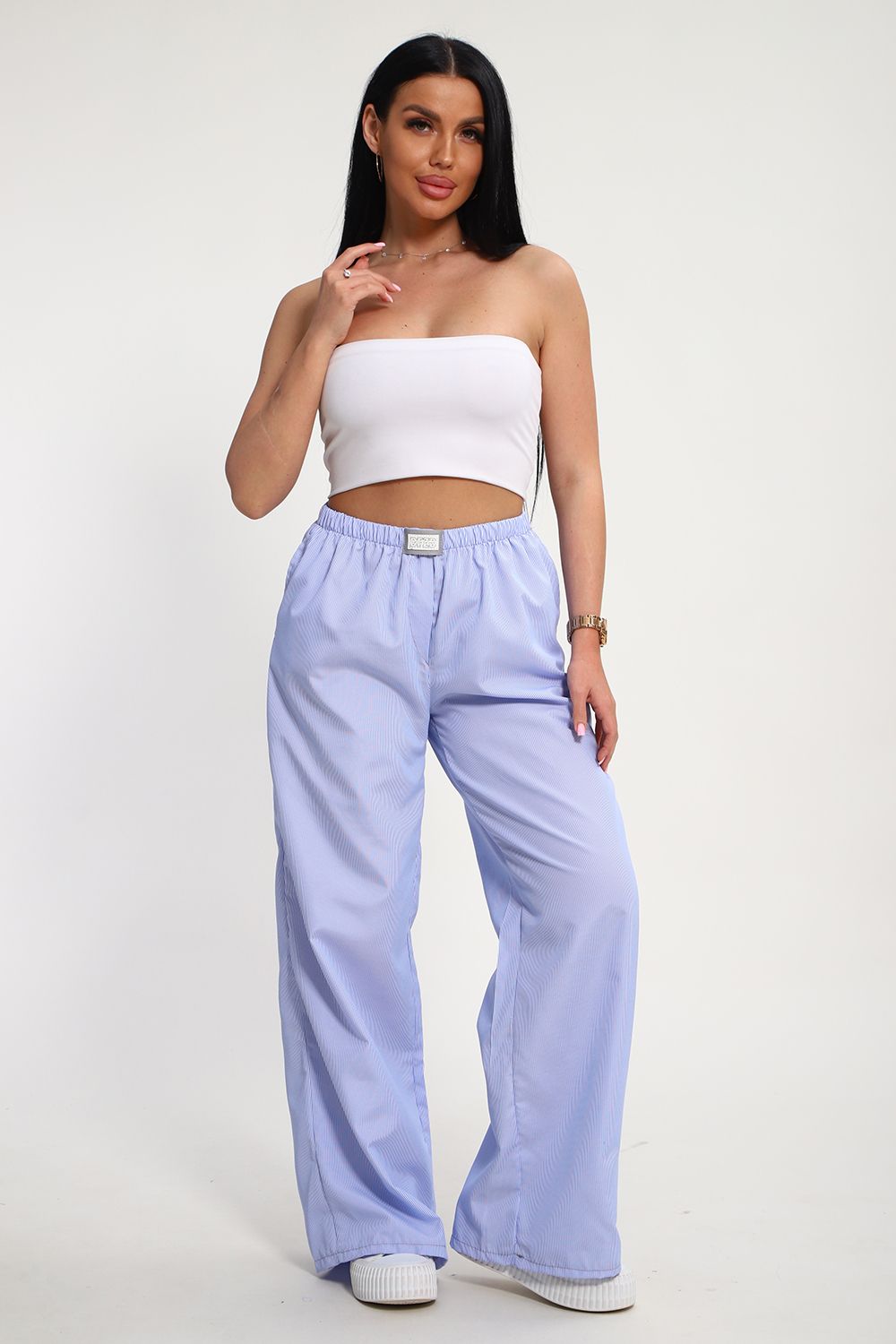 классные брюки из тонкой нежной ткани.палаццо с карманами .гульфиком обманкой