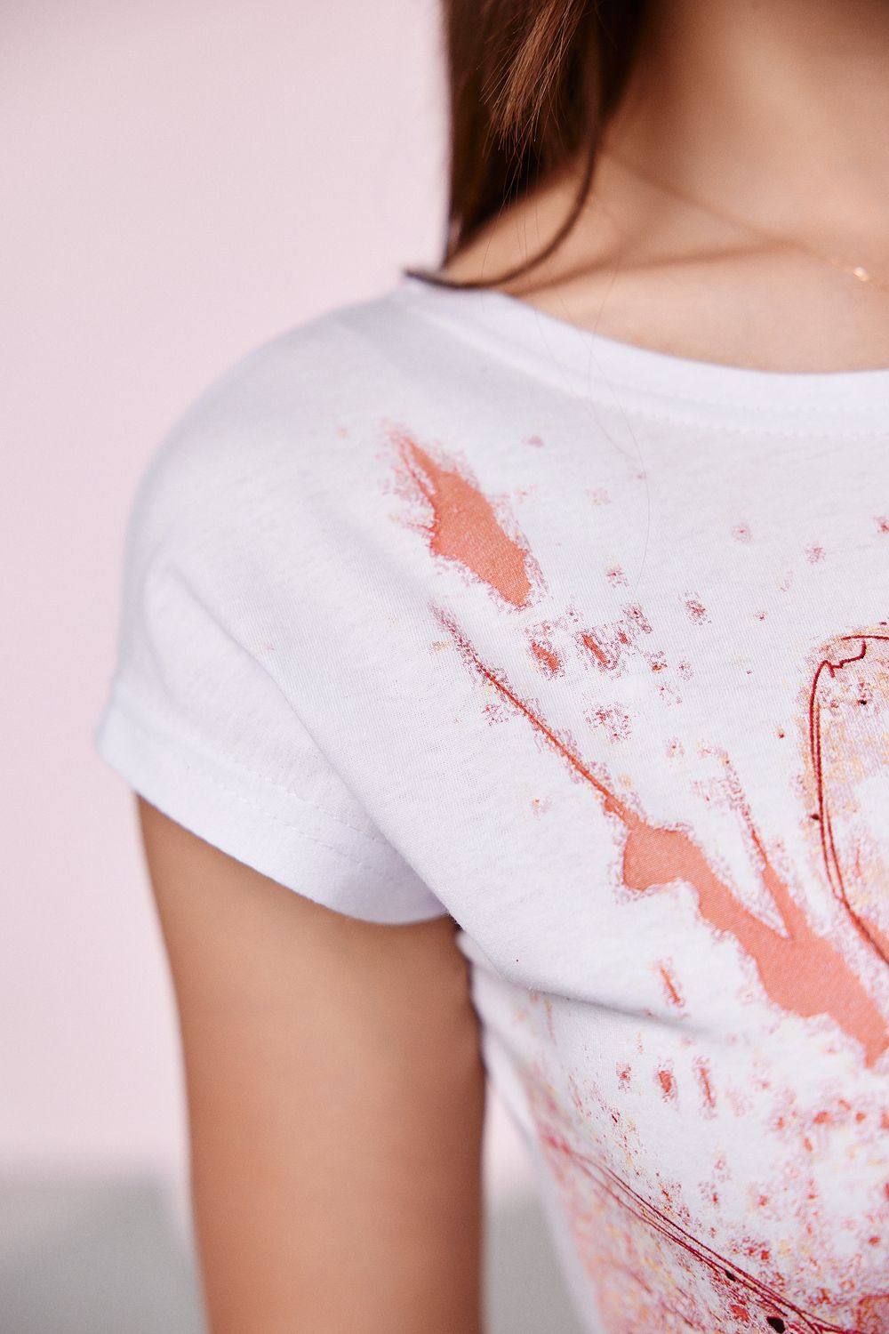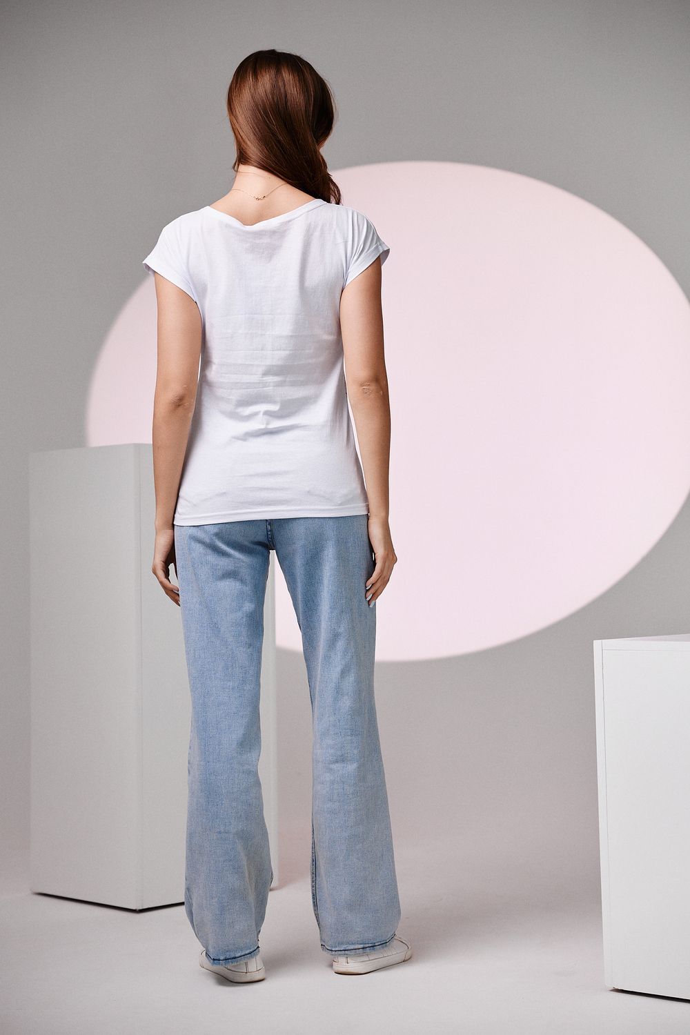 Футболка полуприлегающего силуэта, средней длины, с округлой горловиной. Рукав цельнокроеный, короткий.