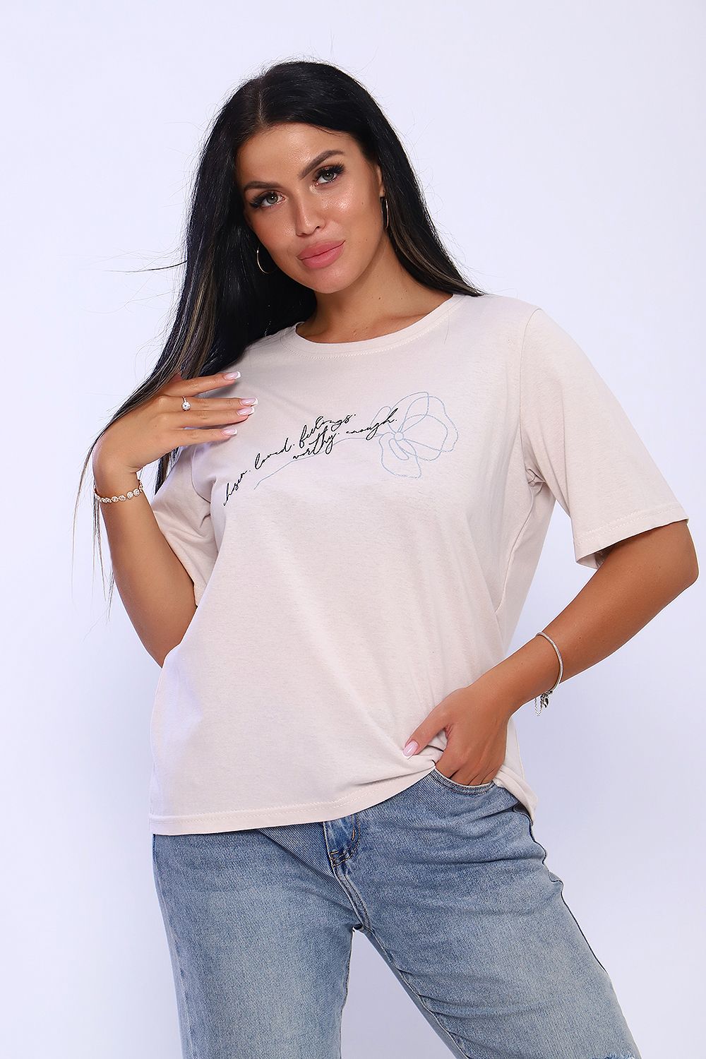 Футболка с рисунком маленькой розочки придает изделию неповторимый шарм и красоту! Прямой силуэт, выверенная длина рукава до локтя, обработка деталей вкруговую с закрепкой для прочности. Горловина выполнена из основной ткани. Большие размеры!