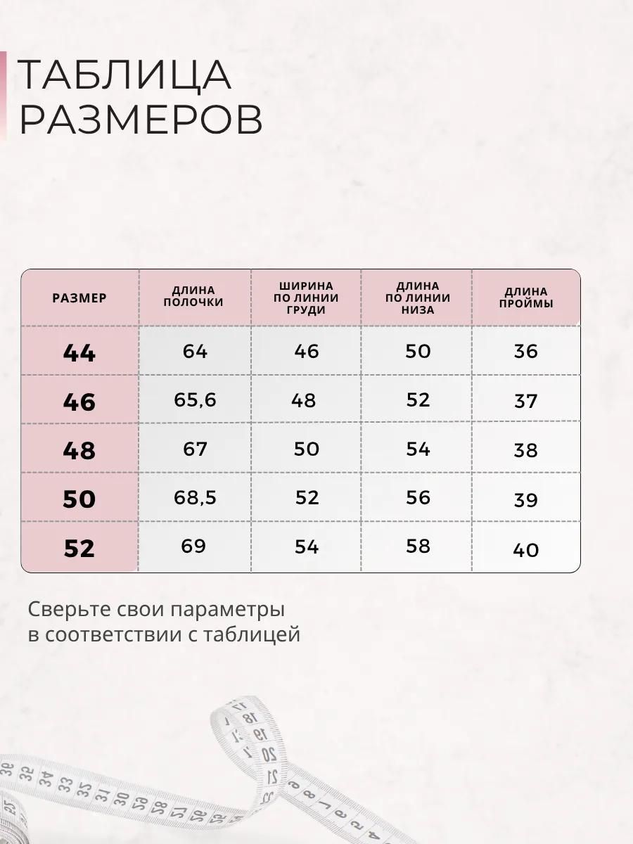 | Размер | Длина изделия | Длина рукава | Объем груди | Объем талии | Объем бедер | Вес (г.) |
