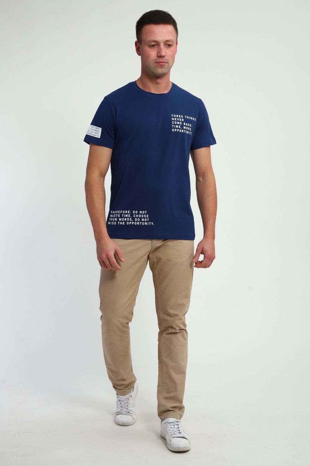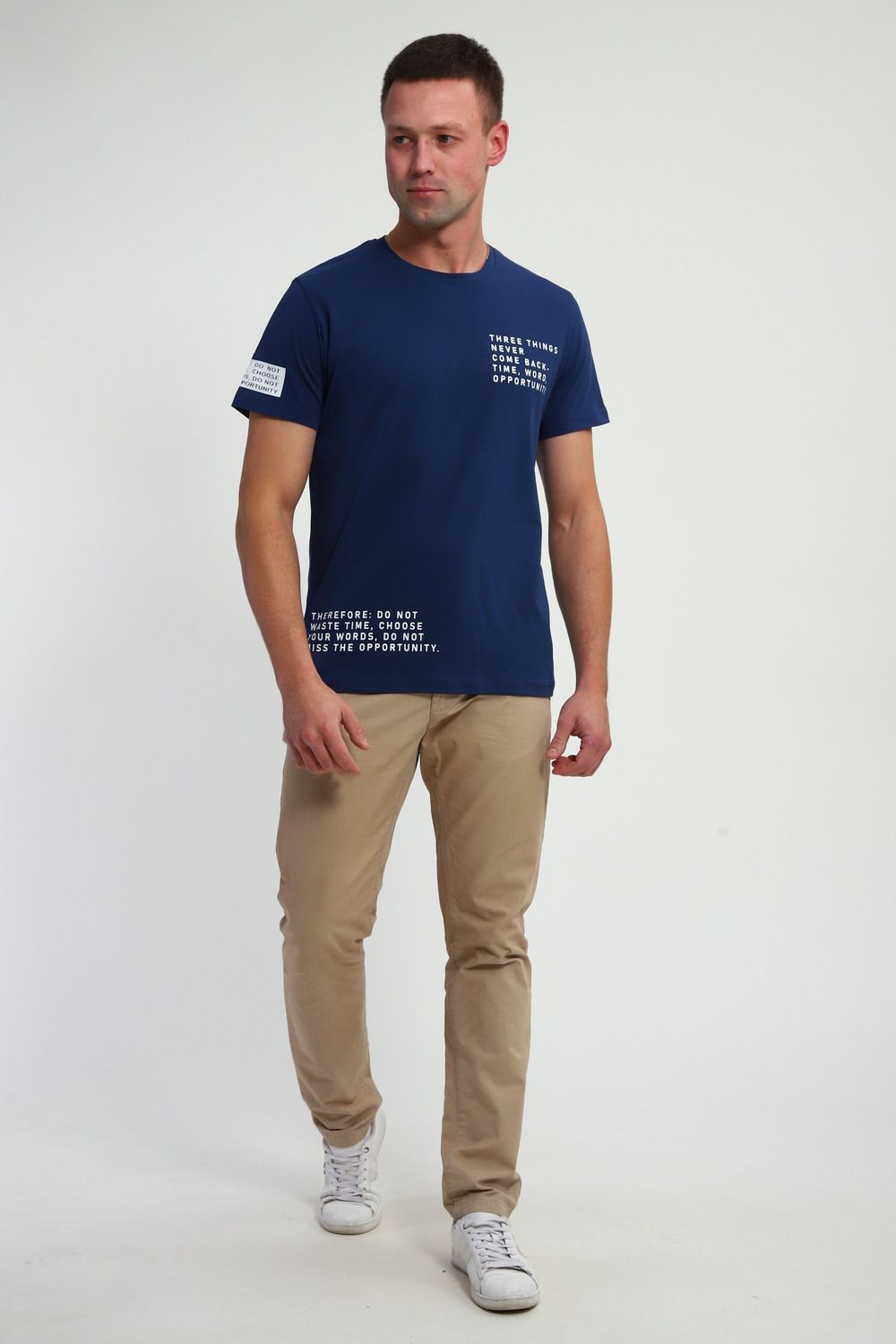 Базовая мужская футболка. Оформлена традиционным круглым неглубоким вырезом, с коротким рукавом. На футболке так же присутствует печать. Стильная футболка займет достойное место в вашем гардеробе: просто выберите ваш цвет.