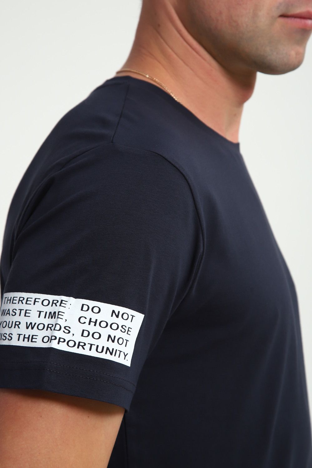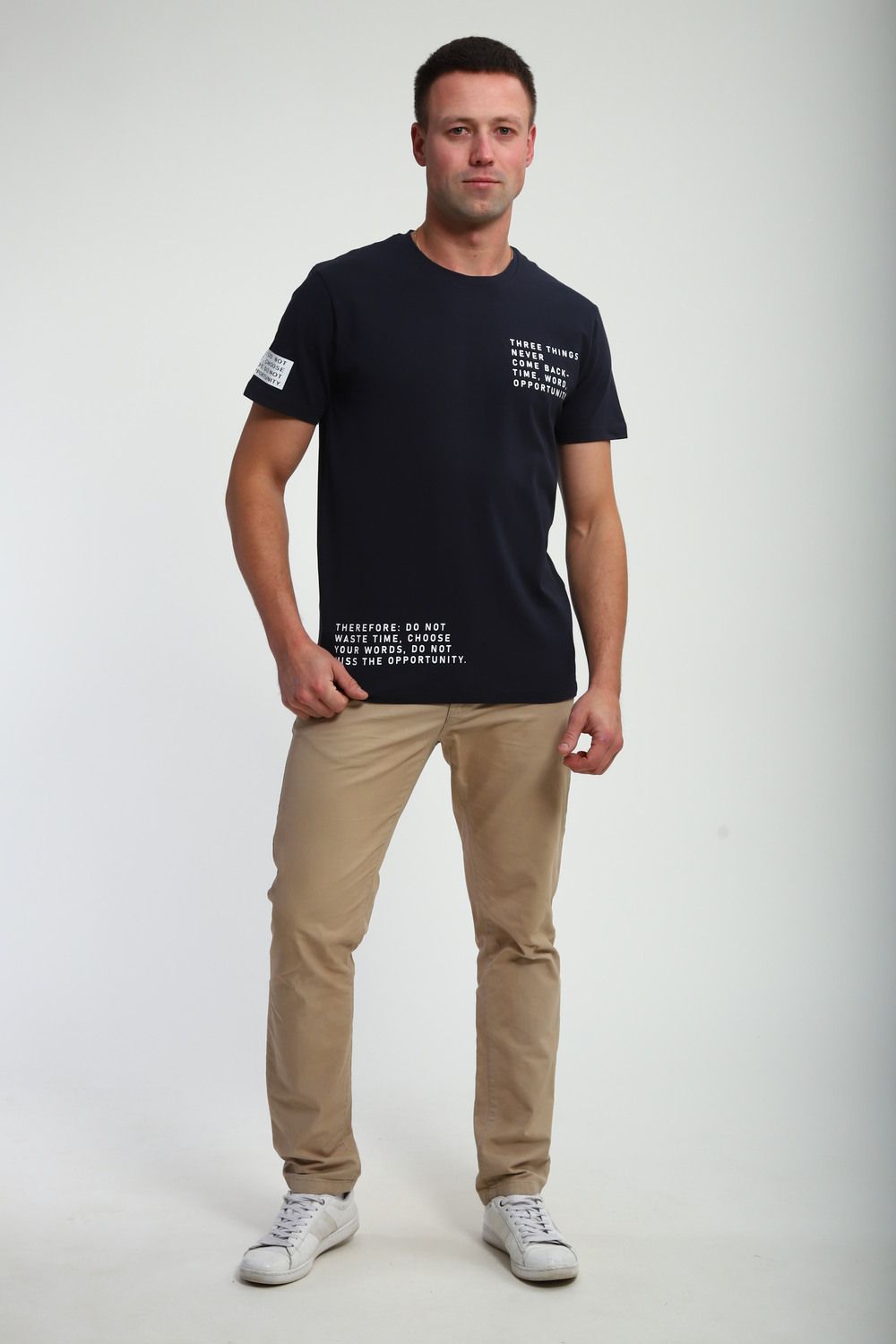 Базовая мужская футболка. Оформлена традиционным круглым неглубоким вырезом, с коротким рукавом. На футболке так же присутствует печать. Стильная футболка займет достойное место в вашем гардеробе: просто выберите ваш цвет.