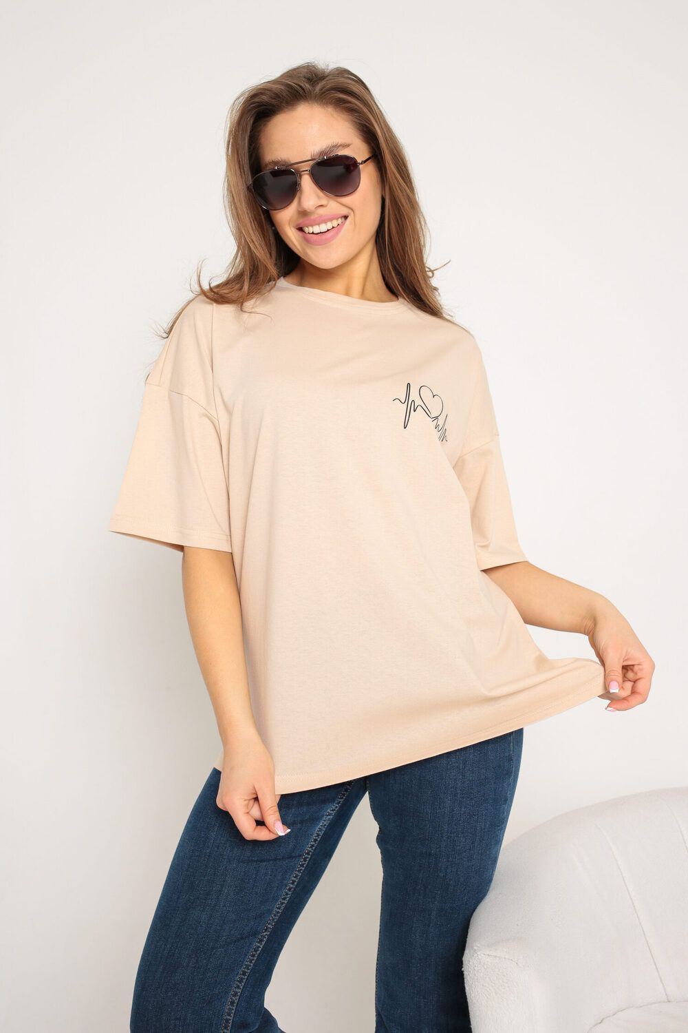 Футболка оверсайз женская с принтом Ирина - бежевый