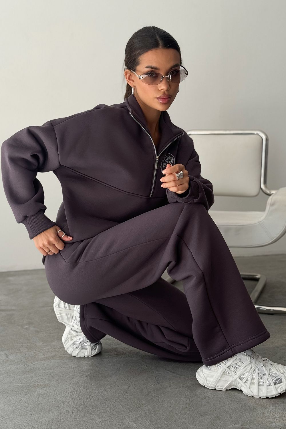 Теплый женский спортивный костюм — отличный выбор в качестве базовой одежды для зимы и холодного демисезонного периода! Комплект - двойка из коллекции включает свитшот с длинными рукавами и брюки с высокой посадкой. Модели сшиты из мягкого и приятного к телу футера. Это плотный материал, который приятно согревает и отлично дышит. В составе ткани хлопок и полиэстер. Вещи имеют прямой крой и свободно сидят по фигуре.