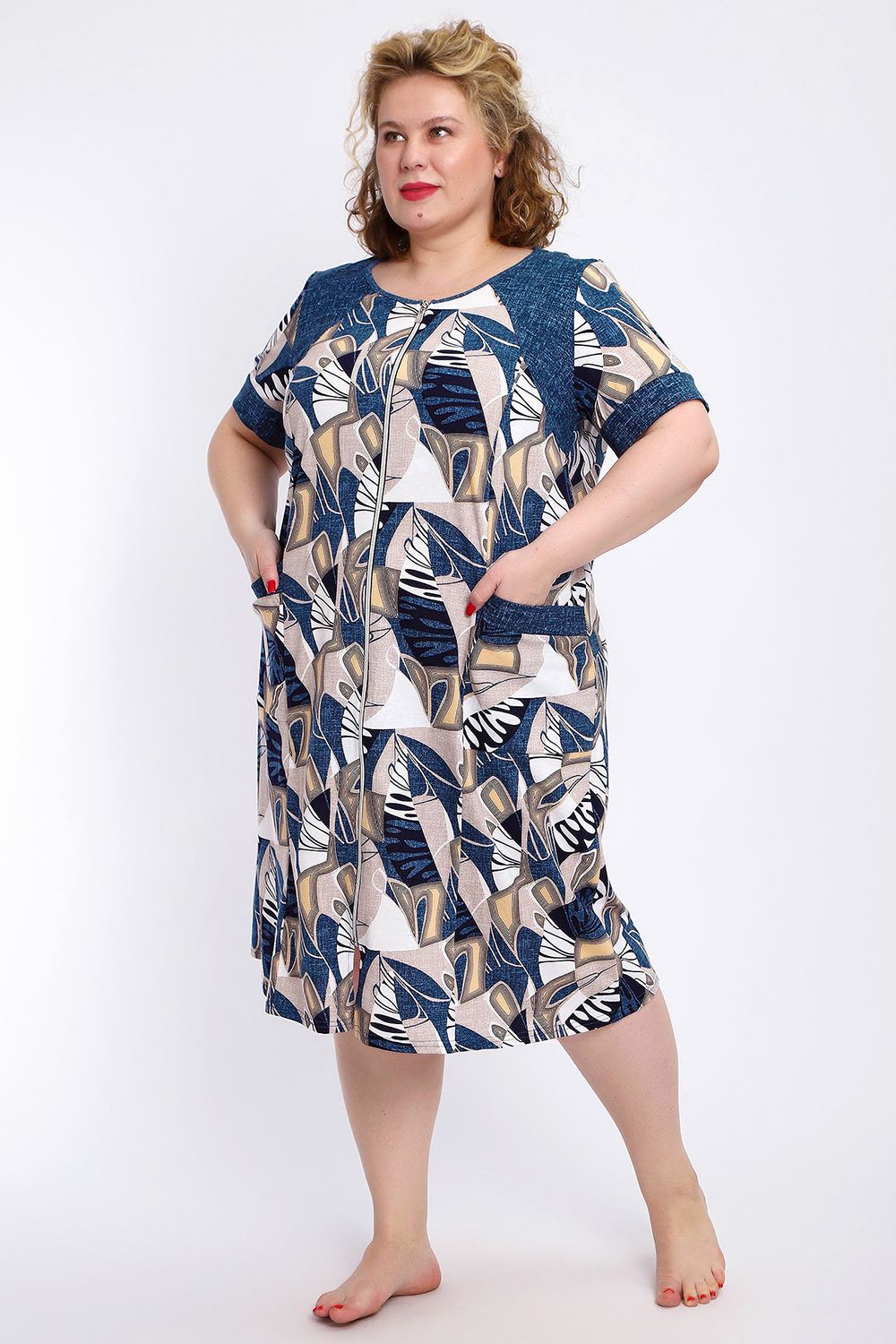 Ощутите домашний уют и комфорт - выбирайте халат женский домашний больших размеров из мягкой хлопковой ткани с очаровательным принтом. Халат на молнии является самой популярной моделью, обеспечивает удобство во время носки, не сковывает движений. Прямой свободный крой платья позволяет скрыть недостатки фигуры и ощущать легкость во время домашнего отдыха. Халат домашний дополнен накладными карманами и стильной круглой горловиной, которая оформлена декоративными планками. Длина платья универсальная, за колено. В наличии есть большие размеры, поэтому выбирайте такой халат в роддом. Изделие выглядит стильно и привлекательно за счет нежных светлых бутонов цветов на контрастном темном фоне. Женская домашняя одежда российского производства имеет идеальную посадку, не линяет, не дает усадку после стирки и долго сохраняет первоначальный внешний вид. Этот женский универсальный халат изготовлен из 100% хлопка, поэтому его можно хорошо использовать как банный халат. Для вашего удобства у халатика есть два боковых кармана, которые хорошо подходят для телефона или всяких мелочей. Размерная сетка включает в себя большие размеры ( до 74 размера). Халат трикотажный выполнен из 100% хлопка. Ткань не вызывает аллергии, не электризуется, хорошо держит форму, не деформируется при стирке. Мягкое трикотажное полотно отлично пропускает воздух, позволяет коже дышать, что актуально в самые жаркие летние дни. Благодаря универсальному крою халат в нежной расцветке подходит для покупательниц любого возраста и любого типа женской фигуры, скрывает недостатки и подчеркивает достоинства. Свободный силуэт позволяют носить его как домашнее платье, даря удобство и комфорт в течение всего дня. Домашний халат с рукавами отлично подойдет в подарок маме, бабушке или сестре на новый год, 8 марта или просто так порадовать.