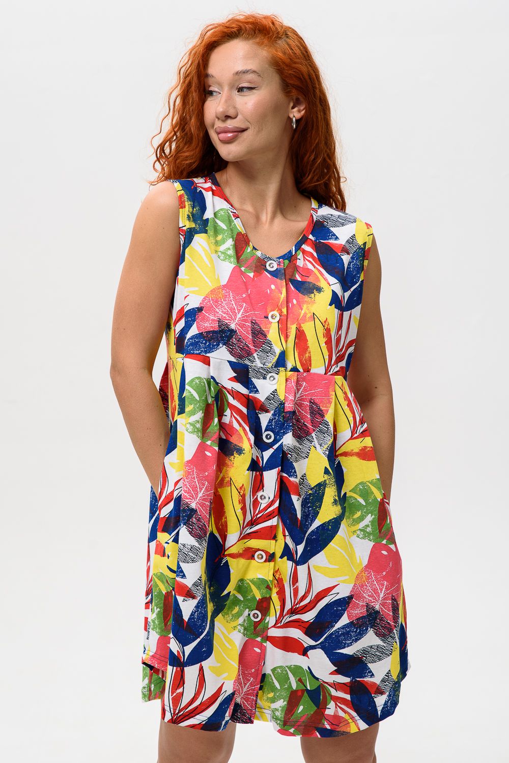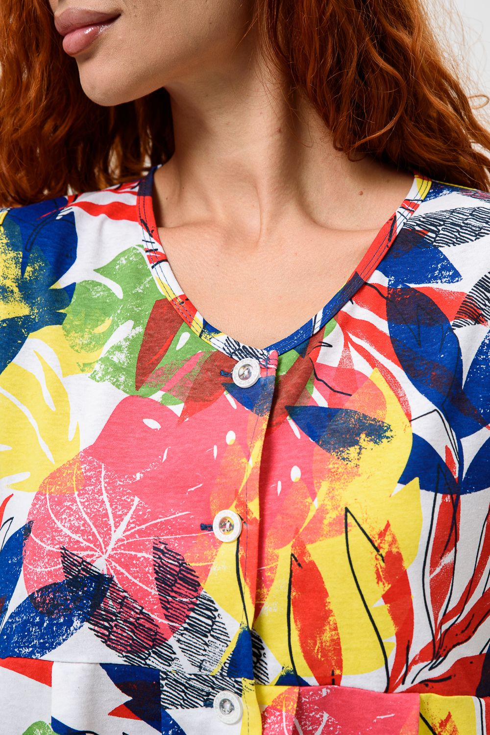 Халатик свободного силуэта с воздушными рукавами. Особенностью кроя является завышенная талия, поэтому скрывается животик. Удобные карманы. Подборт халата укреплён флизелином для укрепления петель и пуговиц.