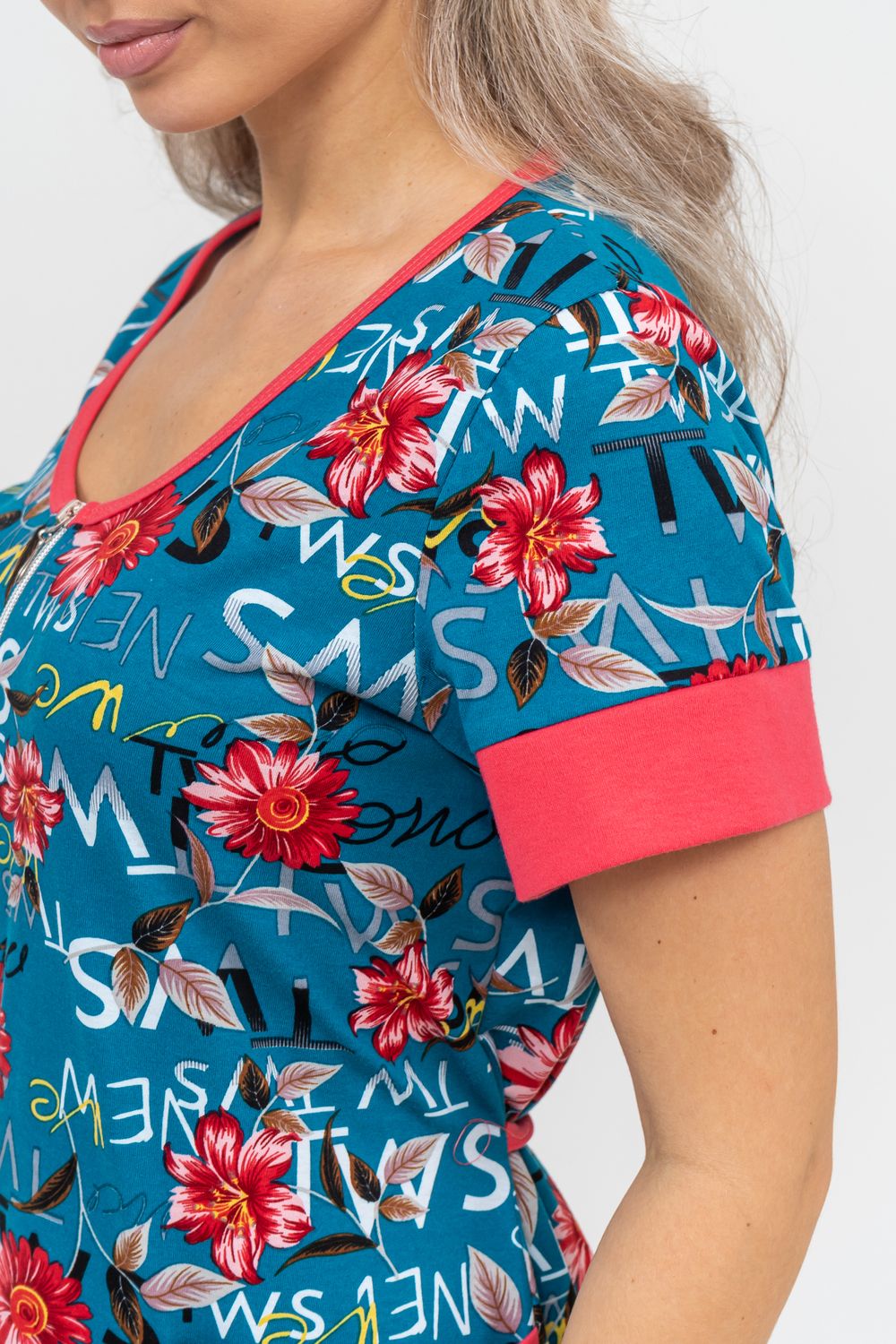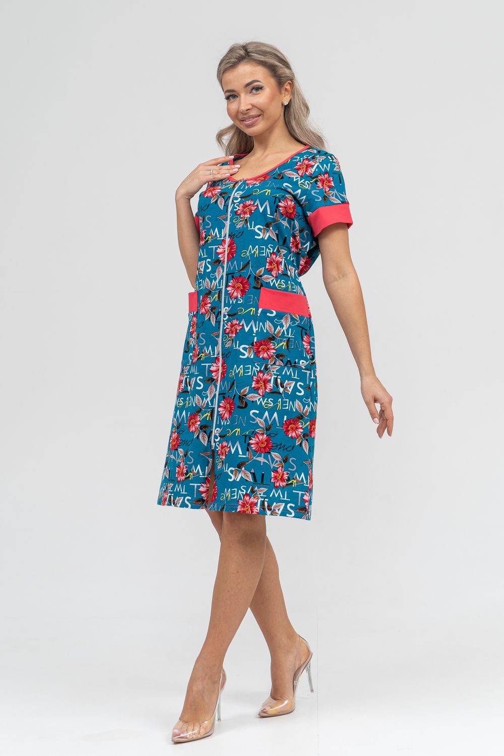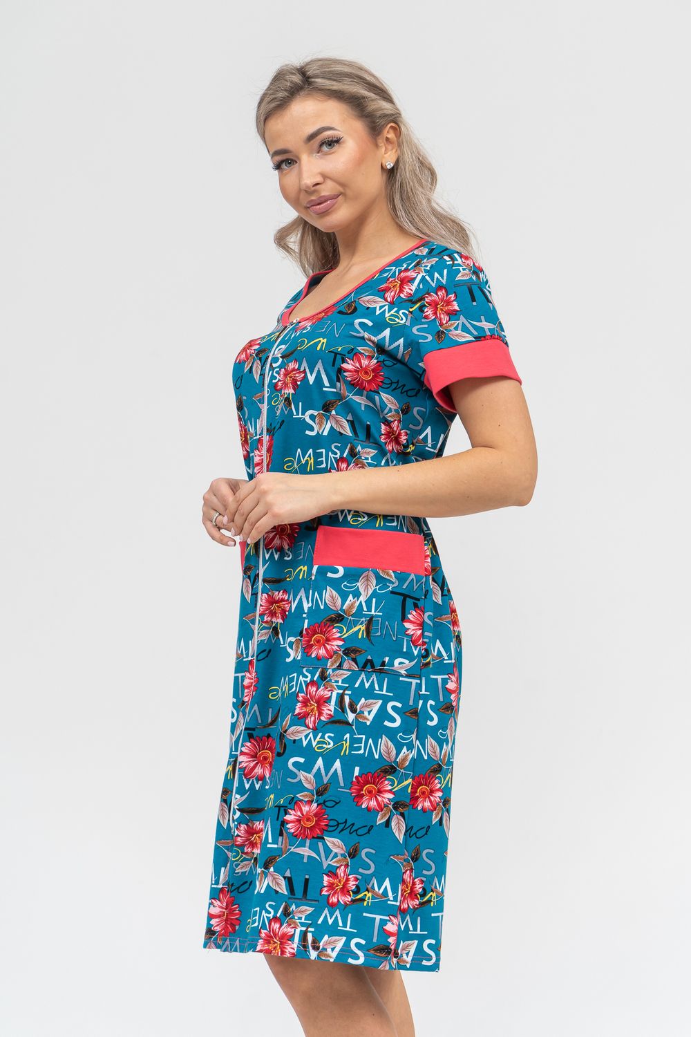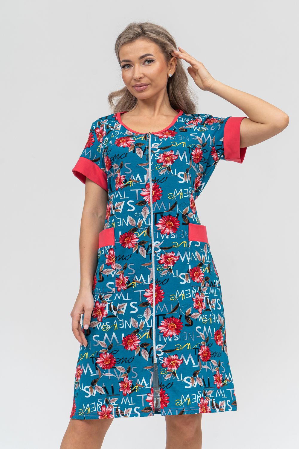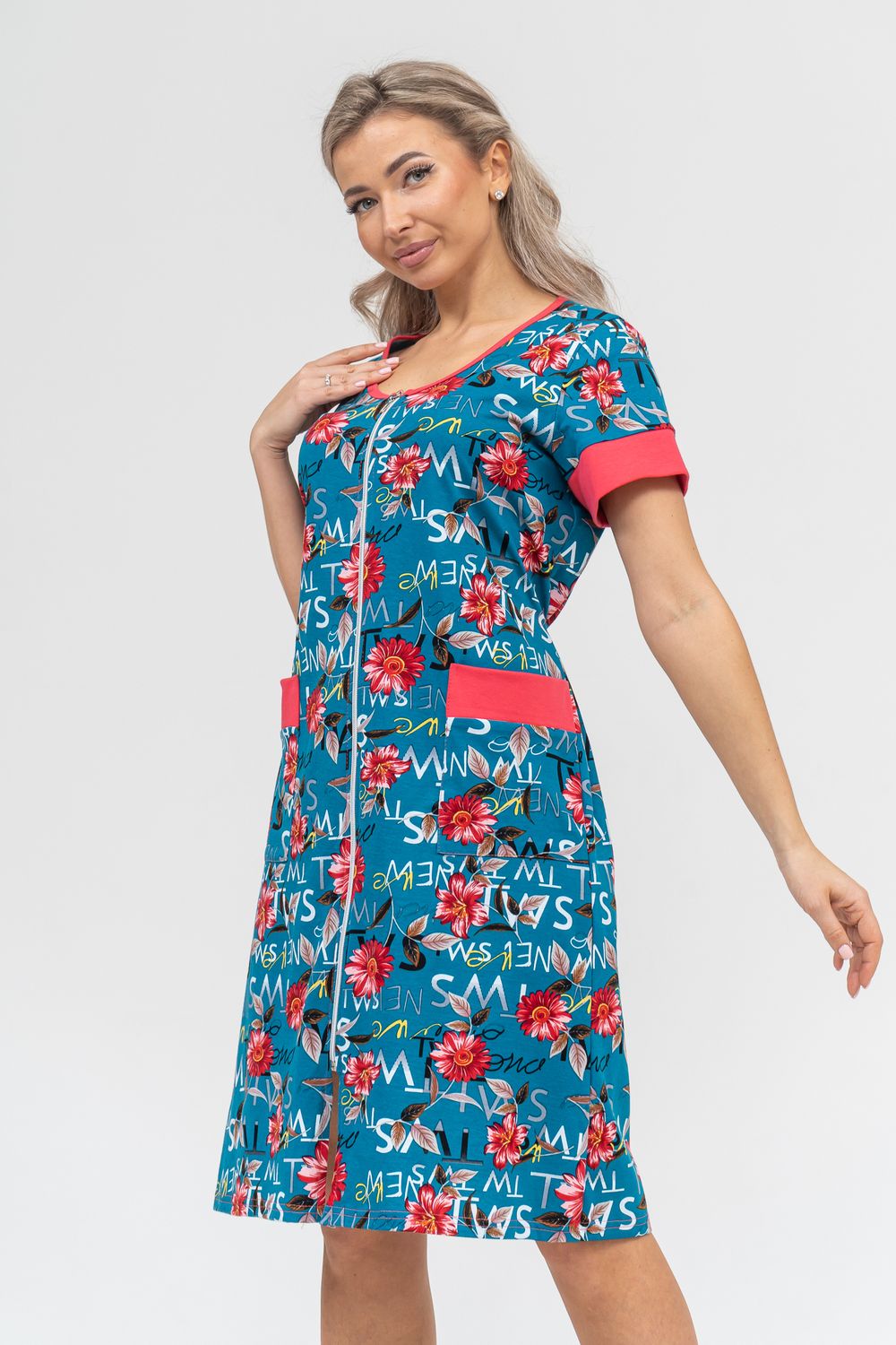Женский халатик на молнии – самая распространенная и универсальная одежда для домашнего отдыха и хозяйственных хлопот. После трудного рабочего дня, приходя домой, первым делом хочется переодеться. И данная модель это идеальный вариант среди представительниц прекрасной половины человечества. Модель выполнена из 100% хлопчатобумажной ткани. Халат так же дополняет яркая отделка по рукавам и карманам. А пояс на линии талии поможет легко смоделировать женственный силуэт и при этом Вы будете чувствовать себя легко и непринуждённо. Данная модель прекрасно подойдёт для дома, дачи и отдыха, создавая по-настоящему яркий образ и хорошее настроение!