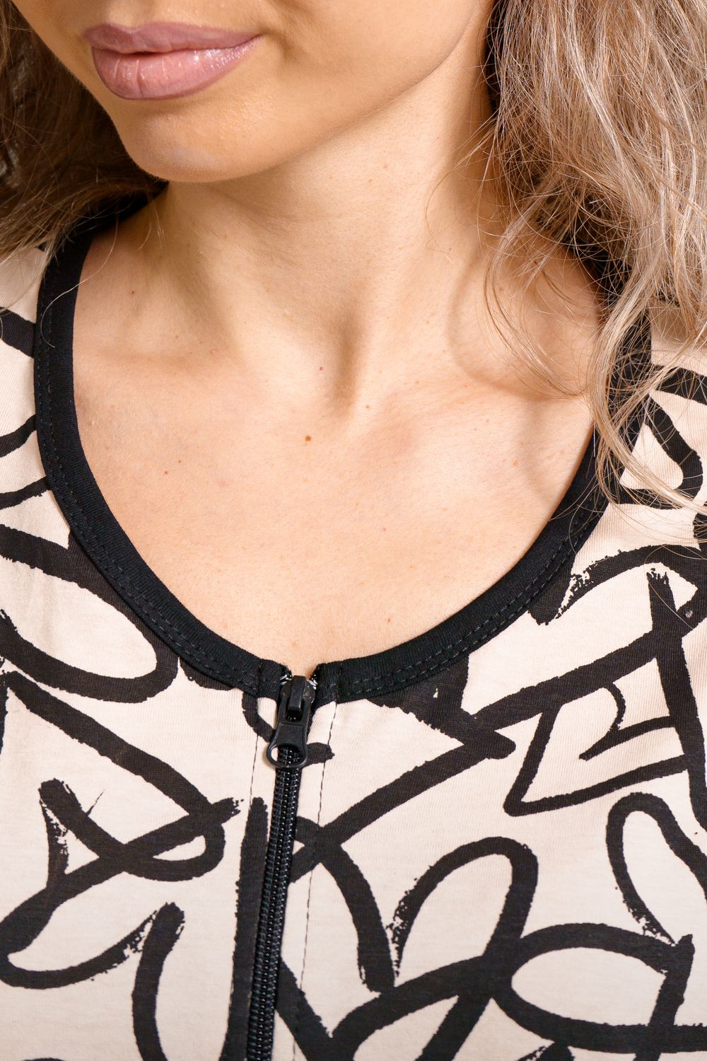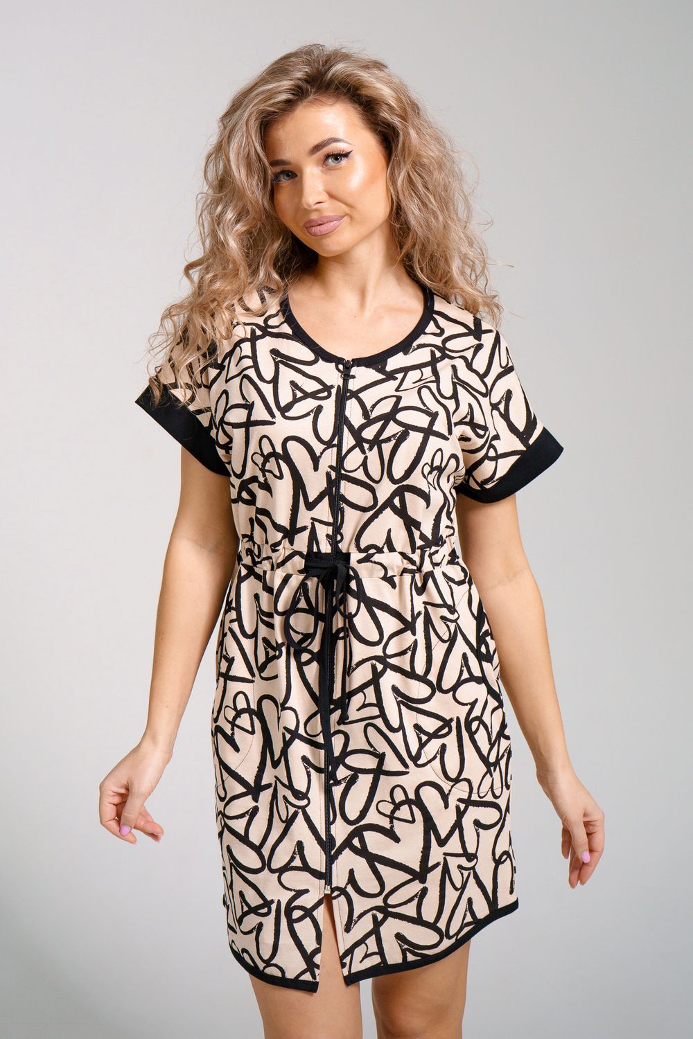Женский трикотажный халат на молнии без сомнения станет самой желанной и любимой вещью в гардеробе любой дамы. Халатик укороченный, на кулисе со шнурком, с удобными карманами и молнией. Выглядит стильно и современно. Халатик такого плана подходит для фигур разного типа. Легкий и мягкий, качественный, дышащий, сшит из высококачественного трикотажа, подарит вам абсолютную непринужденность и легкость, простор в движении, идеально подойдет для беременных и кормящих и будет хорошим сопровождением в роддом и не вызовет раздражения, так как создан из натуральной ткани. Благодаря этому может стать прекрасным подарком для, мамы, подруги, бабушки, сестры или коллеги на любой праздник. Отлично сядет на женщин больших размеров. Данная модель будет кстати для отдыха на даче и даже поездки к морю. Домашняя одежда российского производства, имеет комфортную посадку, не линяет, не дает усадку после стирки и долго сохраняет первоначальный внешний вид. Халатик подчеркнет Ваш стиль и добавит молодежных нот в ваш образ, а затягивающийся пояс на талии придаст женственности и изящества вашему луку . Стирайте изделия из хлопка на бережном режиме с температурой не выше 30С, чтобы сохранить цвет, форму и фактуру материала. Приобретая наши изделия, радуйте себя и своих близких. Ориентируясь по таблице замеров, обратите внимание, что замеры длины рукава проводились от точки основания шеи.