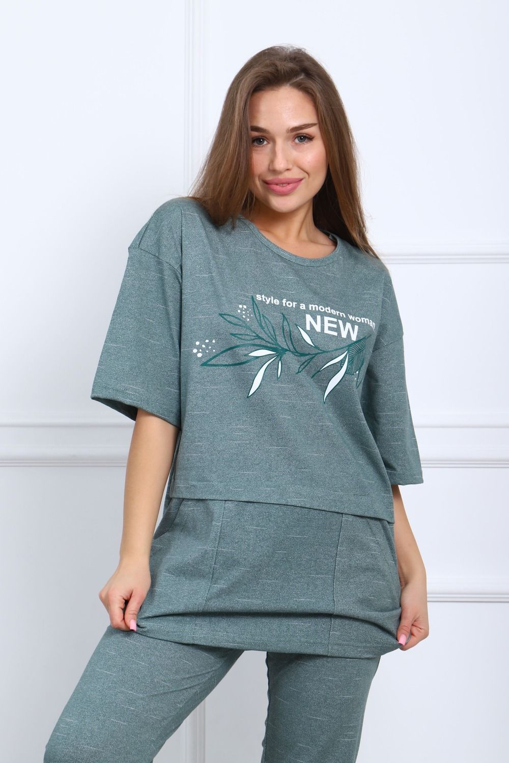 Женская универсальная трикотажная пижама с бриджами оверсайз (Oversize) из высококачественной кулирки от российского ивановского бренда Diana tex — это красивая, современная и стильная комбинация бриджей (Bridges) и T-shirt, которая идеально подойдёт для девушек, женщин, подростков и зрелых дам. Это уютное, комфортное и удобное повседневная двойка из мягкого трикотажа, что обеспечивает свободную посадку и подчёркивает эстетику. Лёгкая ткань приятна к телу, подходит для весенних и летних дней. Короткие штаны (Short pants) и футболка — шикарный комплект для использования дома, отдыха на море, дачи, сна и поездок. Эти брендовые интересные капри (Capri) и майка с укороченным рукавом доступны в больших размерах (плюс-сайз, plus size). Пижамный набор — прекрасный вариант для беременных и кормящих мам, жены, бабушки. Винтажное изделие (Retro) гармонично сочетается с домашним уютом и casual образом. Это станет отличным подарком на день рождения для сестры, подруги, особенно если она ищет одежду для роддома, которая представляет женственность. Авторский дизайн из коллекции 2025–2026 года создан с учётом актуальных трендов fashion. Шелковая текстура в сочетании с хлопком создаёт премиальное ощущение, делая вещь дышащей. Элегантный и модный pajamas в стиле Y2K. Наши модели (nuona) для разных типов фигур — от полных и plus-size до стройных, от высоких и невысоких — благодаря продуманному крою. The Vintage Sleep Set отличается качеством и вниманием к деталям, что особенно ценно в весенне-летний период года.