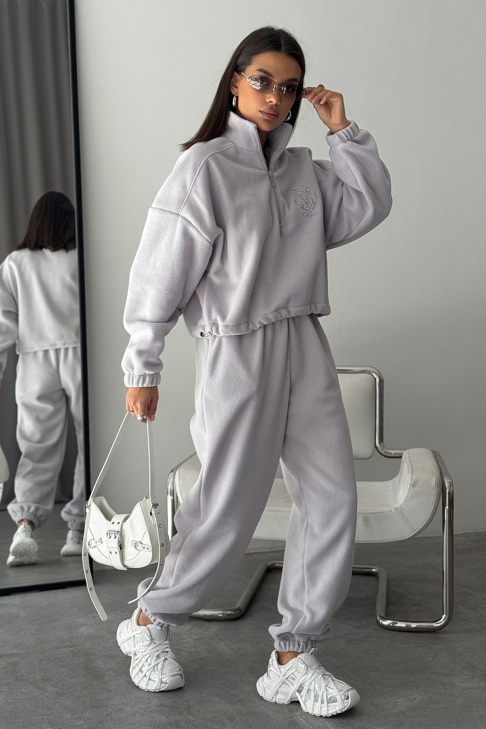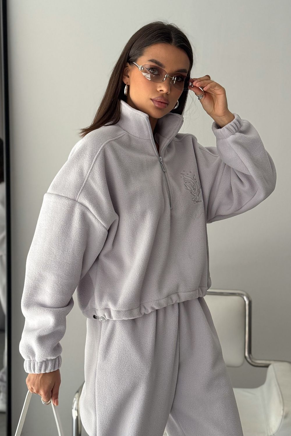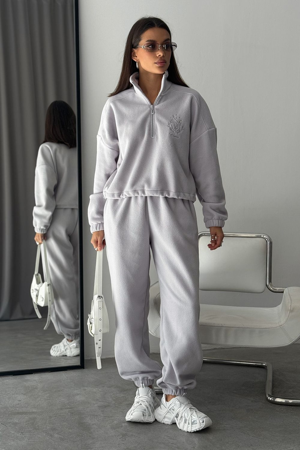Модный женский спортивный флисовый костюм Cosmos, который станет незаменимым элементом вашего гардероба в осенне-зимний период. Костюм женский брючный флисовый теплый на молнии это именно то, что вы искали. Стильный и мягкий зип комплект включает в себя удобную халф зип толстовку с V- образным вырезом и широкие брюки, идеально подходящие как для активных прогулок, так и для расслабленного отдыха дома. Костюм на флисе изготовлен из качественного материала и достаточно утепленный. Материал мягкий и теплый, обеспечивает максимальный комфорт. Оверсайз покрой скрывает недостатки, делая силуэт стройным!