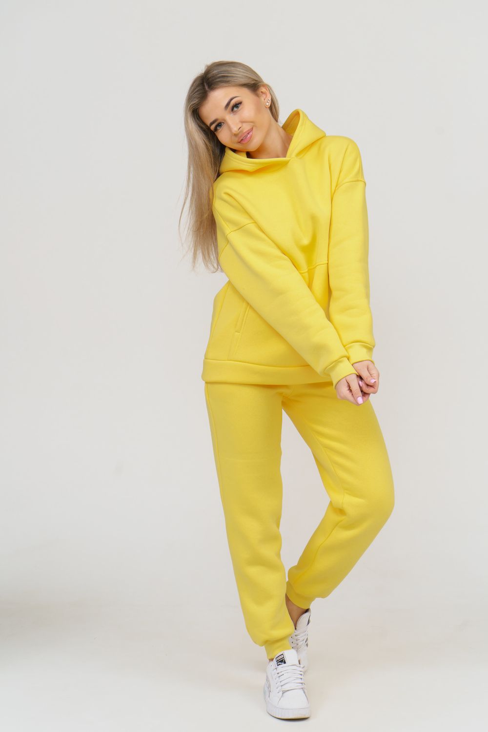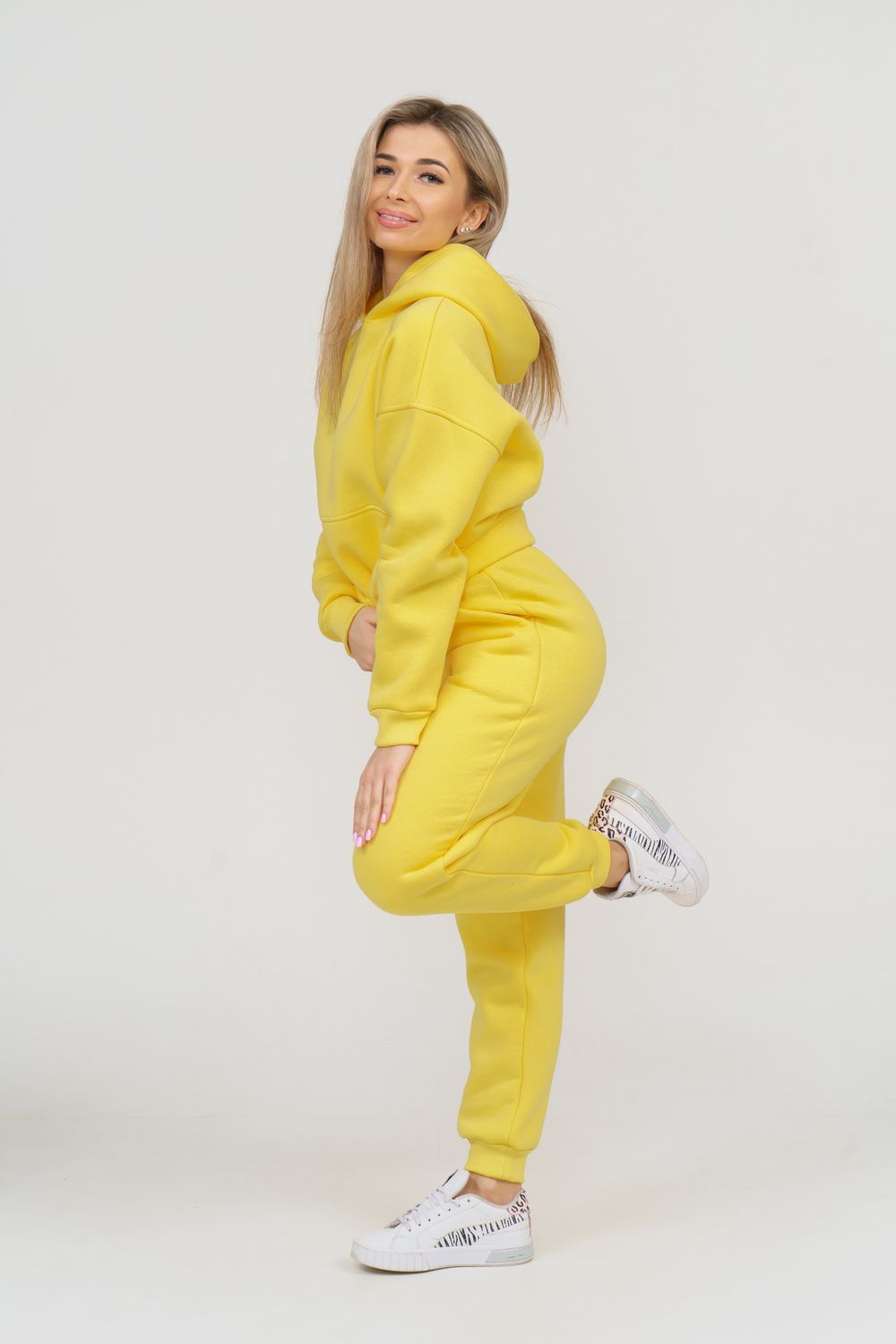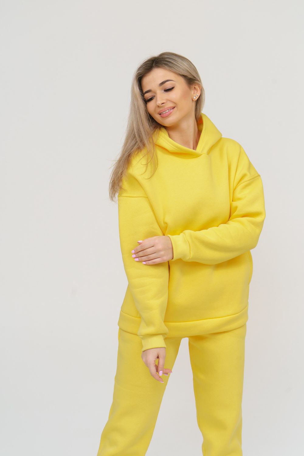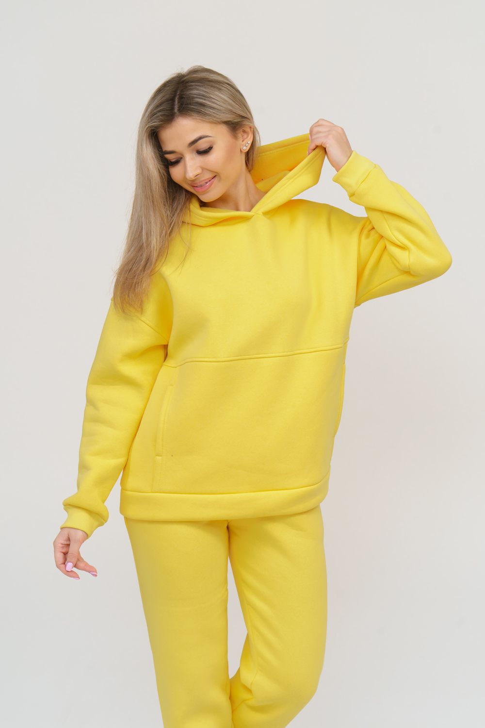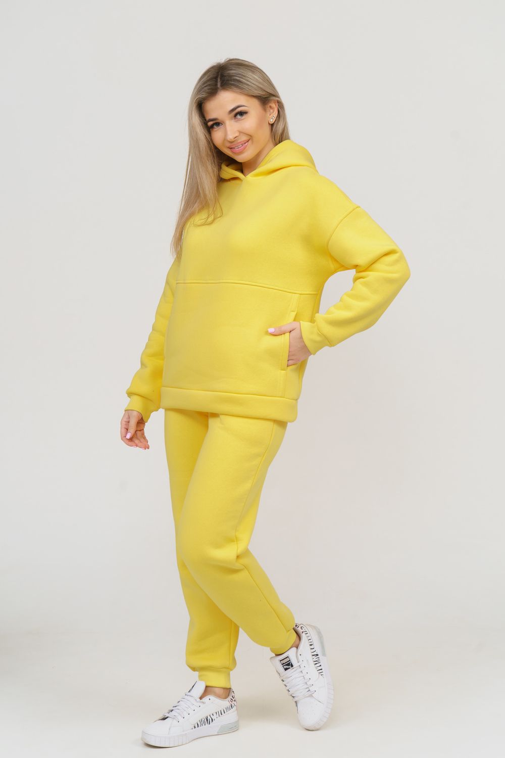 Женский костюм в стиле oversize - это излюбленный тренд современности. Данная модель выполнена из футера 3-х нитки с начёсом - это самый толстый, плотный и тёплый вид трикотажа в своей группе. Данный вид футера имеет множество достоинств: натуральный состав, теплорегуляция, гипоаллергенность, прочность, формоустойчивость (при правильном уходе и стирке 30 - 40 °С). Костюм состоит из объёмной толстовки с капюшоном на запах и брюк с боковыми карманами. На полочке толстовки есть модный и удобный накладной карман. Манжеты рукавов и брюк выполнены из качественного кашкорсе. Линия плеча спущена. Длина рукава указана от точки основания шеи. Пояс брюк выполнен на специализированной поясной машине. Внимание!!! При носке плотный начёс костюма приминается и может оставлять следы на одежде, это проходит после 1-2 стирки.