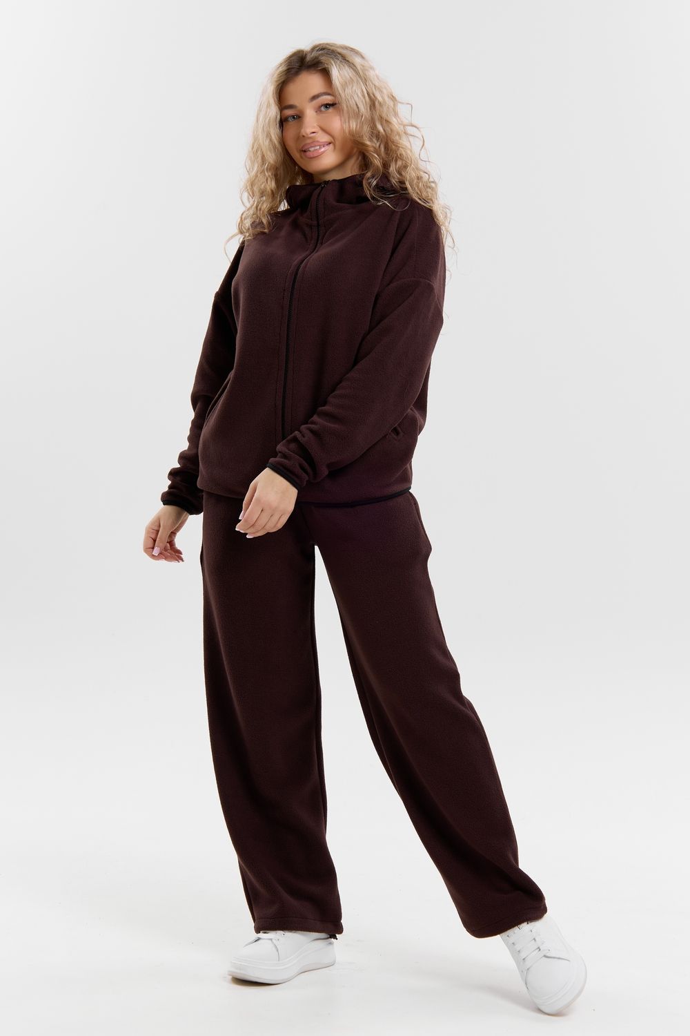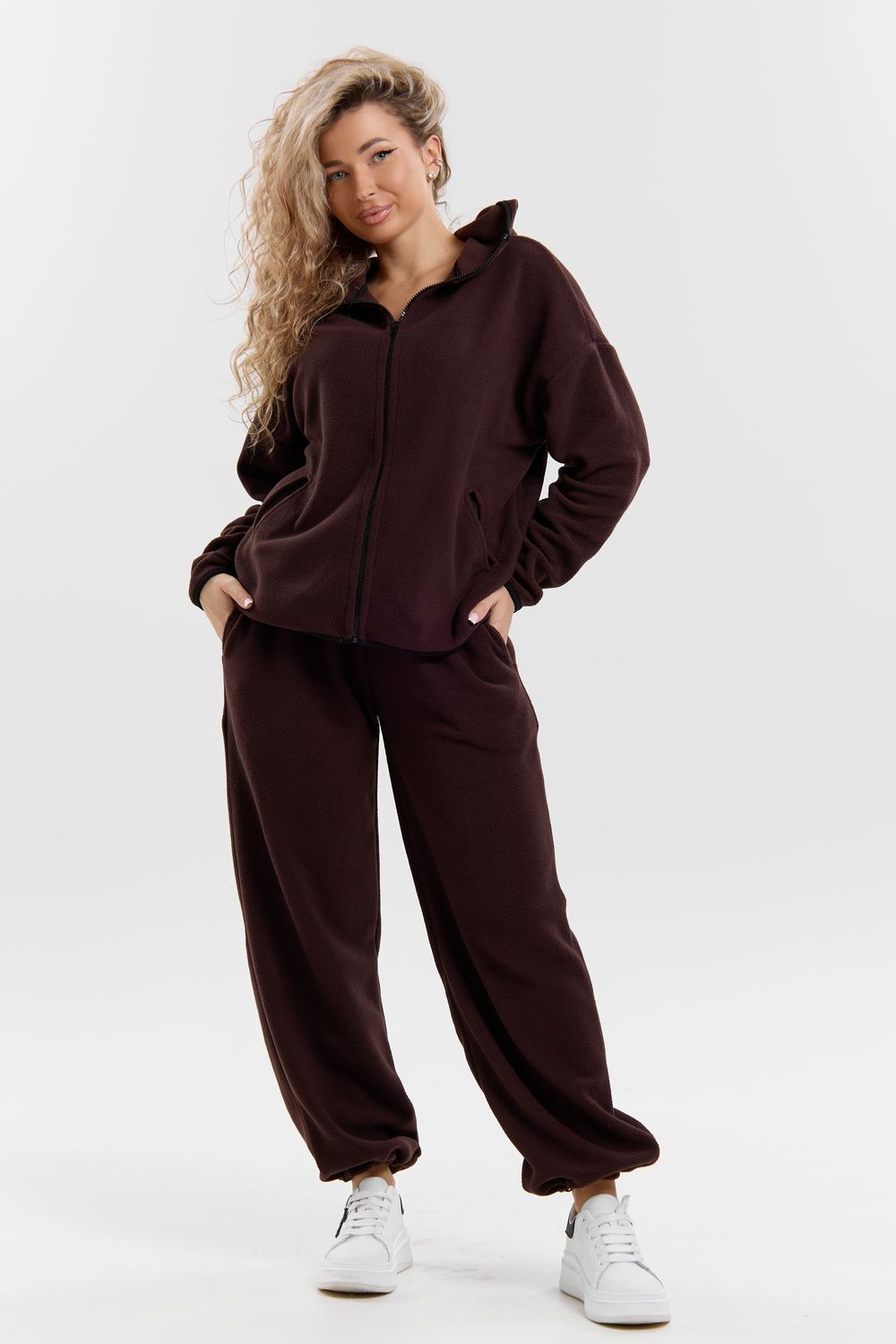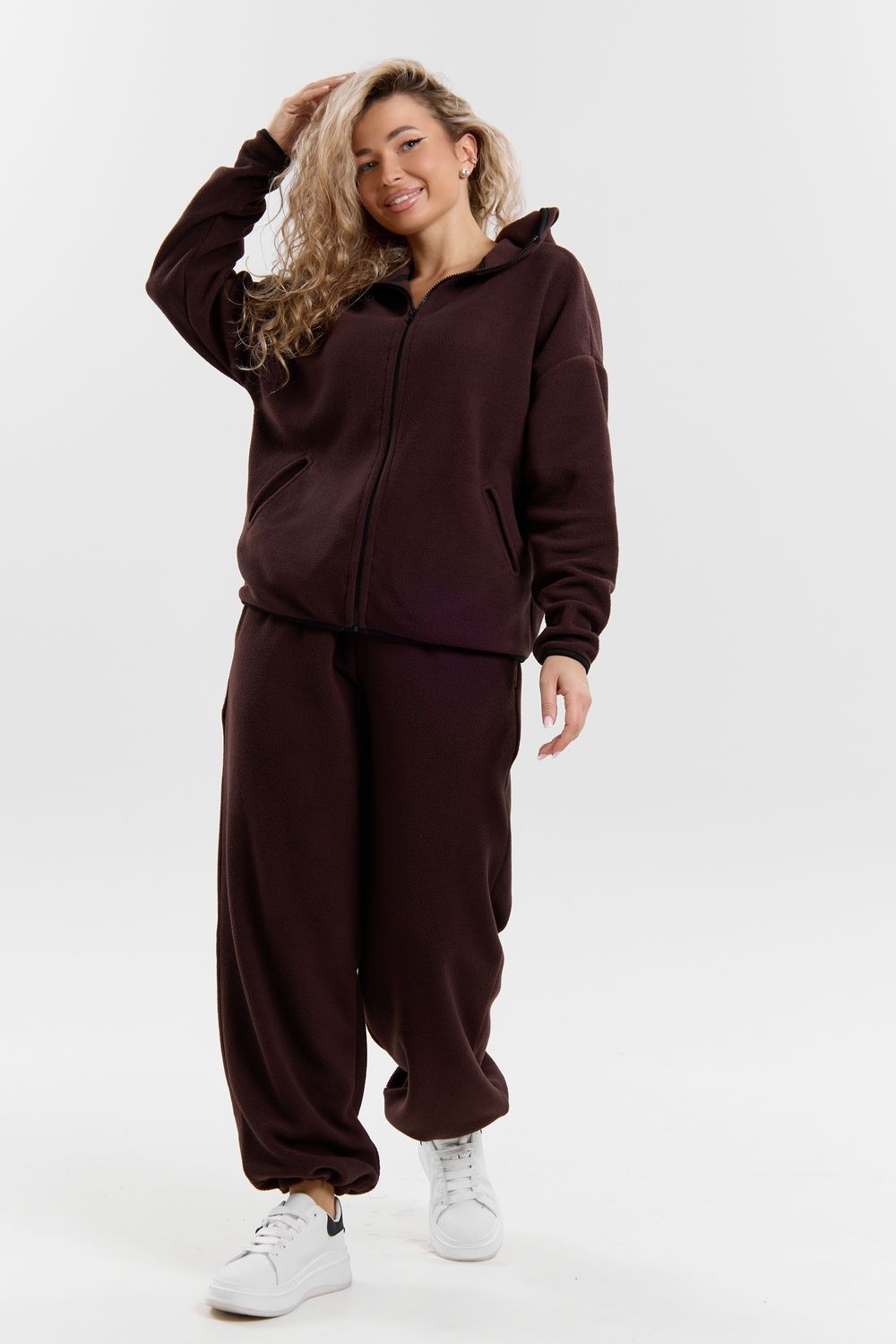 Флисовый костюм на молнии станет незаменимой вещью в вашем гардеробе. Костюм выполнен из плотной, мягкой ткани , что делает его очень теплым и приятным к телу. Благодаря высокому вороту, а также комфортному капюшону, надежно защитит ваше горло от прохлады в любое время года – будь то осень, весна, зима или прохладное лето. Качественная молния добавляет стильный акцент, а удобный замок обеспечивает легкое надевание и снятие. Резинка на поясе обеспечивает идеальную посадку и комфорт, брюки мягко облегают талию, не сдавливая и не сползая. Шнур на поясе добавляет не только стильный акцент, но и даёт возможность индивидуально регулировать посадку. Резинки на манжетах фиксируют брючины, затягивая с помощью фиксатора, создавая аккуратный новый образ. Такой крой визуально вытягивает ноги и придаёт образу собранность. Свободный фасон багги гарантирует свободу движений и комфорт в течение всего дня. Прорезные боковые карманы - незаменимый элемент для удобства. Они не выпирают, не утяжеляют силуэт и в то же время добавляют практичности. В них можно удобно разместить разные мелочи- это маленькая деталь, которая делает модель ещё более функциональной. Флисовый костюм помогает создавать стильные образы. Его универсальный крой позволяет использовать его как повседневную одежду для прогулок, так и для дома. Модный фасон подойдет для женщин любого телосложения. Костюм представлен без яркого принта и рисунка, что делает его универсальной базой. Забудьте о зимних холодах – костюм подарит уют. Наш костюм с удобными большими прорезными карманами станет вашим спутником в создании спортивных или расслабленных аутфитов. Костюм на молнии с высоким воротником и капюшоном подойдут для создания модных образов в стиле кэжуал, спорт и спортшик. Используйте его как костюм для активного отдыха или как базовый лук на каждый день. Настоящий тренд сезона, который идеально впишется в ваш образ в любое время. Почувствуйте себя уютно в нашем плюшевом и стильном костюме. Ориентируясь по таблице замеров, обратите внимание, что замеры длины рукава проводились от точки основания шеи.