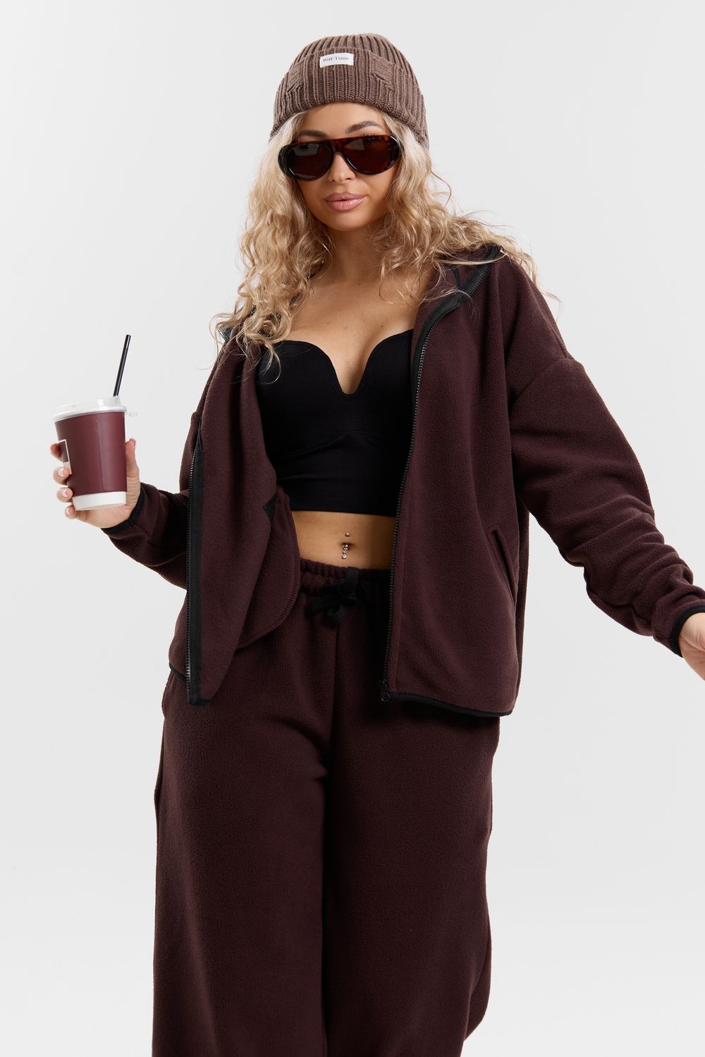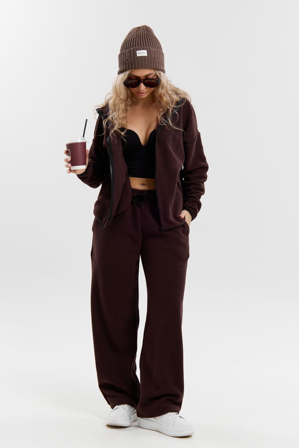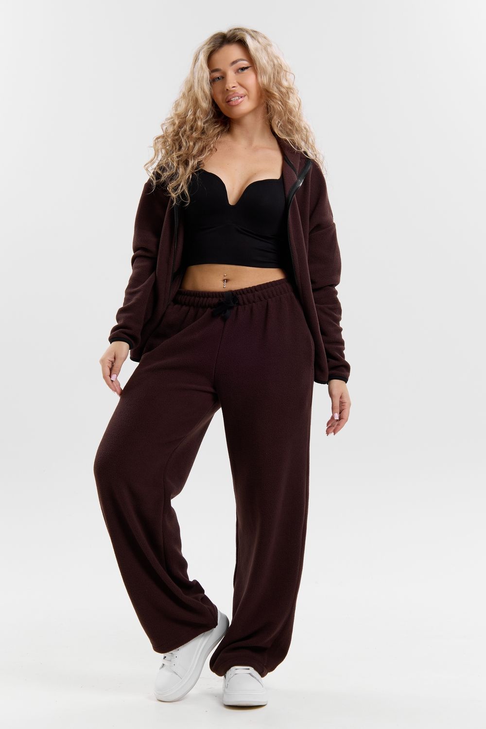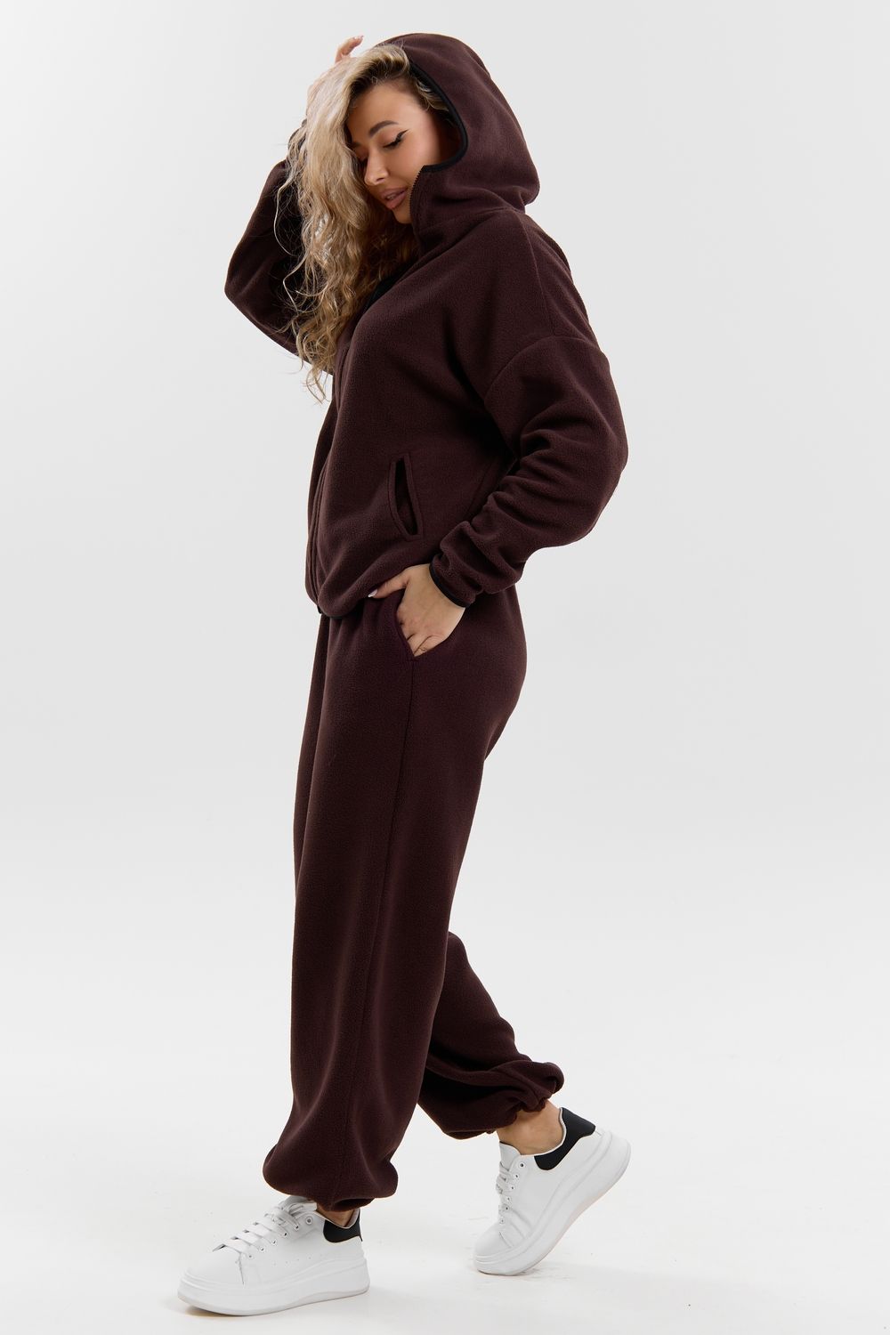 Флисовый костюм на молнии станет незаменимой вещью в вашем гардеробе. Костюм выполнен из плотной, мягкой ткани , что делает его очень теплым и приятным к телу. Благодаря высокому вороту, а также комфортному капюшону, надежно защитит ваше горло от прохлады в любое время года – будь то осень, весна, зима или прохладное лето. Качественная молния добавляет стильный акцент, а удобный замок обеспечивает легкое надевание и снятие. Резинка на поясе обеспечивает идеальную посадку и комфорт, брюки мягко облегают талию, не сдавливая и не сползая. Шнур на поясе добавляет не только стильный акцент, но и даёт возможность индивидуально регулировать посадку. Резинки на манжетах фиксируют брючины, затягивая с помощью фиксатора, создавая аккуратный новый образ. Такой крой визуально вытягивает ноги и придаёт образу собранность. Свободный фасон багги гарантирует свободу движений и комфорт в течение всего дня. Прорезные боковые карманы - незаменимый элемент для удобства. Они не выпирают, не утяжеляют силуэт и в то же время добавляют практичности. В них можно удобно разместить разные мелочи- это маленькая деталь, которая делает модель ещё более функциональной. Флисовый костюм помогает создавать стильные образы. Его универсальный крой позволяет использовать его как повседневную одежду для прогулок, так и для дома. Модный фасон подойдет для женщин любого телосложения. Костюм представлен без яркого принта и рисунка, что делает его универсальной базой. Забудьте о зимних холодах – костюм подарит уют. Наш костюм с удобными большими прорезными карманами станет вашим спутником в создании спортивных или расслабленных аутфитов. Костюм на молнии с высоким воротником и капюшоном подойдут для создания модных образов в стиле кэжуал, спорт и спортшик. Используйте его как костюм для активного отдыха или как базовый лук на каждый день. Настоящий тренд сезона, который идеально впишется в ваш образ в любое время. Почувствуйте себя уютно в нашем плюшевом и стильном костюме. Ориентируясь по таблице замеров, обратите внимание, что замеры длины рукава проводились от точки основания шеи.