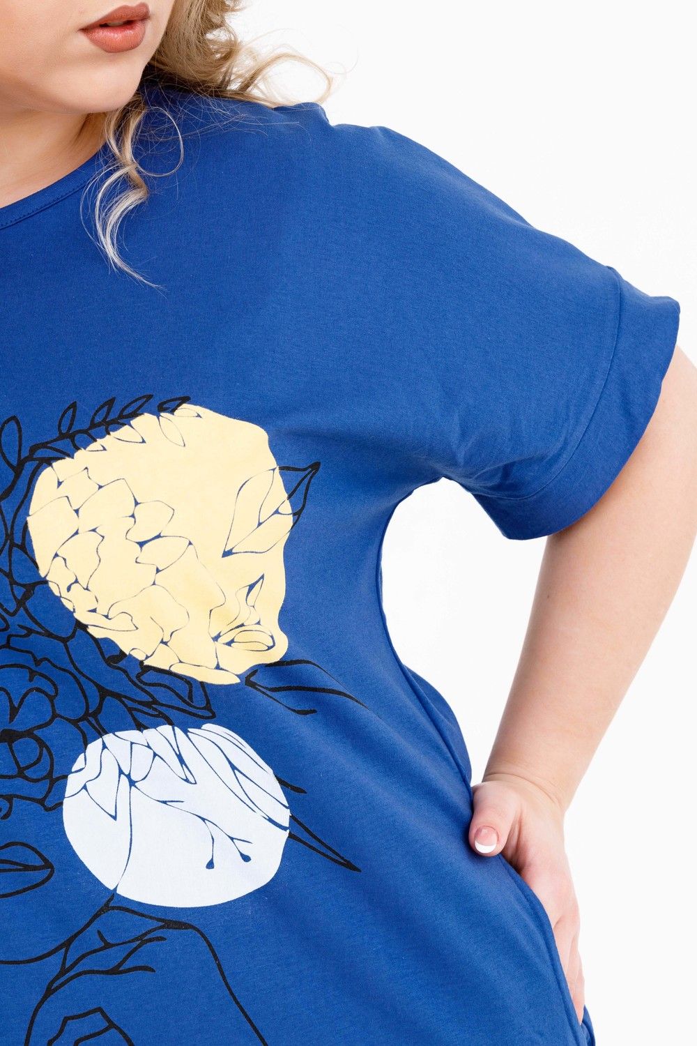 Хлопковый костюм с бриджами от бренда MODALINA состоит из: туники полуприлегающего силуэта с коротким рукавом и прорезными карманами, длина футболки - ниже бедер, горловина округлой формы, с ненавязчивым принтом. Бриджи классической длины с прорезными карманами, с широкой резинкой, которая не передавливает животик.