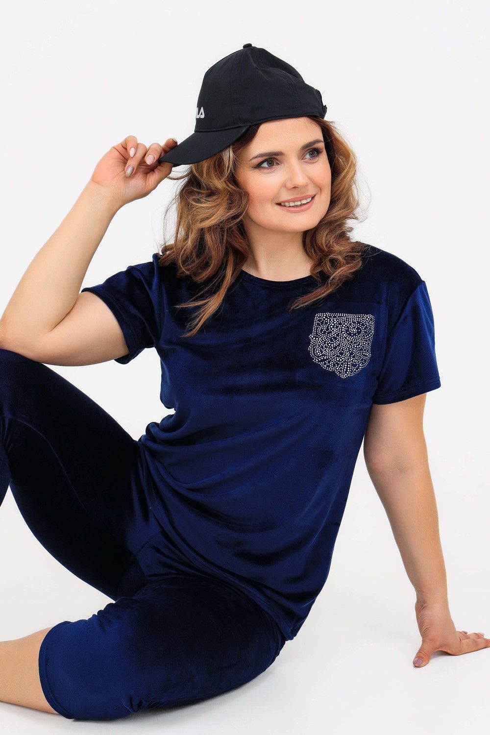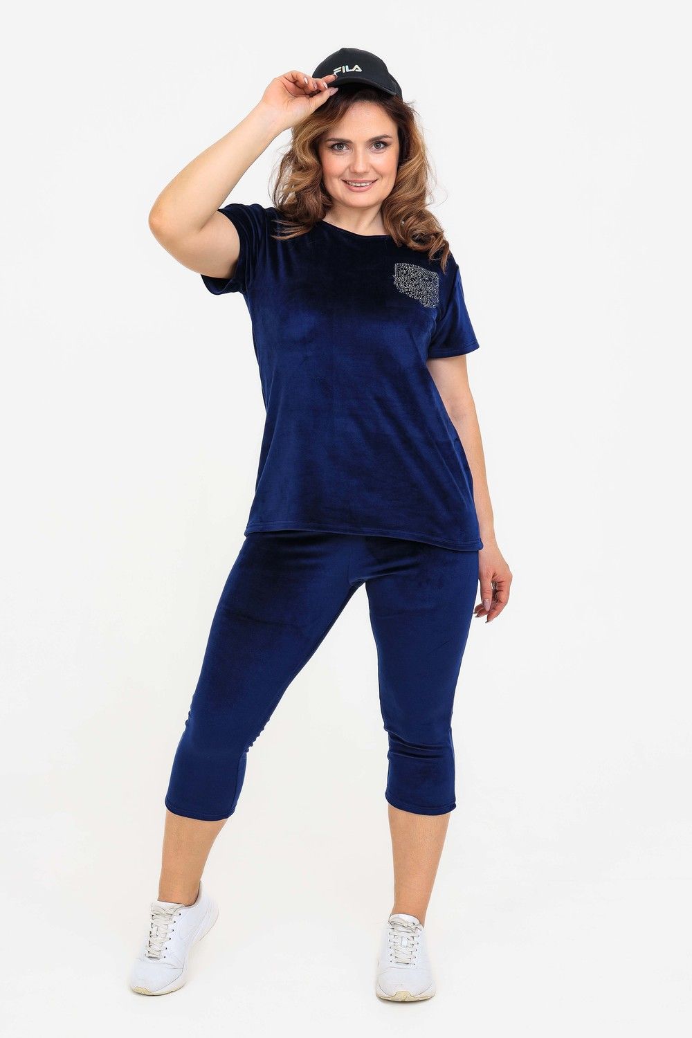 Костюм женский из велюра. В комплект входят:- футболка с коротким рукавом с округлым вырезом горловины и леггинсы. Мягкий трикотажный комплект для женщин Российского производства. Стильный костюм из стрейч - велюра для женщин представлен в широкой размерной сетке: от маленького 42 размера до 52 размера. Удобный домашний велюровый комплект не сковывает движений, что делает его универсальной одеждой, которая подойдет на любую фигуру как для худеньких, стройных, так и для пышных девушек и женщин. Костюм двойка женский подходит на любой рост: для высоких и для невысоких. Однотонный костюм с шортами выполнен в спокойных и практичных темных тонах. Бархатный комплект из трикотажной ткани не сковывает движения, скрывает недостатки и подчеркивает достоинства фигуры. Костюм из велюра не мнется, не дает усадку после стирок, не теряет цвет, сохраняет форму и внешний вид. Молодежный комплект подходит для девочек, подростков, молодых женщин, а также для женщин любого возраста, желающих модно выглядеть в домашней обстановке. Легкий летний спортивный костюм позволяет коже дышать за счет хорошей воздухопроницаемости, а гипоаллергенная ткань высокого качества долго не потеряет своих характеристик. Леггинсы и футболку по Вашему желанию по отдельности можно комбинировать с другими предметами одежды. Костюм отлично зарекомендовал себя в эксплуатации, он будет долго радовать Вас при условии соблюдения рекомендаций по уходу за изделием. Размер на модели 48, параметры 105-86-98/169.