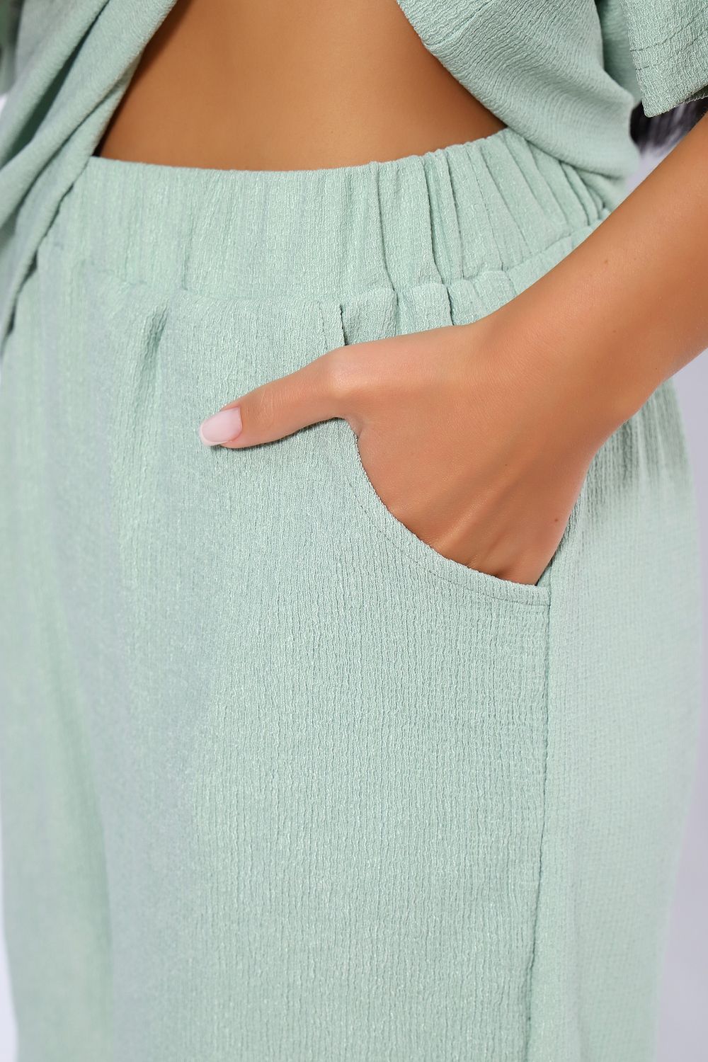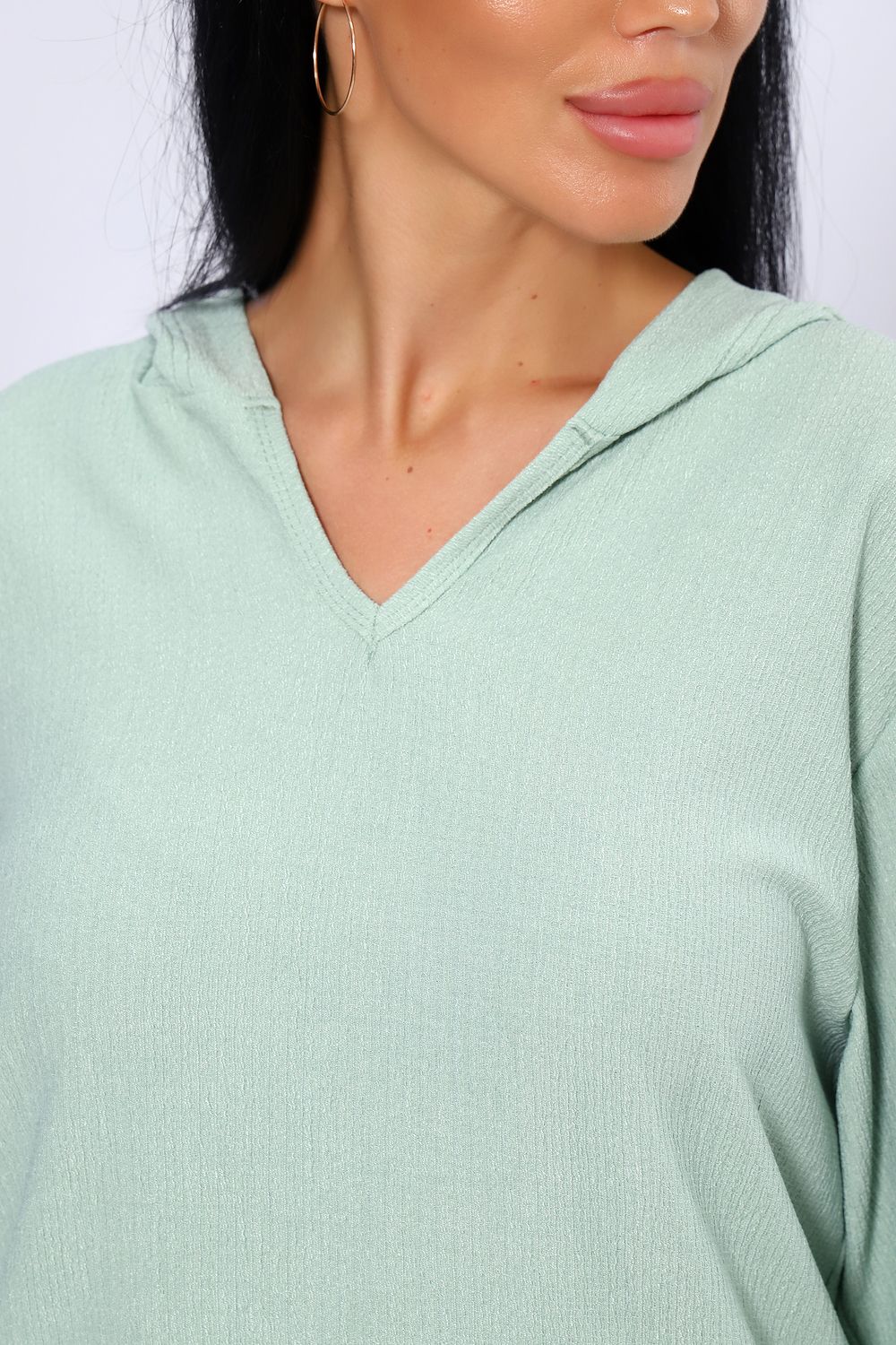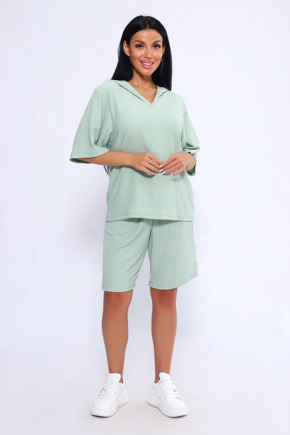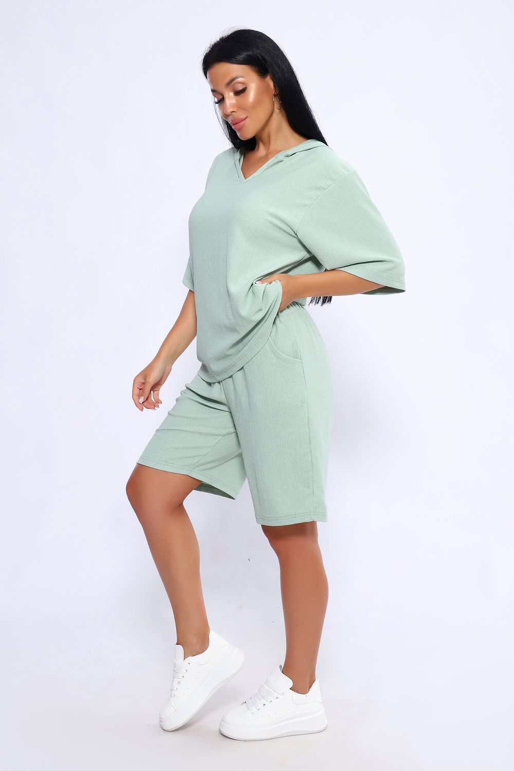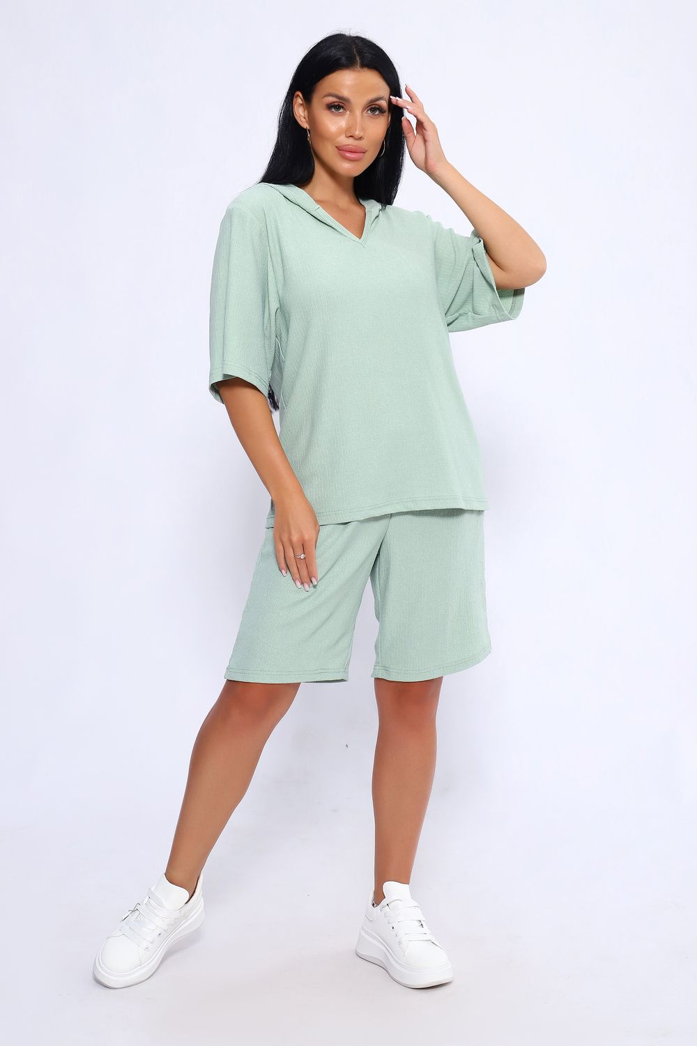 Женский летний костюм из интересного легкого, жатого материла в пастельных тонах. Ткань износостойкая, с приятными тактильными свойствами. Комплект состоит из кофты свободного кроя с капюшоном и шорт на эластичной резинке шириной 3 см., в боковых швах расположены карманы, длина шорт чуть выше колена. Комплект подходит как для отдыха дома, так и более активного времяпрепровождения как на природе, так и в городе. В нем будет очень удобно находиться и выполнять привычные для вас действия. По спинке кофты может быть шов. На фото модель представлена в 48 размере.