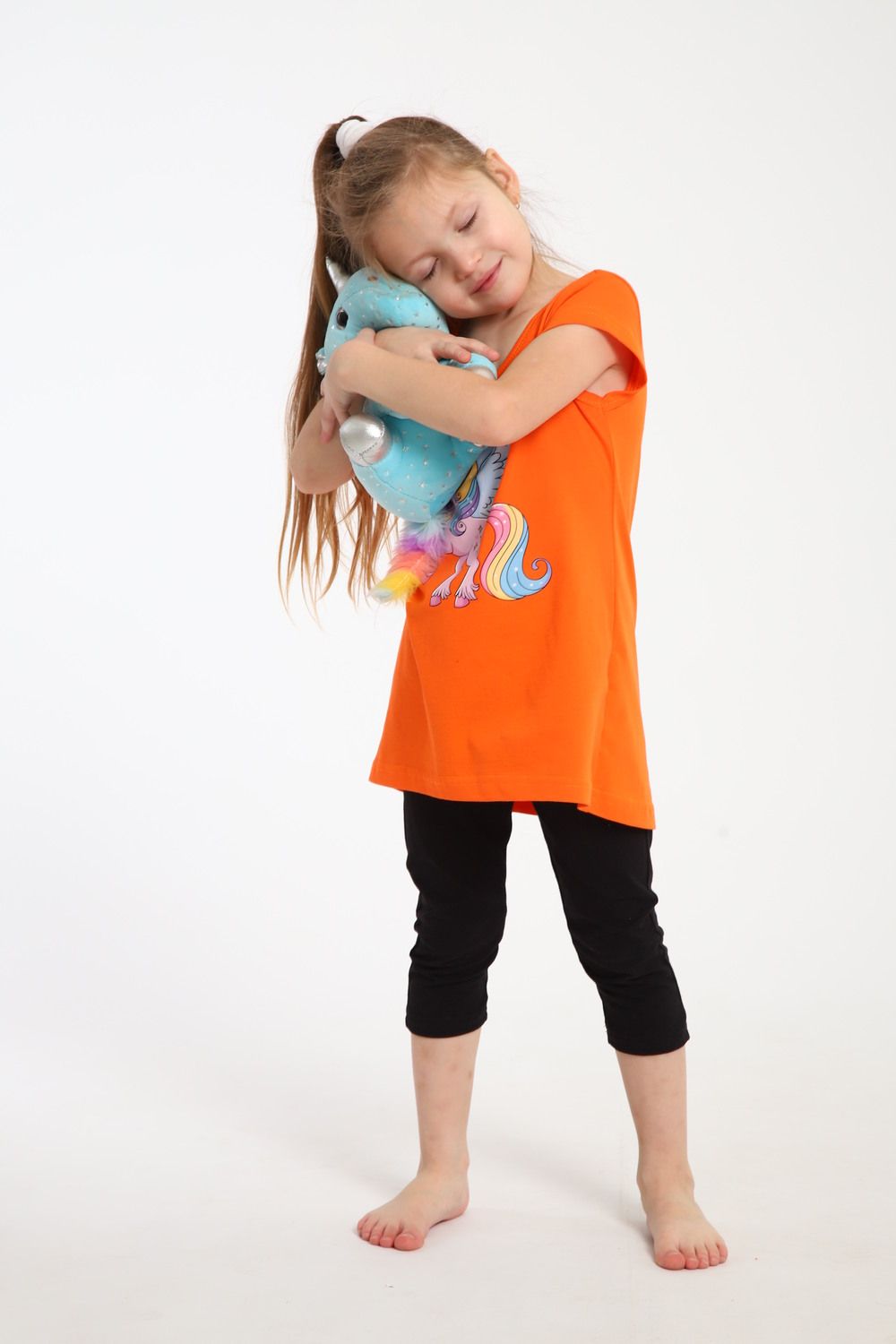 Яркий костюм для маленьких принцесс собран из туники с радужным единорогом и тресс на эластичной резинке шириной 2 см. на талии. Комплект из 100% хлопка, самый удачный вариант для активного ребенка. Туника А - образного силуэта с коротким рукавом и качественной термопечатью по переду. Горловина круглая и достаточно широкая, что позволит ребенку самому без труда надеть и снять тунику через голову. Достаточно разнообразный цветовой ряд, даст возможность выбрать вам костюм по душе. На фото модель представлена в 32-ом размере.