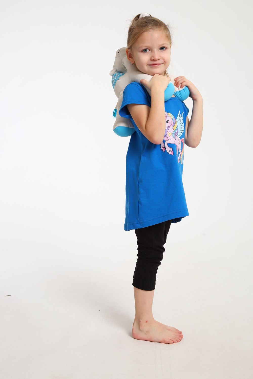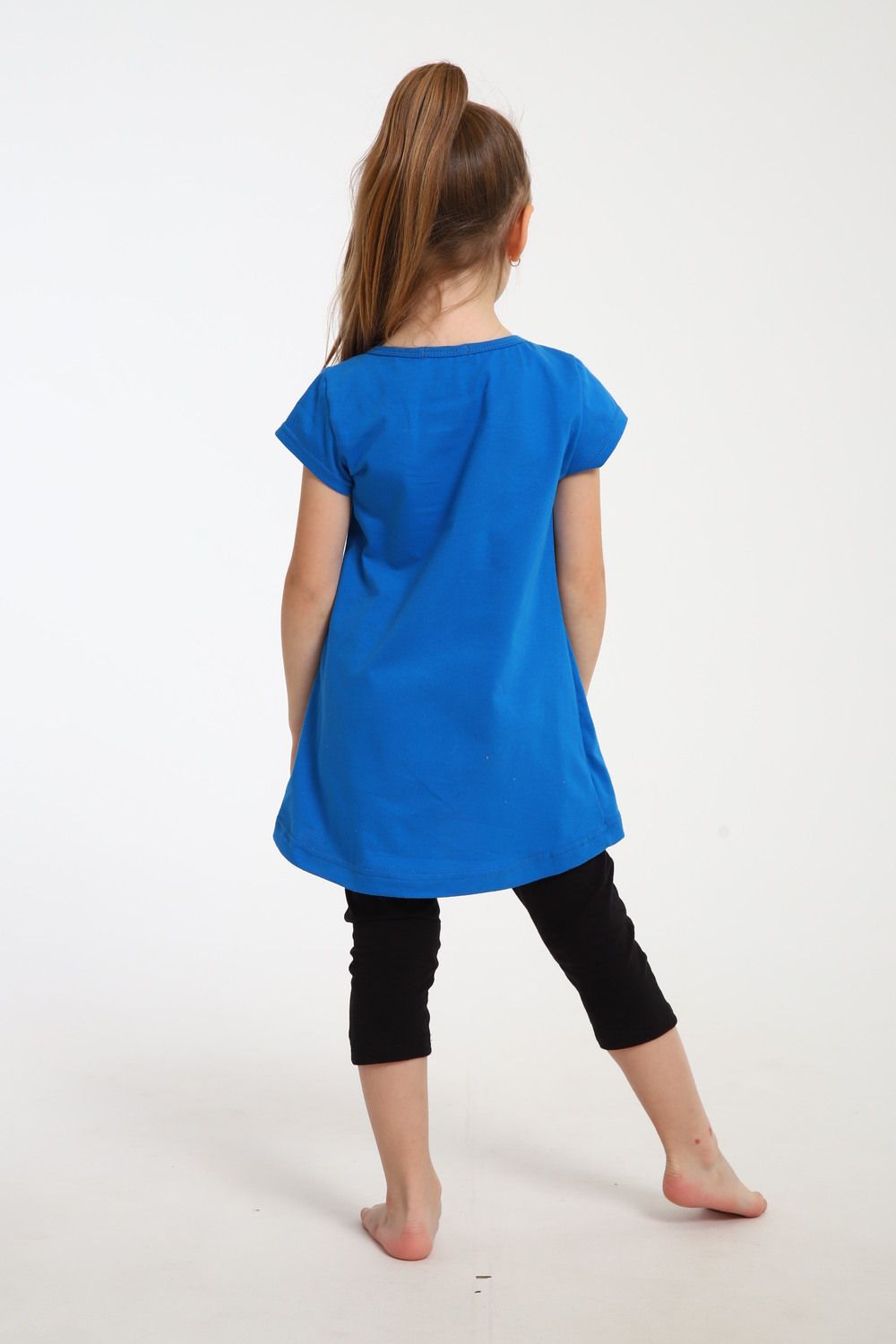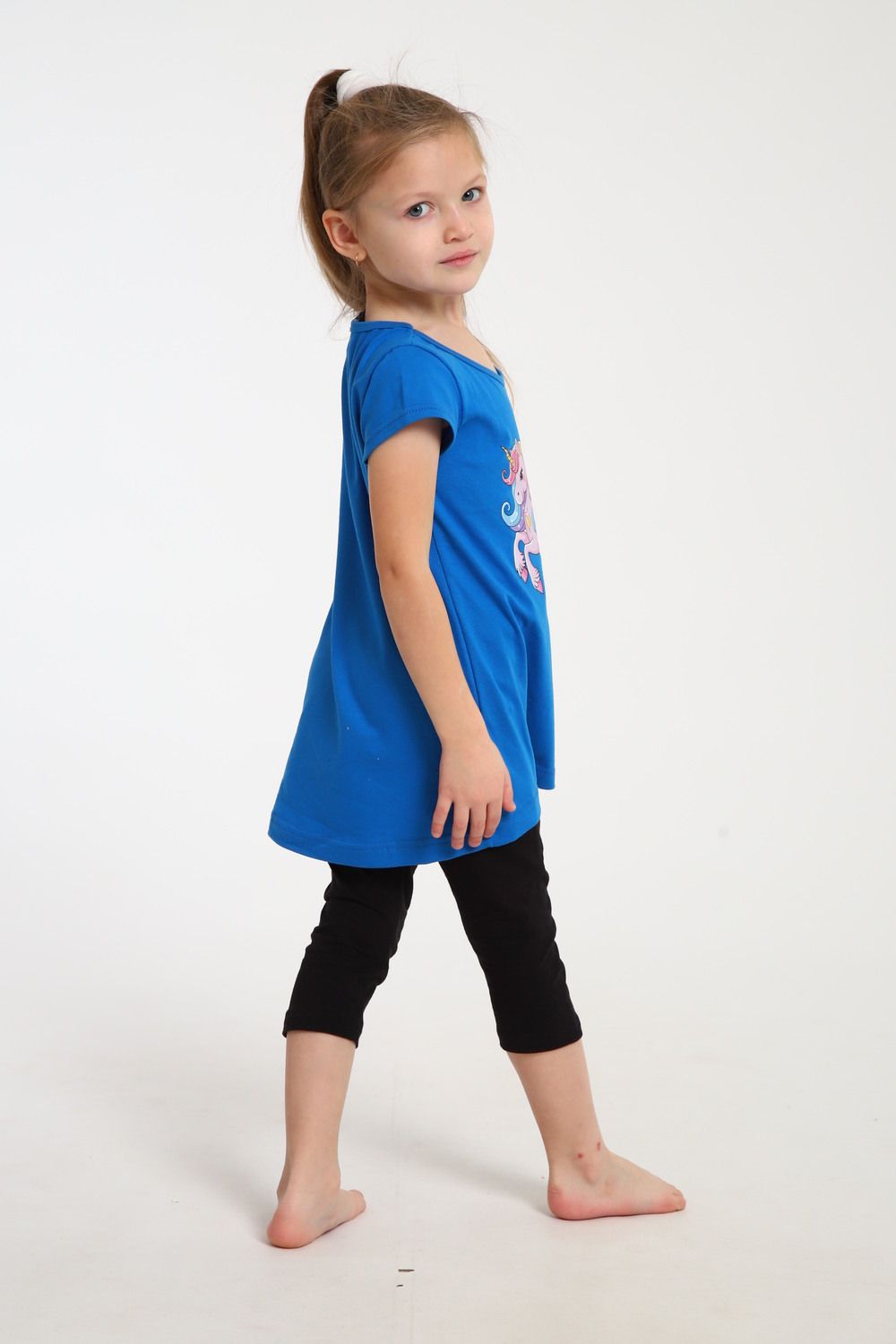 Яркий костюм для маленьких принцесс собран из туники с радужным единорогом и тресс на эластичной резинке шириной 2 см. на талии. Комплект из 100% хлопка, самый удачный вариант для активного ребенка. Туника А - образного силуэта с коротким рукавом и качественной термопечатью по переду. Горловина круглая и достаточно широкая, что позволит ребенку самому без труда надеть и снять тунику через голову. Достаточно разнообразный цветовой ряд, даст возможность выбрать вам костюм по душе. На фото модель представлена в 32-ом размере.