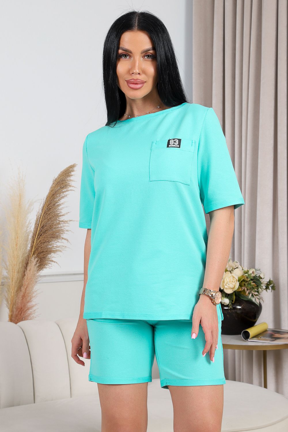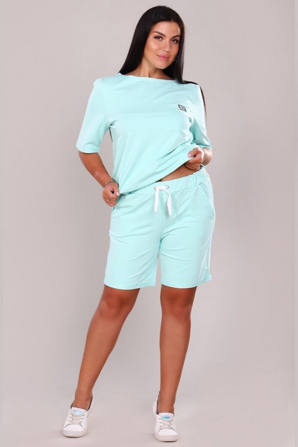 Женский костюм состоит из футболки и шорт, выполнен из мягкого и приятного на ощупь материала футер 2-х нитка. В состав входят 70% хлопка, 24% полиэстера и 6% эластана, что обеспечивает комфорт и хорошую посадку. Футболка украшена нагрудным карманом со стильной нашивкой "Brooklyn 83", что добавляет оригинальности и лаконичности образу. Шорты имеют удобные карманы, что делает этот комплект практичным и подходящим для повседневной носки, активного отдыха или просто для домашнего уюта. Такой костюм отлично подойдет для удобного и стильного образа в теплую погоду. * Допускается незначительное отличие оттенка.