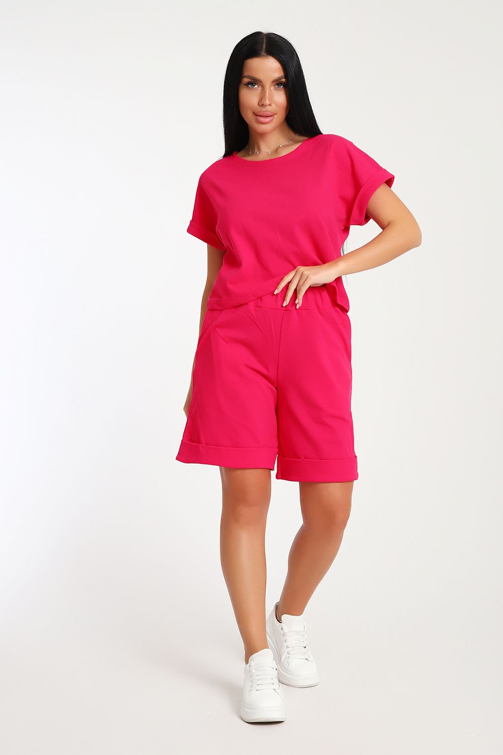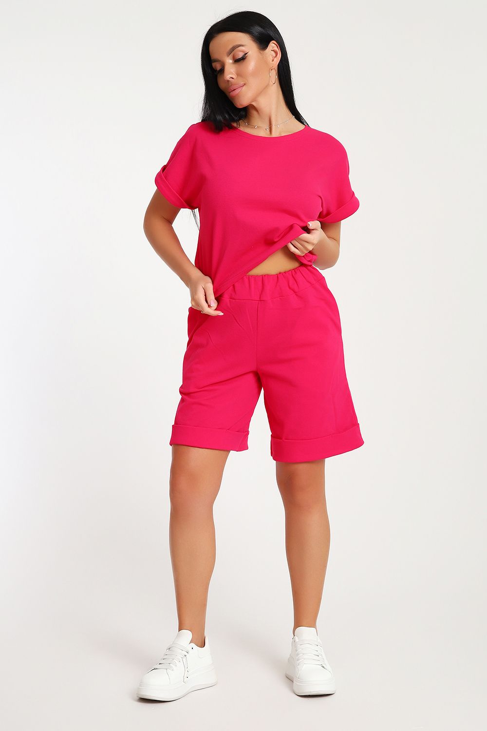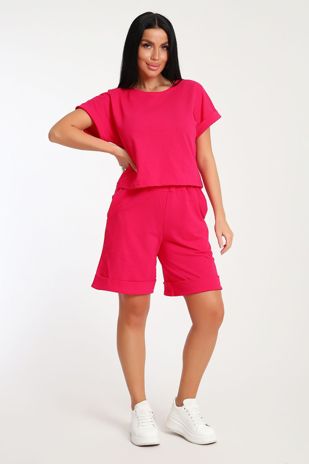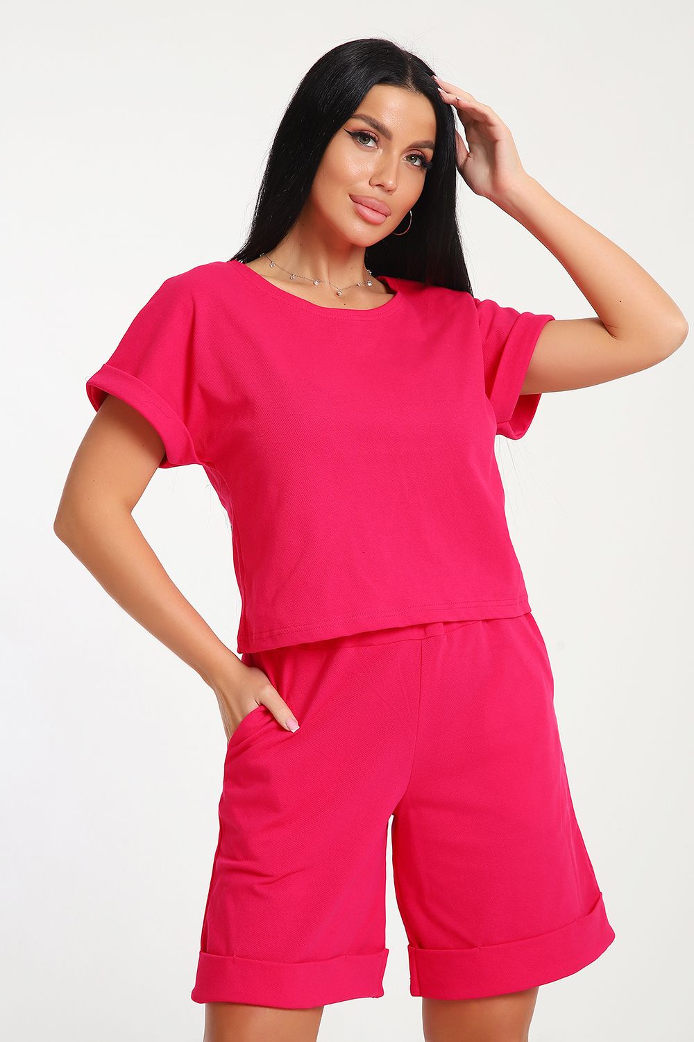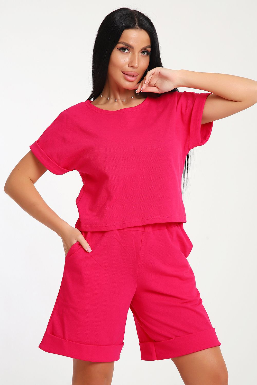 Костюм с шортами бермудами прекрасный вариант для комфортного время препровождения летом на прогулке, на даче, на море. Укороченная футболка свободно садится по фигуре, визуально стройнит, в сочетании с удлиненными шортами создает стильный, романтичный образ. Шорты с глубокими карманами в боковых швах подойдут для активного образа жизни, занятий спортом. Костюм с шортами можно носить в качестве домашней одежды.