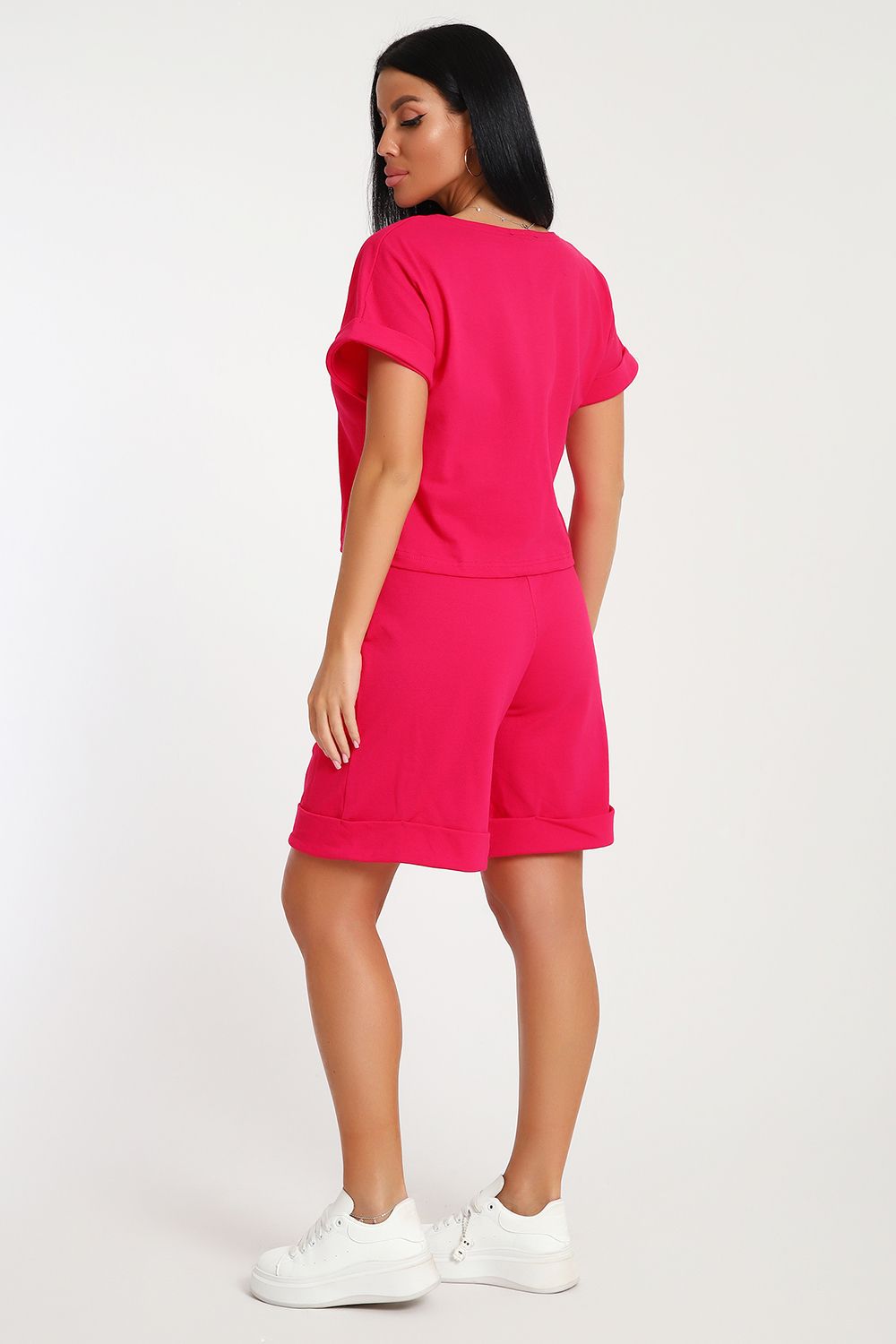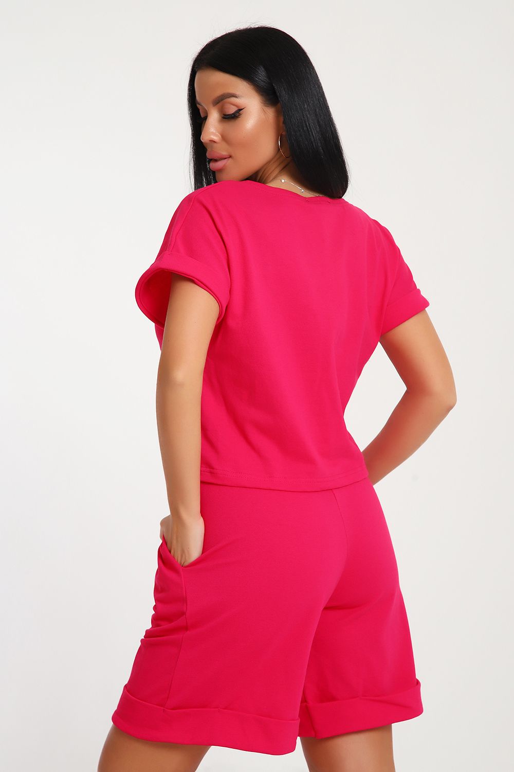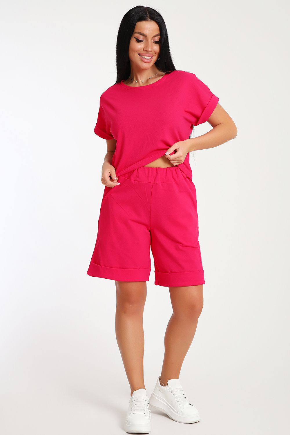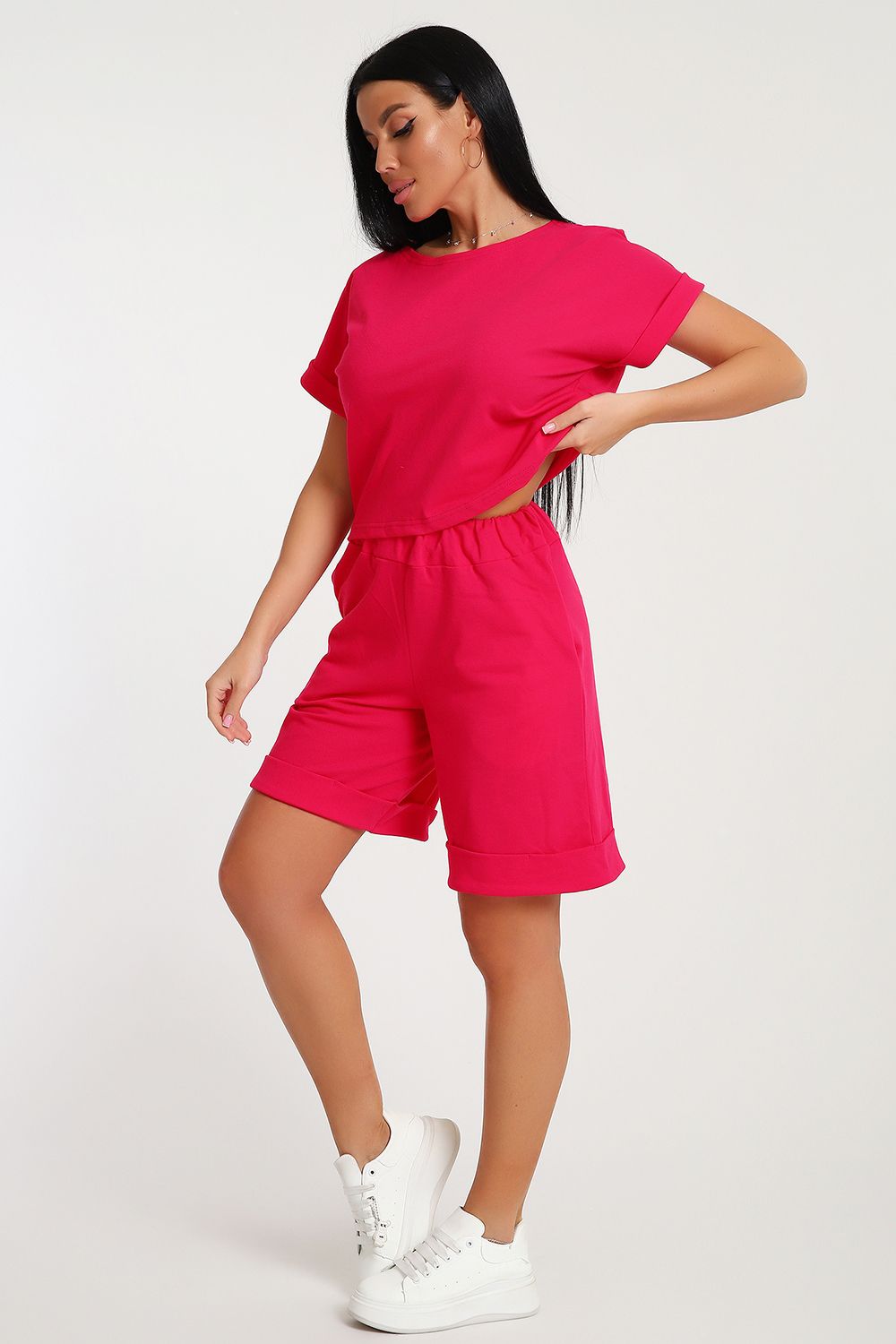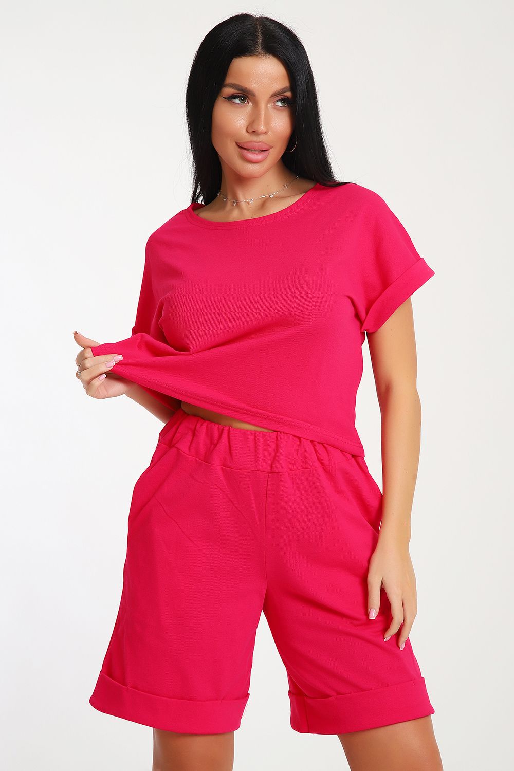 Костюм с шортами бермудами прекрасный вариант для комфортного время препровождения летом на прогулке, на даче, на море. Укороченная футболка свободно садится по фигуре, визуально стройнит, в сочетании с удлиненными шортами создает стильный, романтичный образ. Шорты с глубокими карманами в боковых швах подойдут для активного образа жизни, занятий спортом. Костюм с шортами можно носить в качестве домашней одежды.