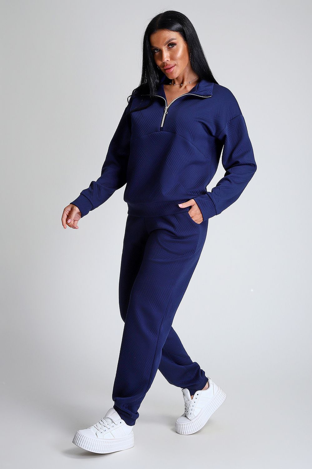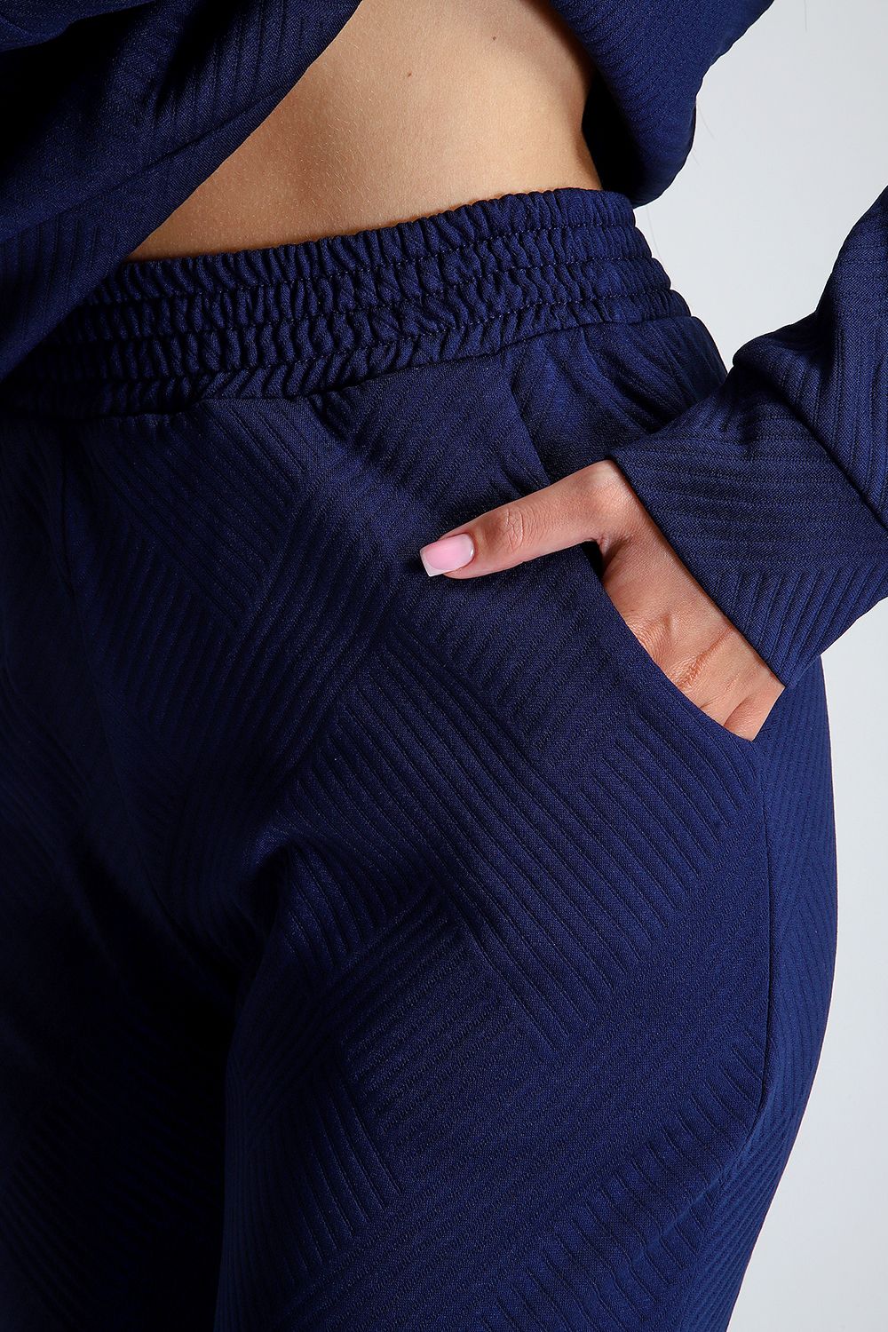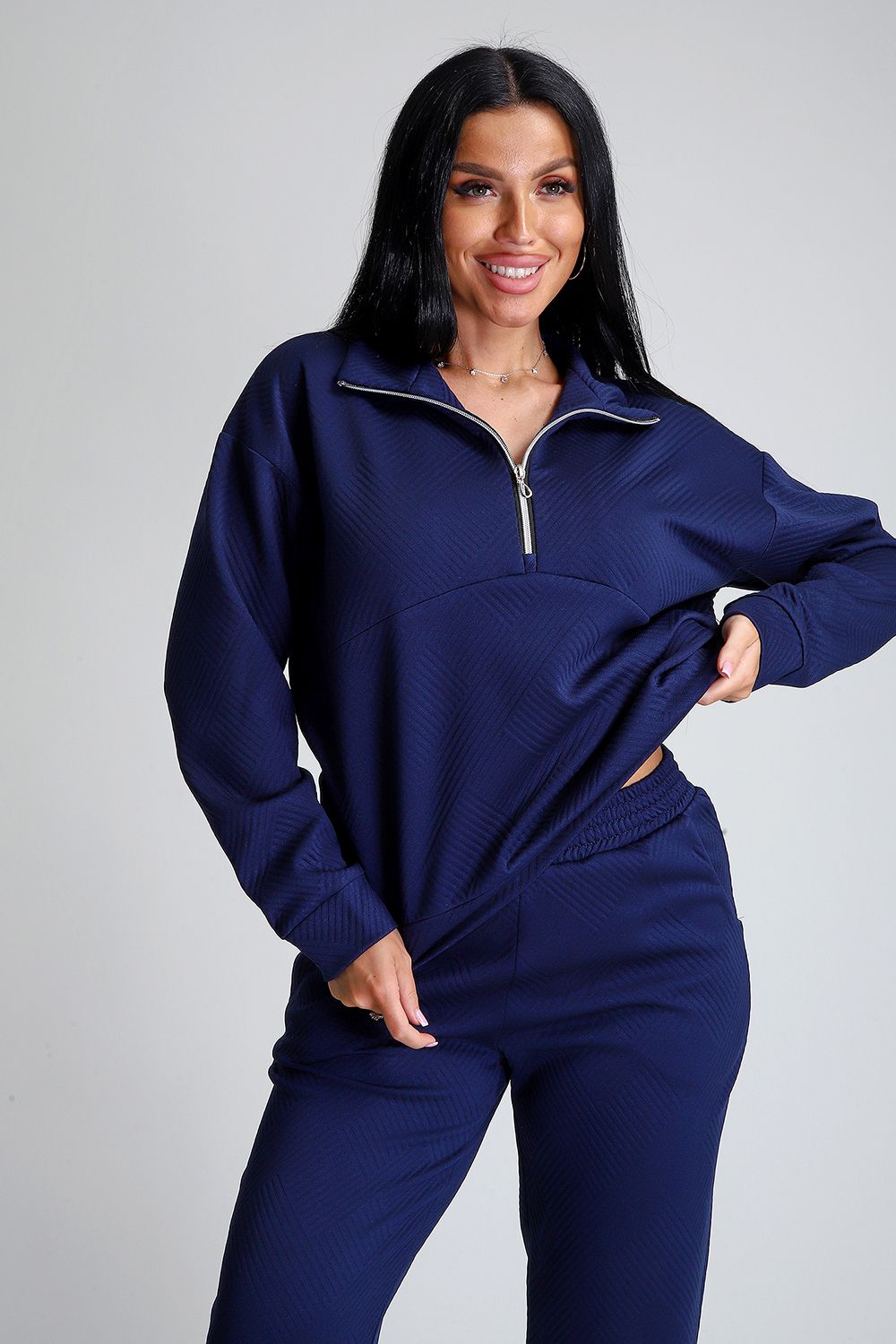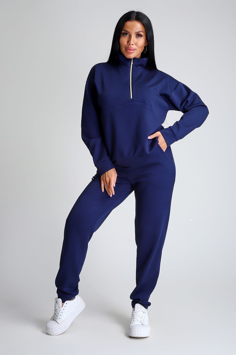 Спортивный женский костюм двойка - это элегантное и практичное решение для тех, кто ценит удобство, свободу движений и современный модный стиль. Костюм для активных девушек, взрослых женщин и подростков состоит из толстовки и брюк джоггеров. Выполнен костюм из приятного к телу эластичного трикотажа с геметрически рельефной структурой. Модная толстовка свободного кроя, воротник-стойка застегивается на молнию, спущенный рукав обеспечивает свободу движения. Брюки прямого кроя с боковыми карманами, удобный пояс на резинке выполнен на спецмашине, по низу брюк притачные манжеты. Повседневный трендовый костюм подходит для любой фигуры, подчеркивая ваши достоинства, будет идеален на отдыхе, прогулке и на спортивных тренировках. В замерах брюк обхват талии соответствует длине резинки в растянутом виде.