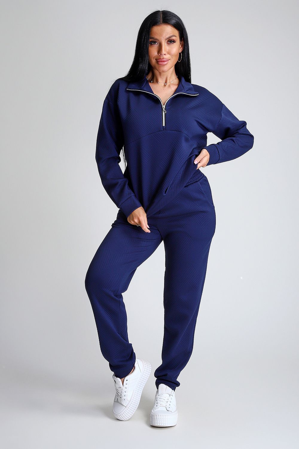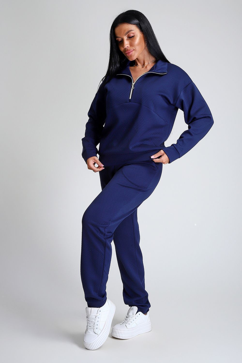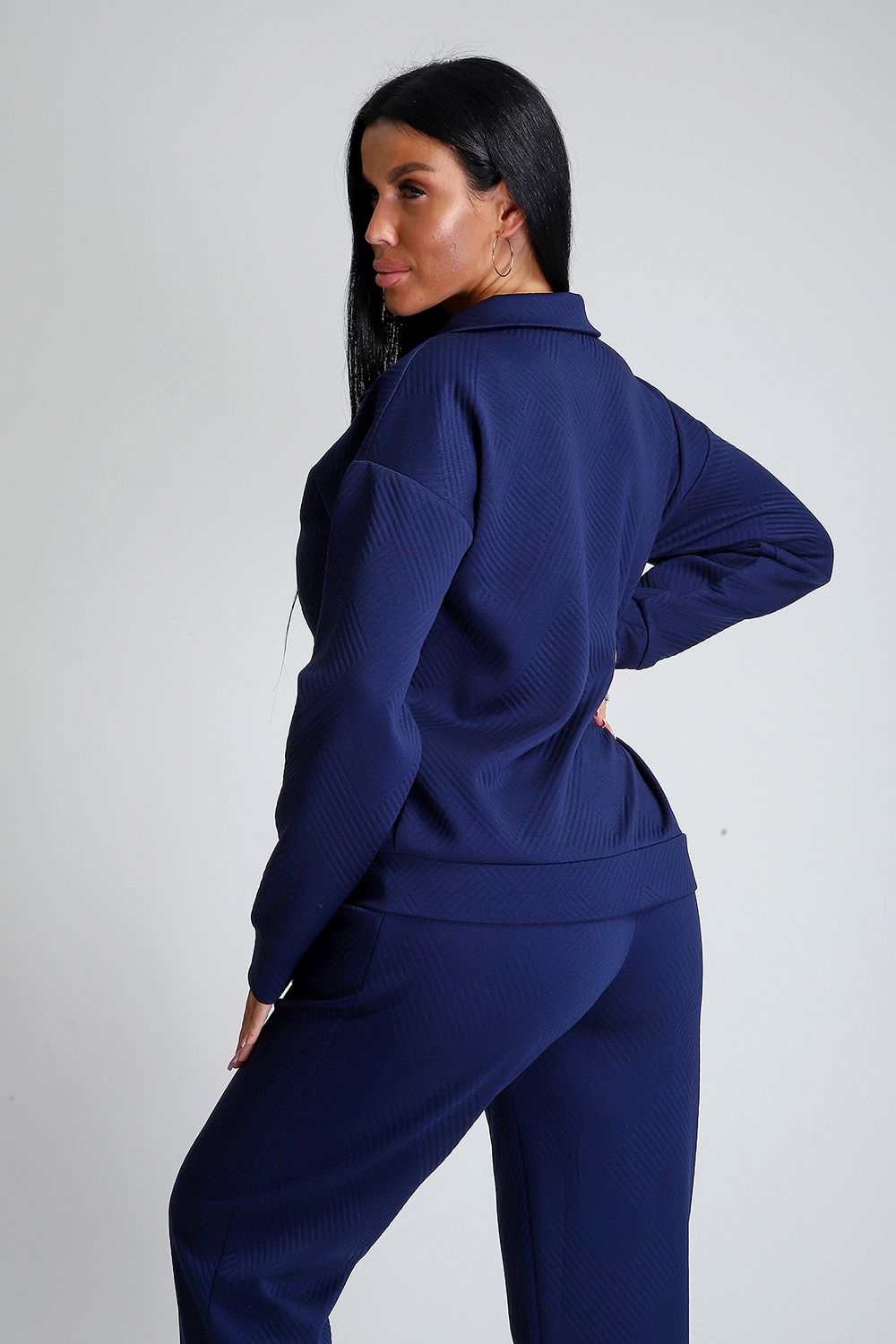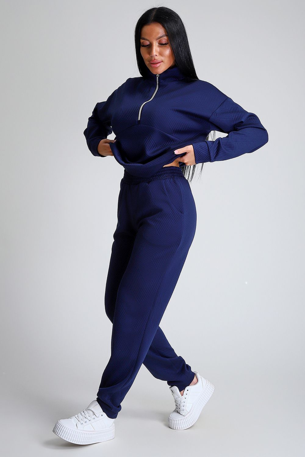 Спортивный женский костюм двойка - это элегантное и практичное решение для тех, кто ценит удобство, свободу движений и современный модный стиль. Костюм для активных девушек, взрослых женщин и подростков состоит из толстовки и брюк джоггеров. Выполнен костюм из приятного к телу эластичного трикотажа с геметрически рельефной структурой. Модная толстовка свободного кроя, воротник-стойка застегивается на молнию, спущенный рукав обеспечивает свободу движения. Брюки прямого кроя с боковыми карманами, удобный пояс на резинке выполнен на спецмашине, по низу брюк притачные манжеты. Повседневный трендовый костюм подходит для любой фигуры, подчеркивая ваши достоинства, будет идеален на отдыхе, прогулке и на спортивных тренировках. В замерах брюк обхват талии соответствует длине резинки в растянутом виде.