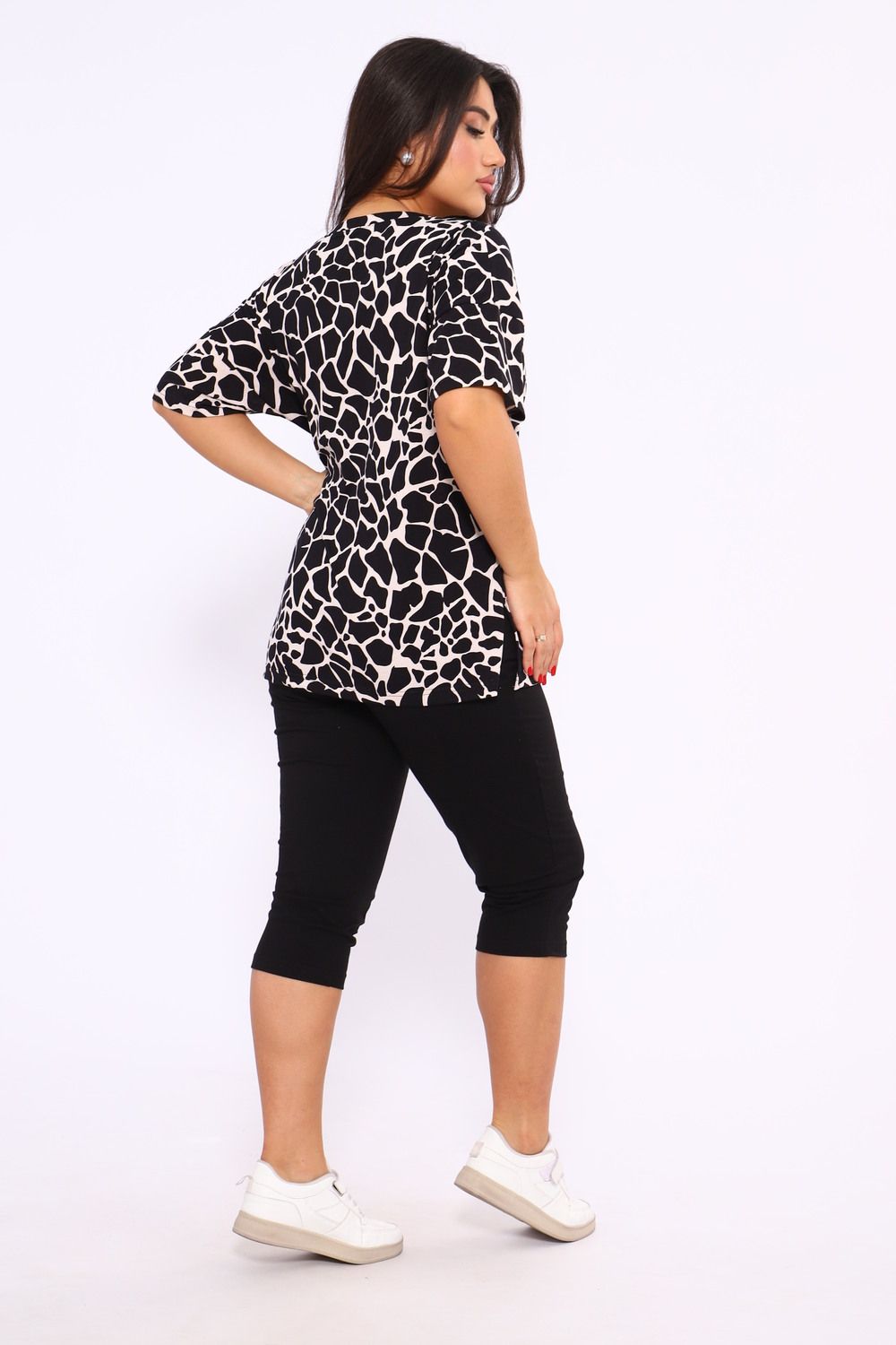 Костюм женский, туника с бриджами. Туника удлиненная. Ткань кулирка набивка,100% хлопок. Костюм отлично подойдет дома, дачи и прогулок.