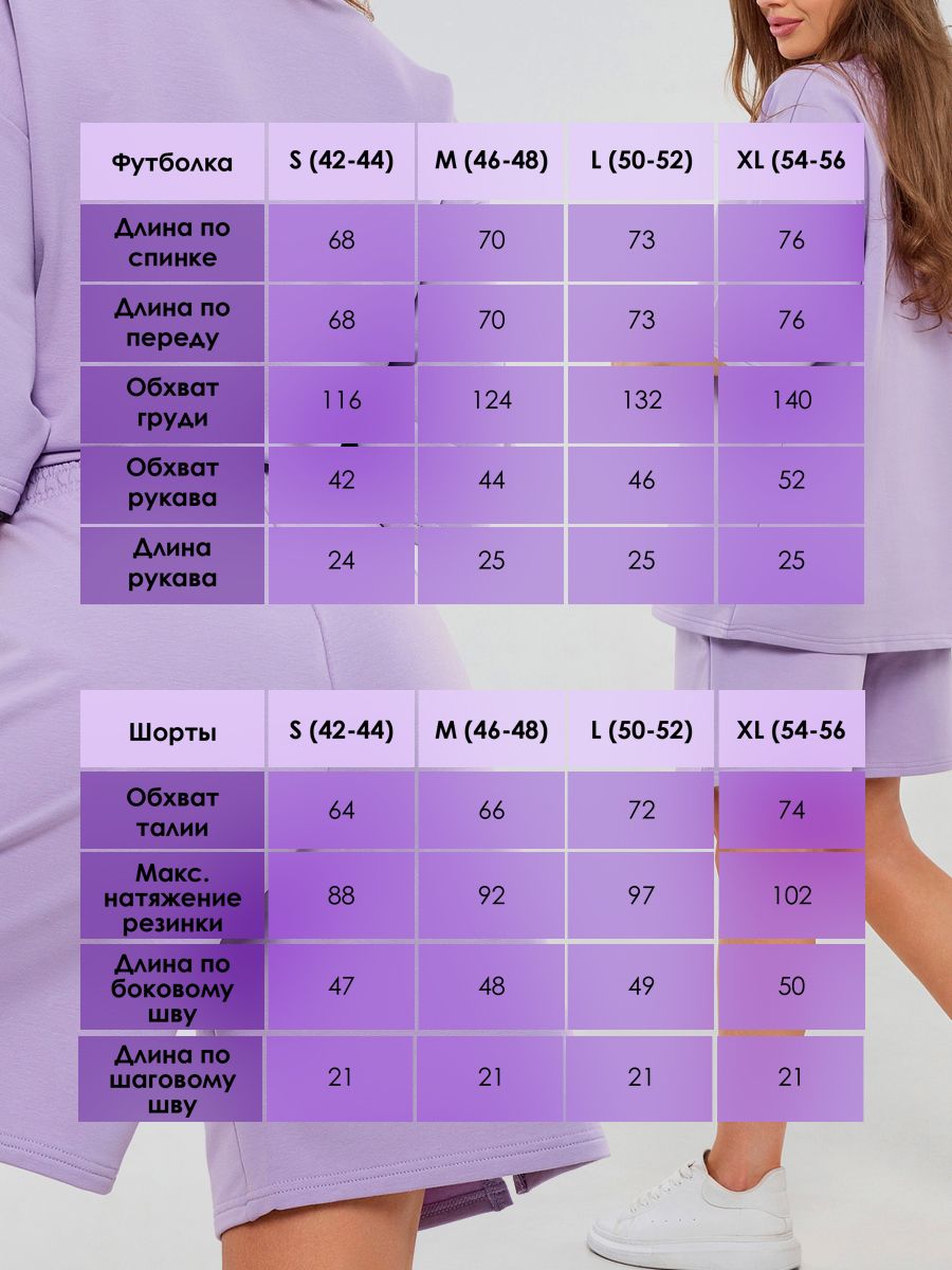 Женский спортивный летний костюм выполнен из плотной ткани - хлопок: футер 2х нитка петельчатый, качество премиум Пенье . Комплект с шортами и футболкой- это настоящий ХИТ этого сезона. Свободная футболка оверсайз с коротким рукавом и шорты свободного кроя выше колена на широкой резинке высокой посадки, внизу с разрезами на внешней стороне материала и боковыми карманами- хорошая замена теплому или утепленному брючному костюму, платью на лето. Вы сможете носить современный, модный и комфортный костюм, как спортивную одежду на тренировки, спорт, фитнес и йогу и как спортивная школьная форма для девочек и мальчиков подростков. а также это удобная одежда для дома и загородного отдыха. Вам не будет слишком жарко, из-за сочетания дышащего материала и свободного кроя в спортивном костюме. Футболка идеально сочетается с джинсами, юбкой и брюками, а шорты с лонгсливом, свитшотом, топом. Выберите для себя удобный размер – изделие отлично сядет на любой тип фигуры и ростовку. А также трикотажный материал, комфортный крой и выверенные лекала сделают данную модель незаменимым для полных девушек (плюссайз), беременных мам, женщин, девочек и подростков. Наш костюм универсален и для модниц с пышными формами, а также высоких и невысоких. Вы сможете использовать его как повседневную вещь на работу и учебу, на прогулку и отдых. Стильный летний комплект подойдет для повседневной носки, домашней одежды, прогулок с собакой, занятий спортом в тренажерном зале как в летний так и в зимний период, также - для игры в теннис, волейбол, баскетбол. Чтобы сохранить первозданный вид костюма-двойки, рекомендуем соблюдать правила ухода: первая стирка отдельно от других вещей в прохладной воде , дальнейшие стирки при 30 градусах, в бережном режиме (до 400 оборотов). Предпочтительно для стирки ГЕЛИ, а не порошки. Гладить футер можно в деликатном режиме
