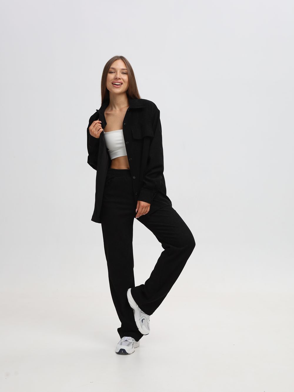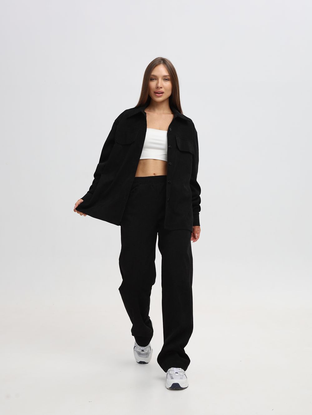 Спортивный женский костюм выполнен из мягкого вельветового материала, который придает ему модный и элегантный вид. Костюм для женщин состоит из рубашки оверсайз и брюк прямого кроя, создающих гармоничный и современный образ. Однотонный оттенок делает его универсальным для разных случаев — от повседневных прогулок до офисного или делового стиля. Рубашка свободного фасона с длинными рукавами украшена классическим воротником и застегивается на пуговицы. Вельвет обладает приятной текстурой, которая сохраняет комфорт даже при длительном ношении. Брюки имеют удобные карманы, прямой силуэт, что делает их подходящими для девушек и женщин разных возрастов. Эластичный пояс обеспечивает удобную посадку, а продуманная длина визуально вытягивает силуэт. Удобная и трендовая одежда в современном стиле, которая дополнит базовые и спортивные образы или молодежный лук в стиле casual (кэжуал). Нарядный костюм отлично подойдет как для осенних прохладных дней, так и для создания стильных летних образов. Женский костюм-двойка отличается универсальностью благодаря сочетанию комфорта и модного дизайна. Он может использоваться как спортивный наряд для активного отдыха или домашний вариант для уюта в холодное время года. Актуальный oversize крой подчеркивает современные тенденции в мире моды.