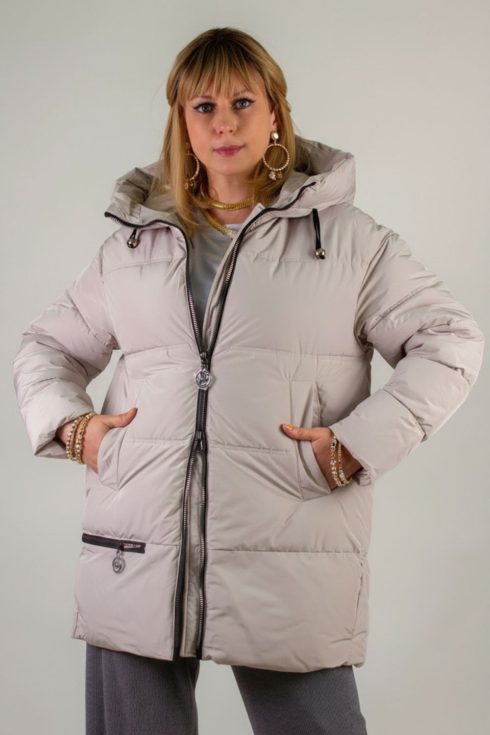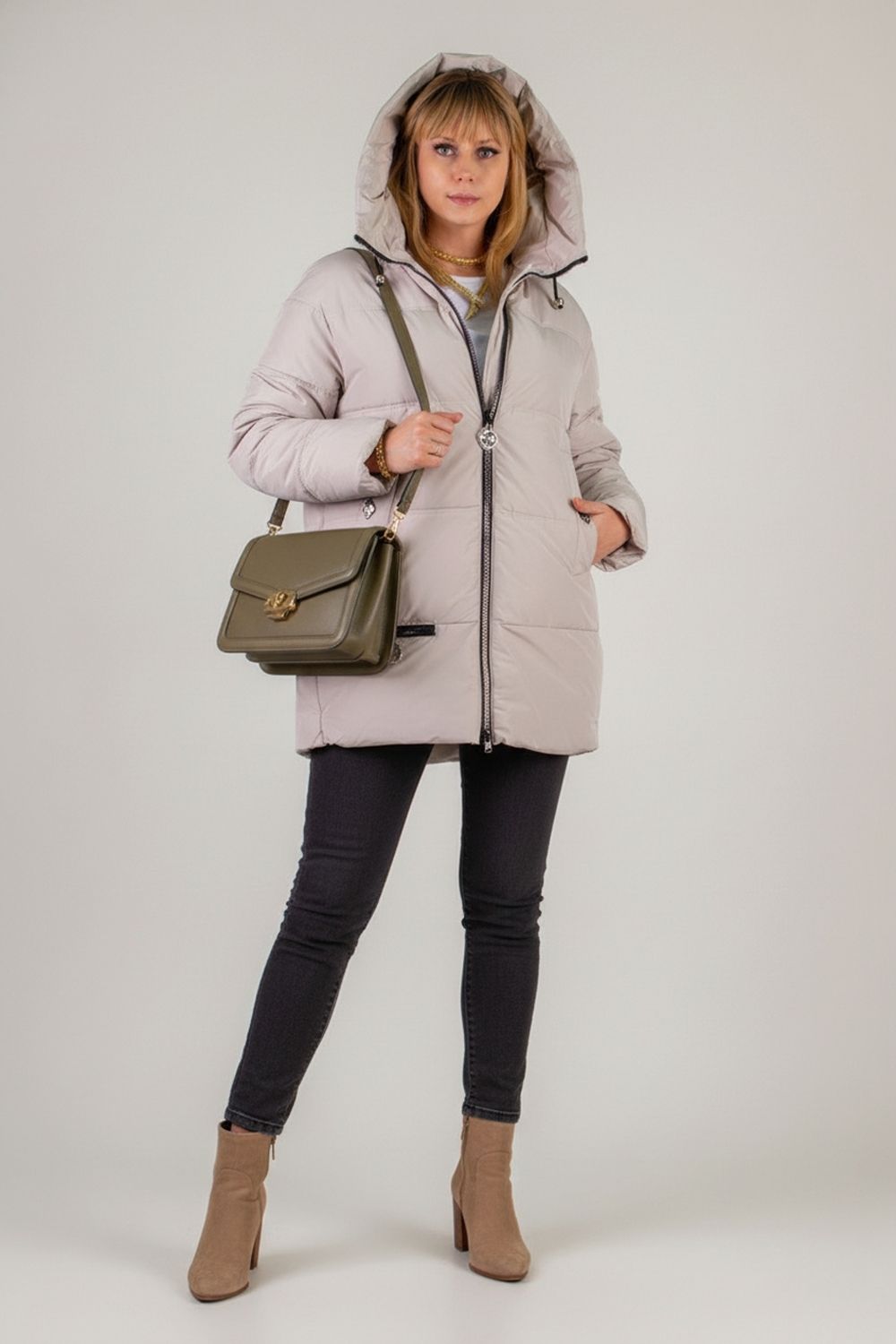 Универсальная зимняя куртка «Евро-зима» арт. 2881 сочетает в себе продуманную функциональность, современный дизайн и безупречное качество. Это идеальная модель для тех, кто ищет надёжную, тёплую и вместе с тем лёгкую одежду на холодный период — от демисезона до сильных морозов. Основные преимущества: 1. Продуманная теплоизоляция – Наполнитель «файбер» равномерно распределён простёганной двойной строчкой, что исключает холодные зоны. – Утеплённый воротник-стойка и глубокий капюшон с фиксаторами защищают шею и голову от ветра и снега. 2. Удобство и функциональность – Двусторонняя молния с внутренней ветрозащитной планкой позволяет регулировать вентиляцию и сохранять тепло. – Два вместительных боковых кармана и дополнительный внутренний карман на молнии для мелочей и гаджетов. – Эластичные трикотажные манжеты на рукавах препятствуют попаданию холодного воздуха. 3. Универсальный крой и комфорт – Модный прямой силуэт и универсальная длина до середины бедра подходят к любому образу — городской стиль, активный отдых, деловой look. – Матовая плотная ткань обладает водо- и ветроотталкивающими свойствами, оставаясь мягкой и приятной на ощупь. 4. Качественная фурнитура и фабричный пошив – Надёжные молнии и фурнитурные детали выдерживают ежедневную эксплуатацию без потери функциональности. Цветовая гамма: пыльный горчичный, сдержанный серый, классический чёрный и нежный светлобежевый. Куртка «Евро-зима» арт. 2881 станет универсальным спутником для зимних прогулок, поездок за город и повседневных дел. Лёгкая и в то же время тёплая, она подчеркнёт ваш стиль и обеспечит комфорт даже в самые холодные дни. Выбирайте лучшее: тепло, качество и актуальный дизайн в одном изделии!