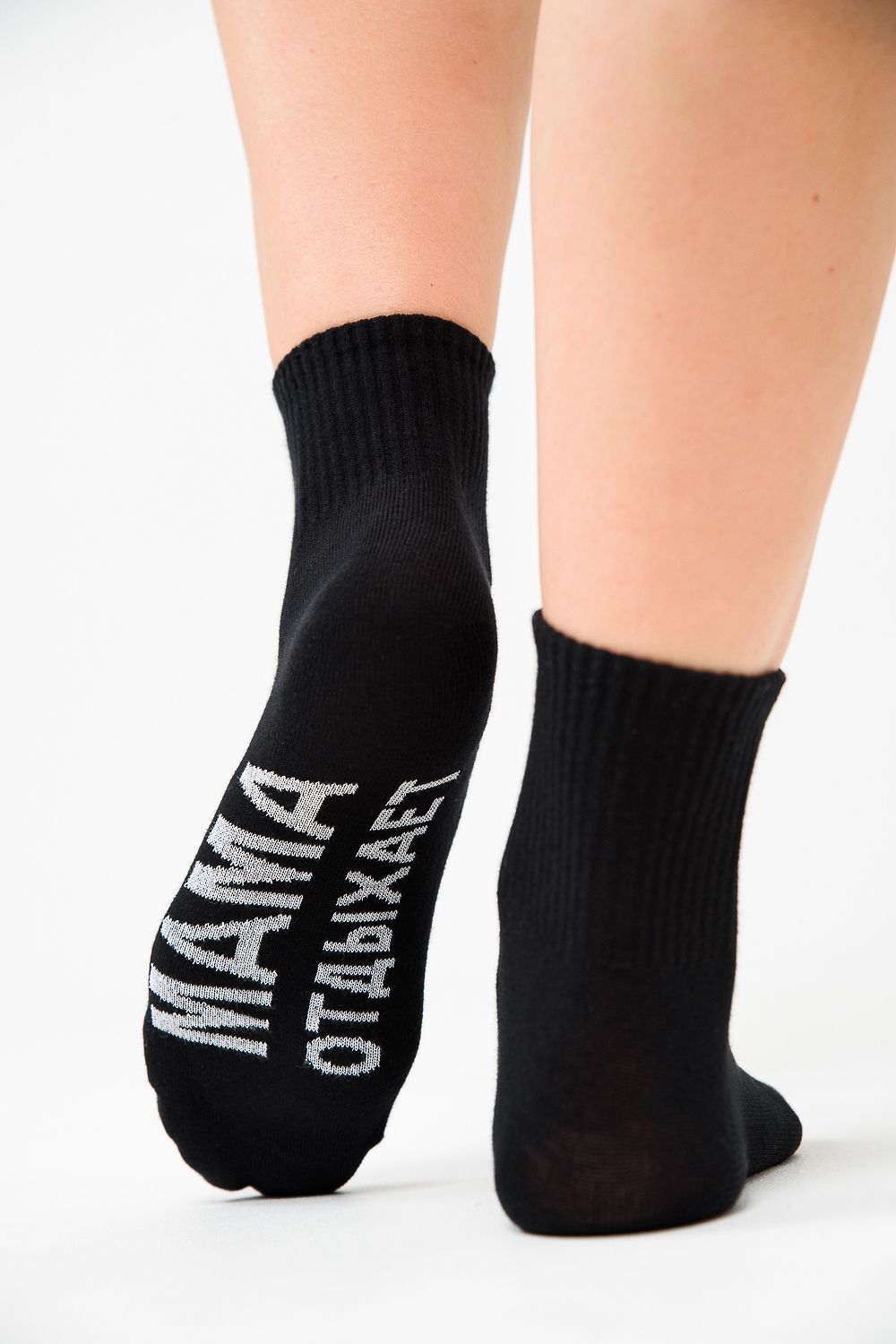 Комплект женских носков 2 пары. Широкая резинка. На стопе надпись "Мама отдыхает".