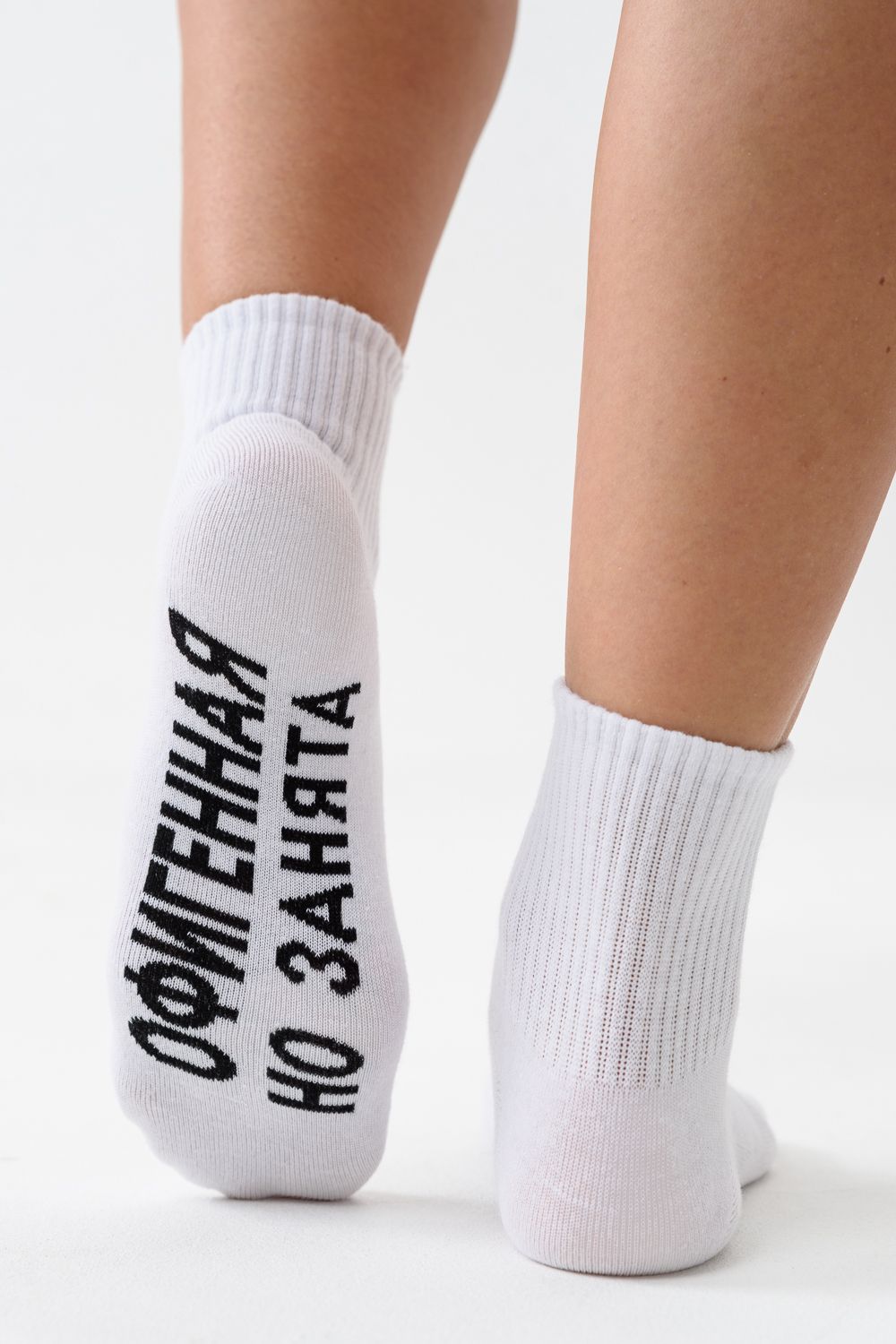 Комплект женских носков - 1 пара. На стопе надпись "Офигенная, но занята"