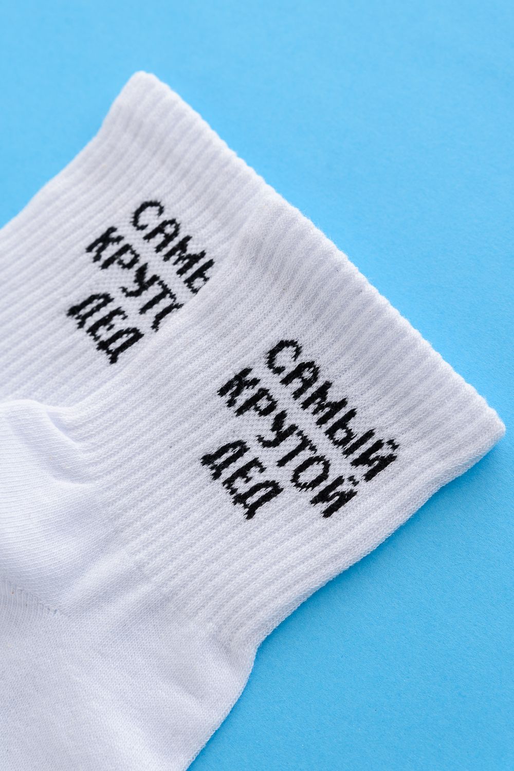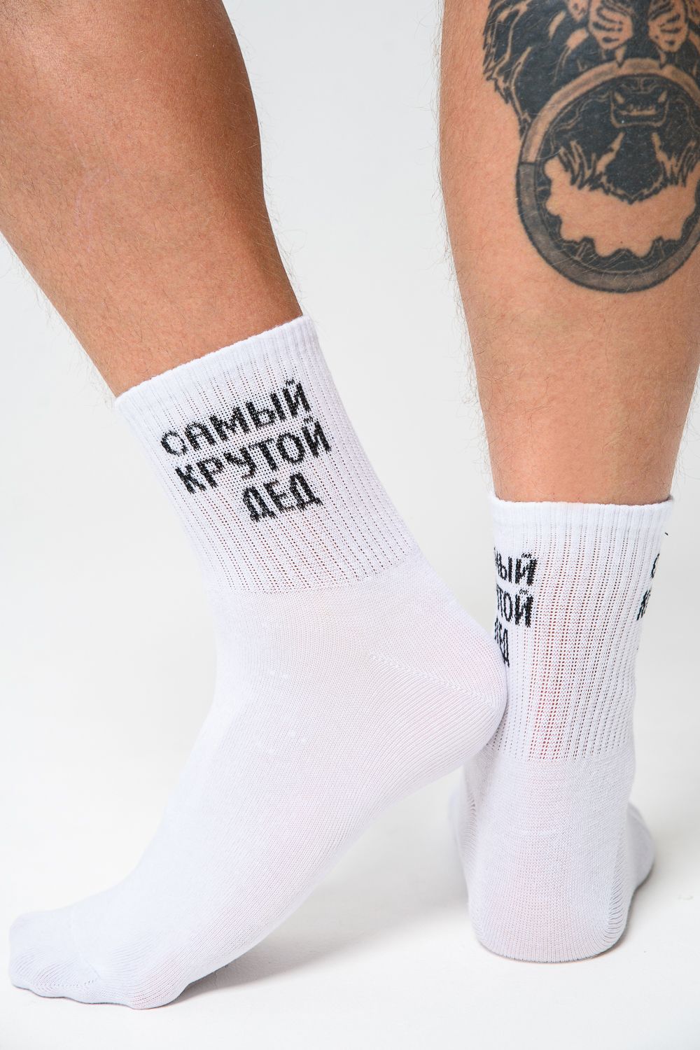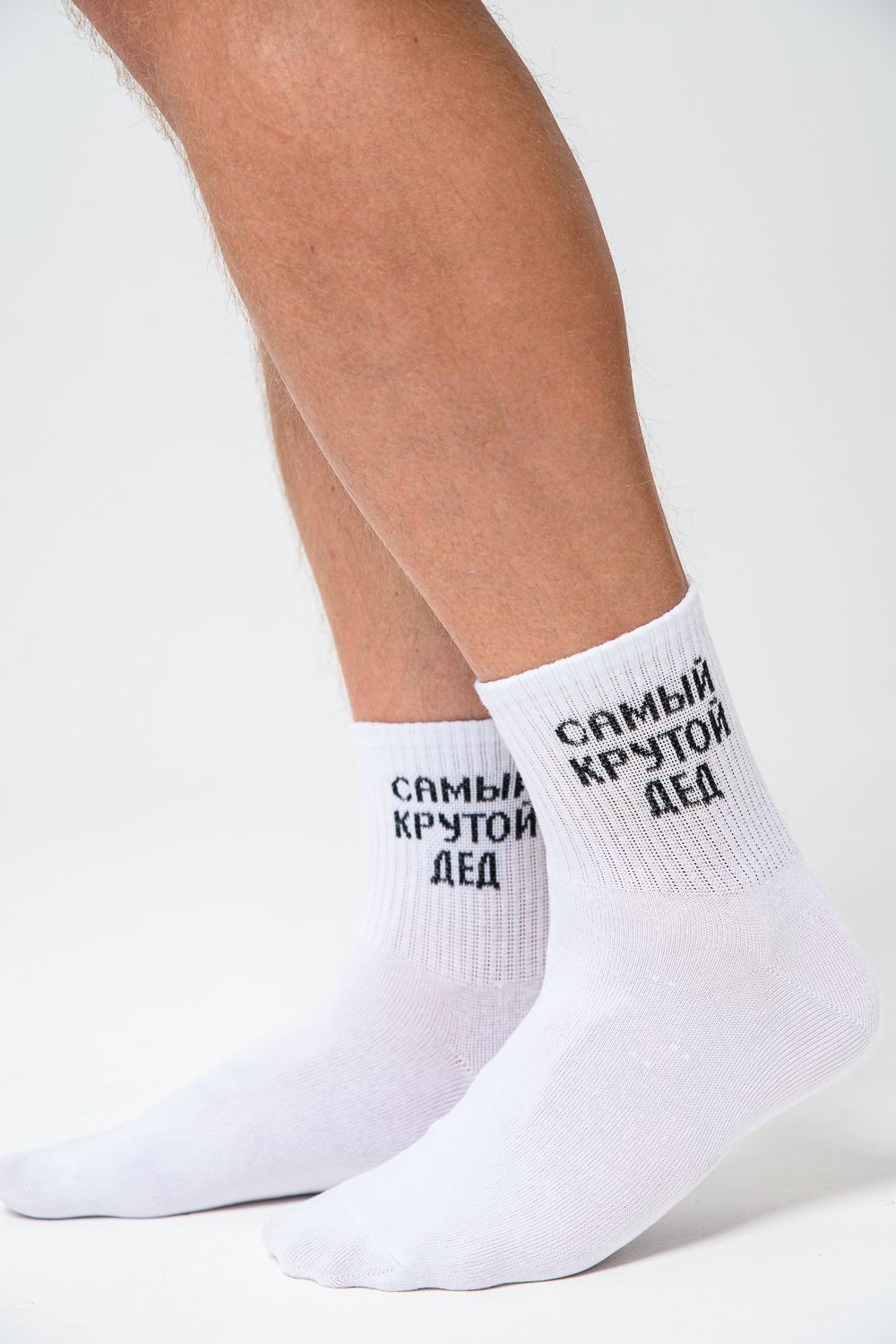 Комплект мужских носков одна пара. Широкая резинка по всей верхней части носка. На резинки надпись "самый крутой дед"