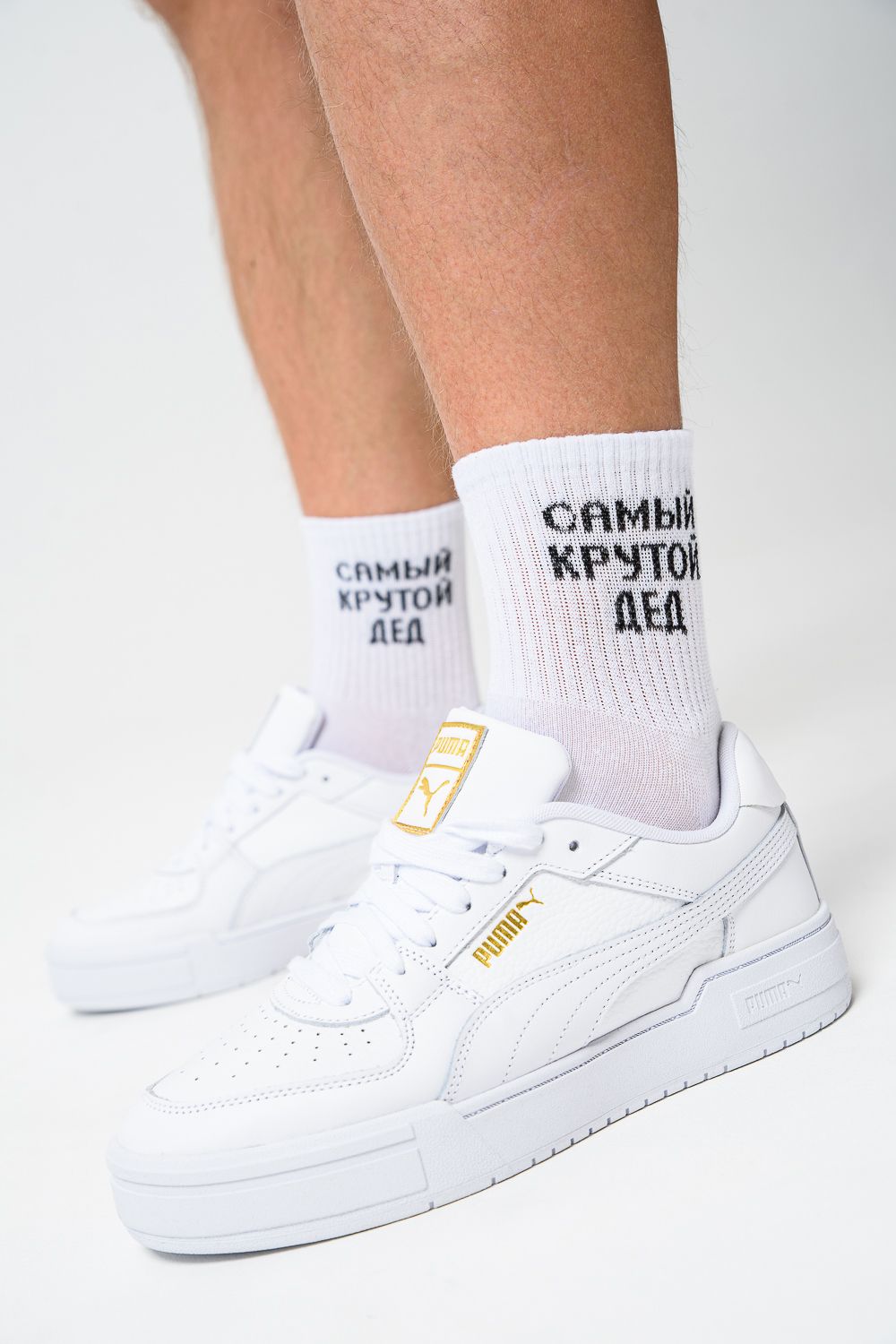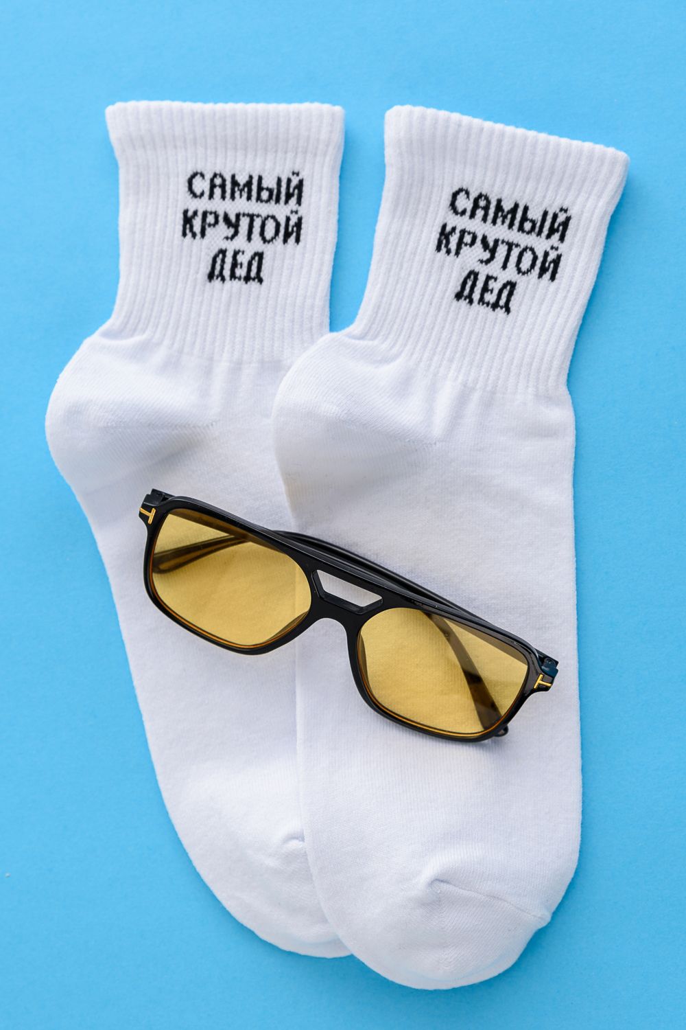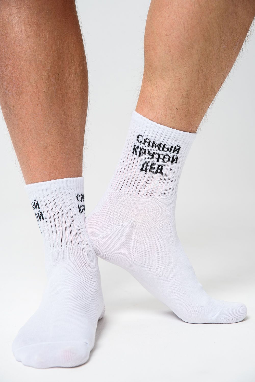 Комплект мужских носков одна пара. Широкая резинка по всей верхней части носка. На резинки надпись "самый крутой дед"