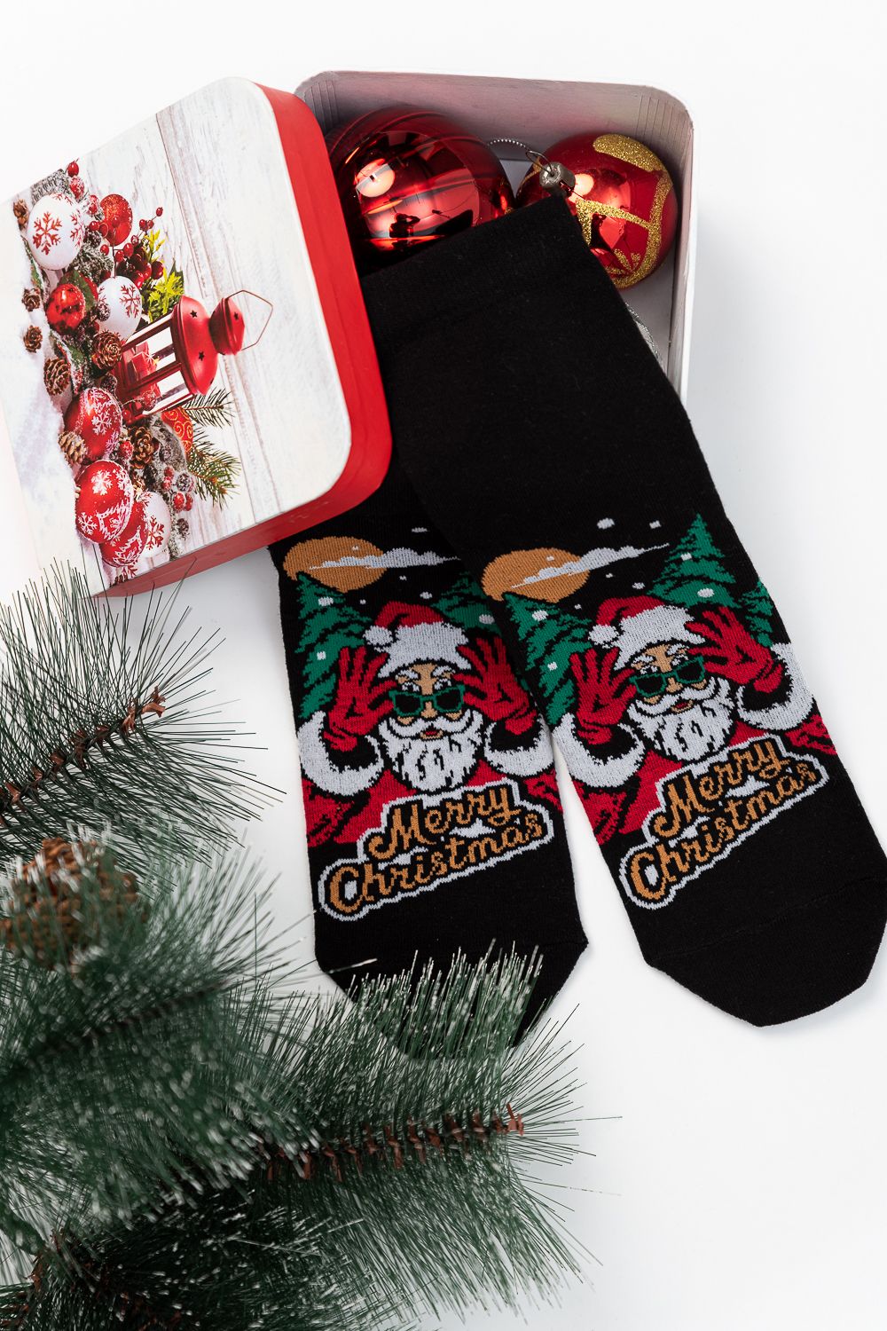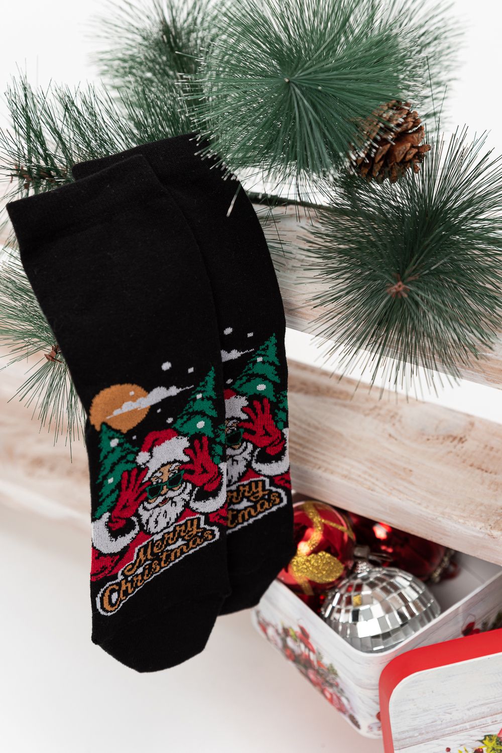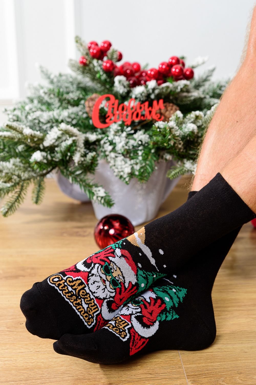 Новогодние мужские носки и изображением Санты. В комплекте 1 пара.