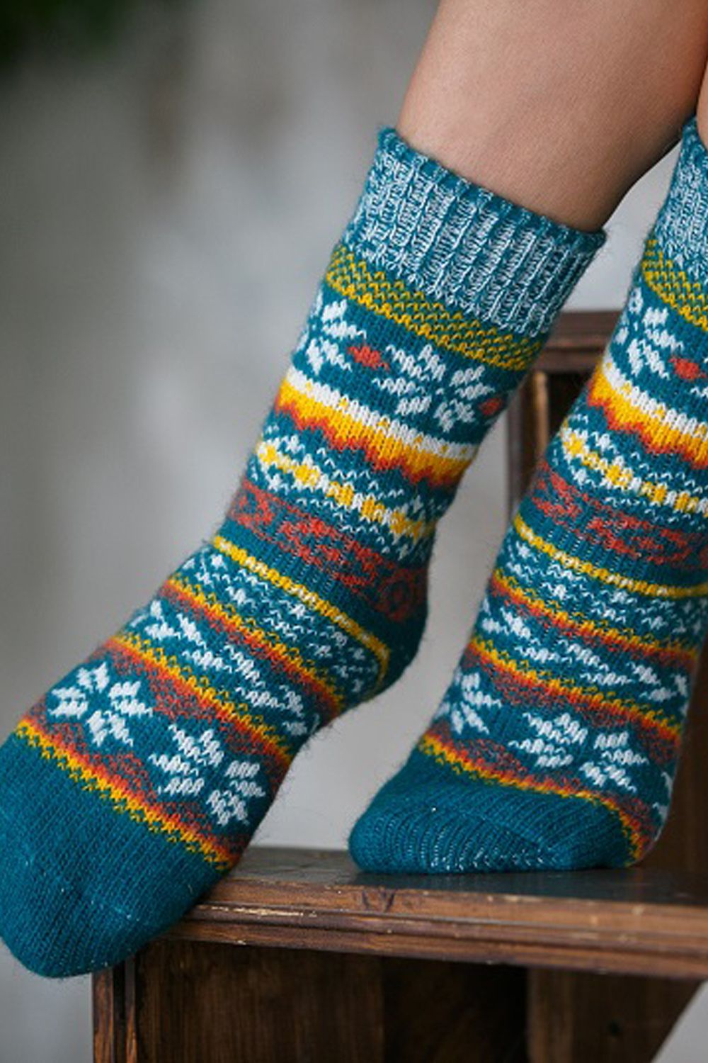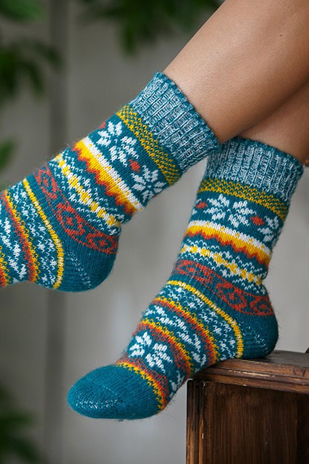 Здоровье человека идёт от ног, поэтому важно держать ноги в тепле не только зимой, но и межсезонье. Теплые вязаные носки с натуральной шерстью в составе согреют и подарят ощущение комфорта. Зимние носки мягкие и неколючие. Они плотно облегают ногу, но резинка не давит, удобны на каждый день, сохраняют яркость цвета и первоначальную форму после многочисленных стирок. Носки долговечны, они будут согревать вас несколько зимних сезонов. Шерстяные носки станут спасением в самые сильные морозы. Ногам будет комфортно даже при температуре до -40°С. Шерсть имеет уникальную способность быстро согревать и длительное время поддерживать правильную терморегуляцию. Она хорошо пропускает воздух и позволяет коже дышать. Также быстро отводит влагу, оставаясь при этом сухой. Шерстяные носки отлично тянутся, благодаря чему не сковывают движений. Благодаря полиамидным нитям имеют повышенную прочность изделия от истираний и разрывов, что значительно увеличивает продолжительность их службы. Шерстяные носки достаточно плотные, при этом мягкие, не раздражают, не вызывают зуда и не колются. Имеют широкую резинку и связаны с учетом анатомической формы ступни и голеностопа. В составе натуральной шерсти находятся природные соединения и ланолин, обладающие антисептическим эффектом. Это позволяет им оставаться свежими даже после нескольких дней ношения. Носочки с очаровательным зимним рисунком идеально подойдут для уютной новогодней фотосессии, для себя или в подарок близким на Новый год и другие праздники. Теплые носки станут прекрасной покупкой на зимний сезон. Подходят для занятия спортом: под коньки, лыжные и треккинговые ботинки. Они согревающие, поэтому незаменимы для рыбалки, охоты или во время прогулок на свежем воздухе. Теплые вязаные носки будут отличным подарком маме, бабушке, жене, подруге или коллеге. Особенно оценят данный подарок пожилые бабушки в холодные осенние и зимние вечера на даче или дома, кто имеет малоподвижную работу или часто находится на сквозняках.